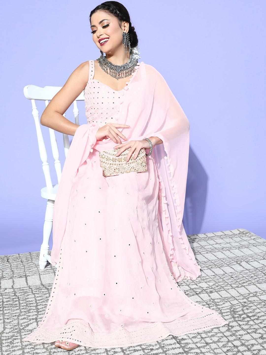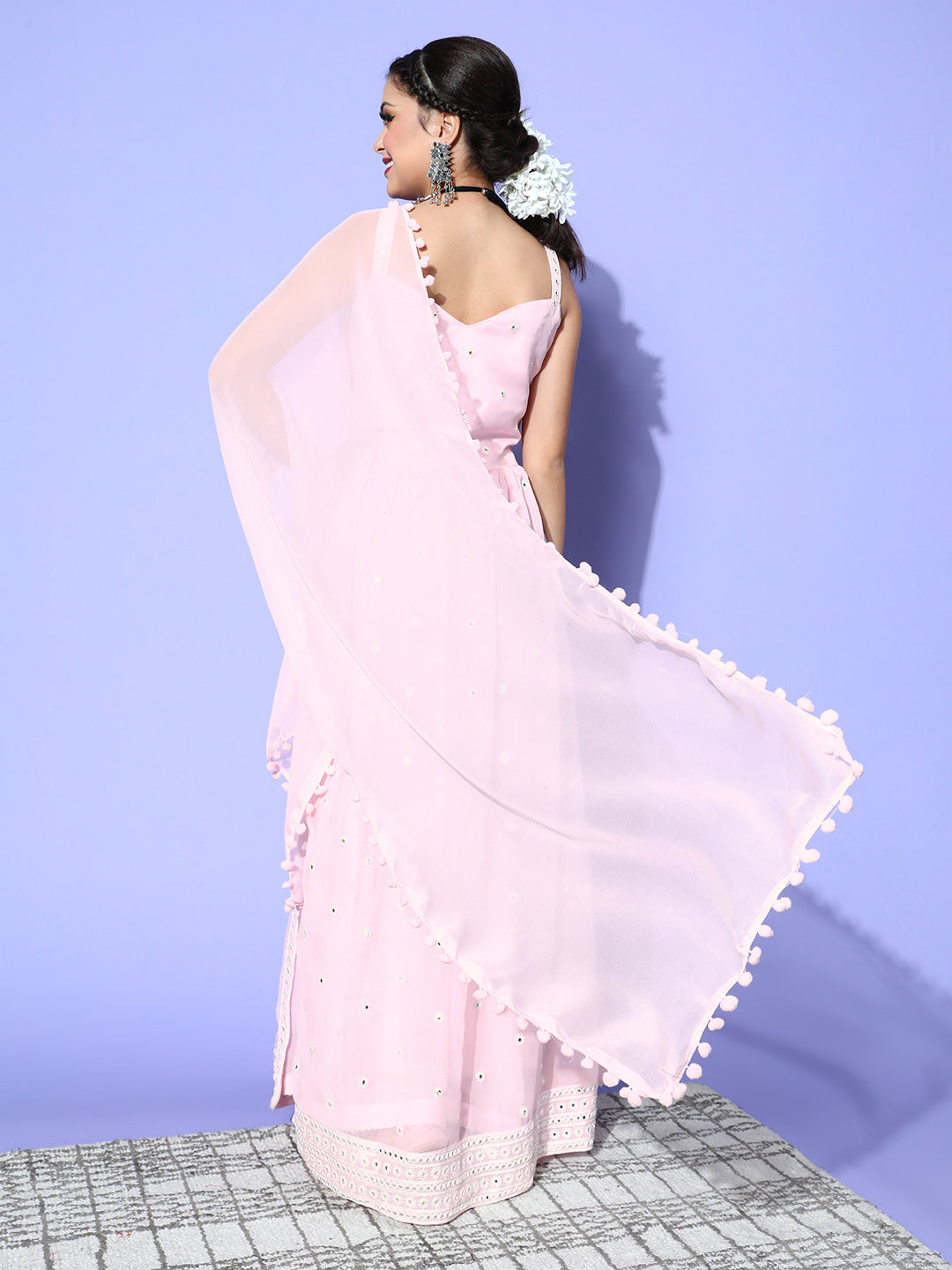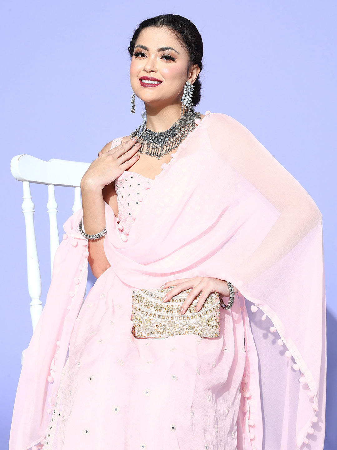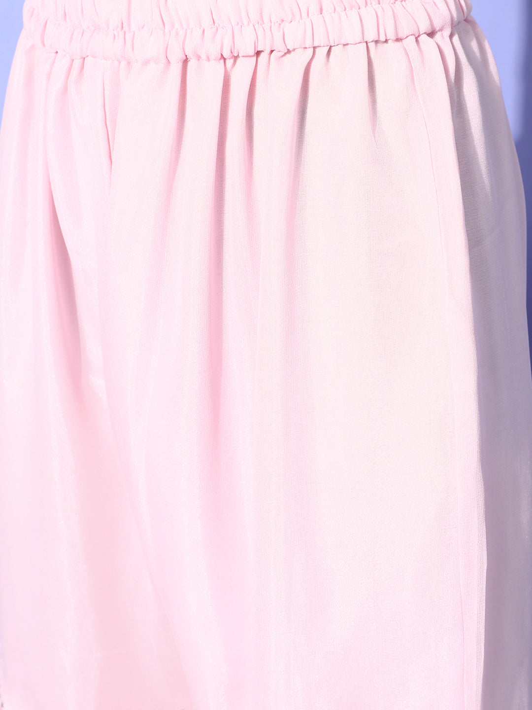 Pastel Baby Pink High Slit Nyraa Style Kurta Sharara Set