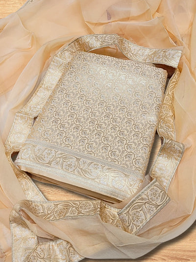 Banarasi Brocade Unstitched Suit Dupatta with Flowy Chiffon Dupatta & Paisley pattern