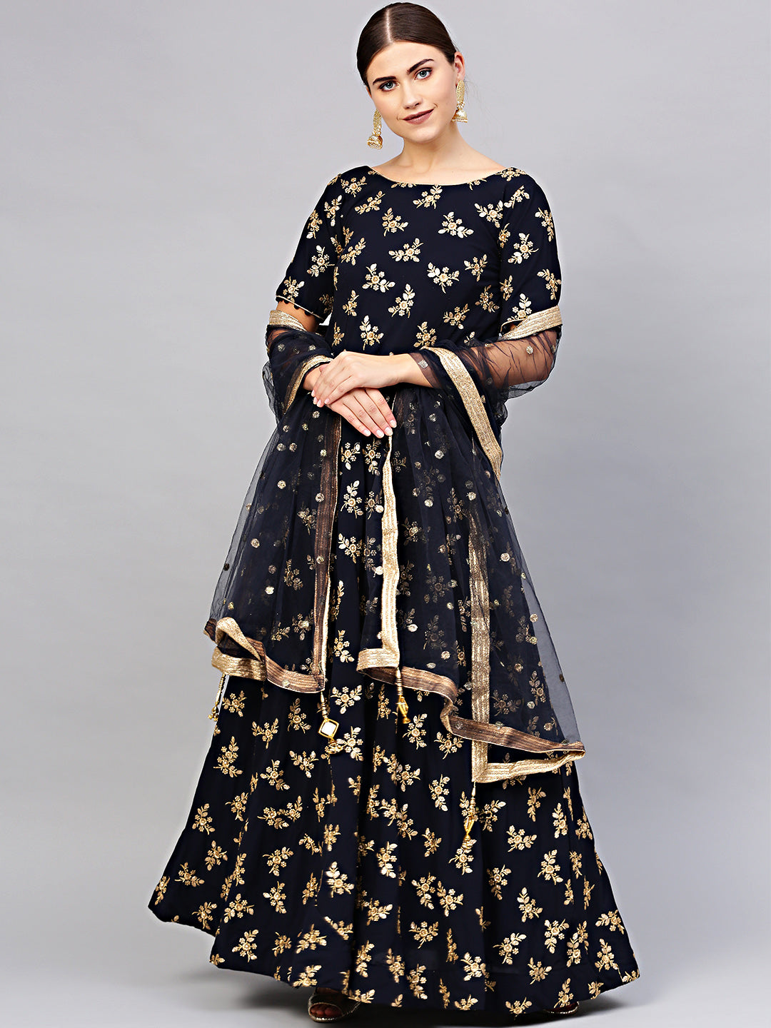 Georgette Anarkali Gown with Sequin Zari Embroidery