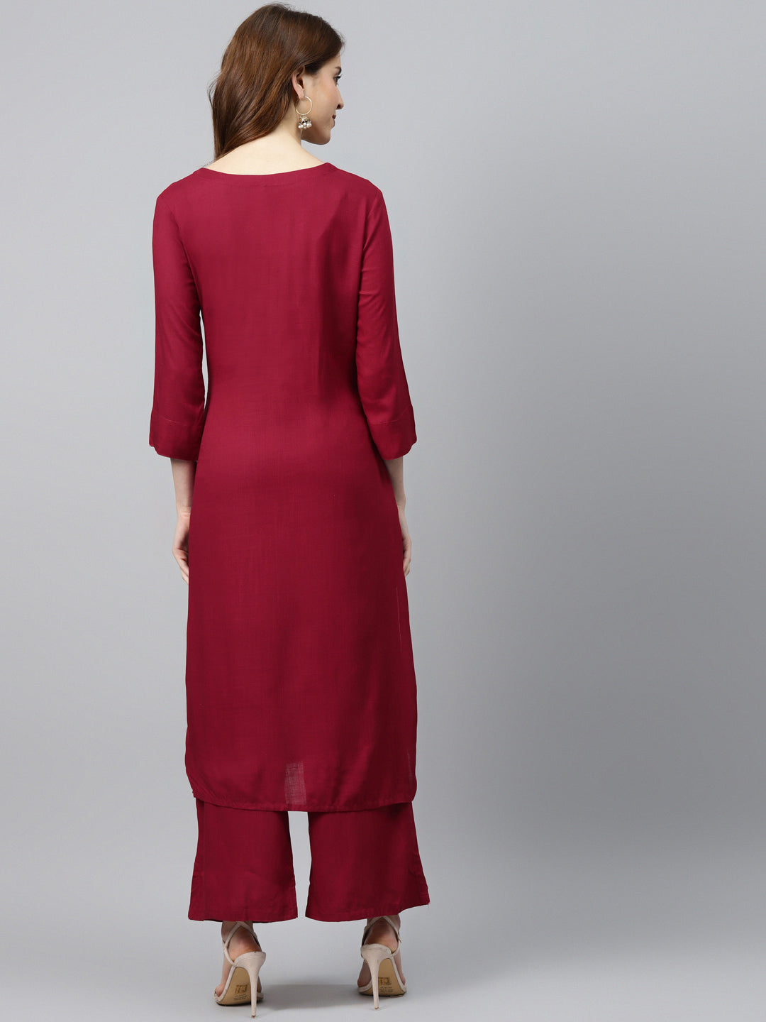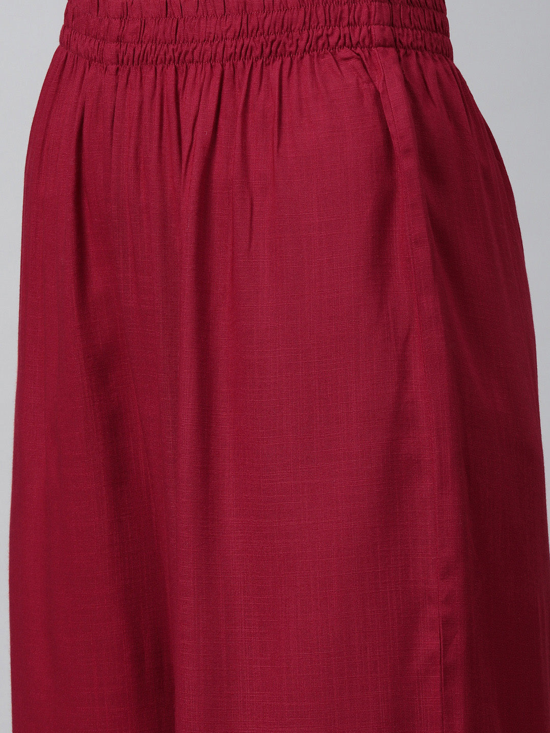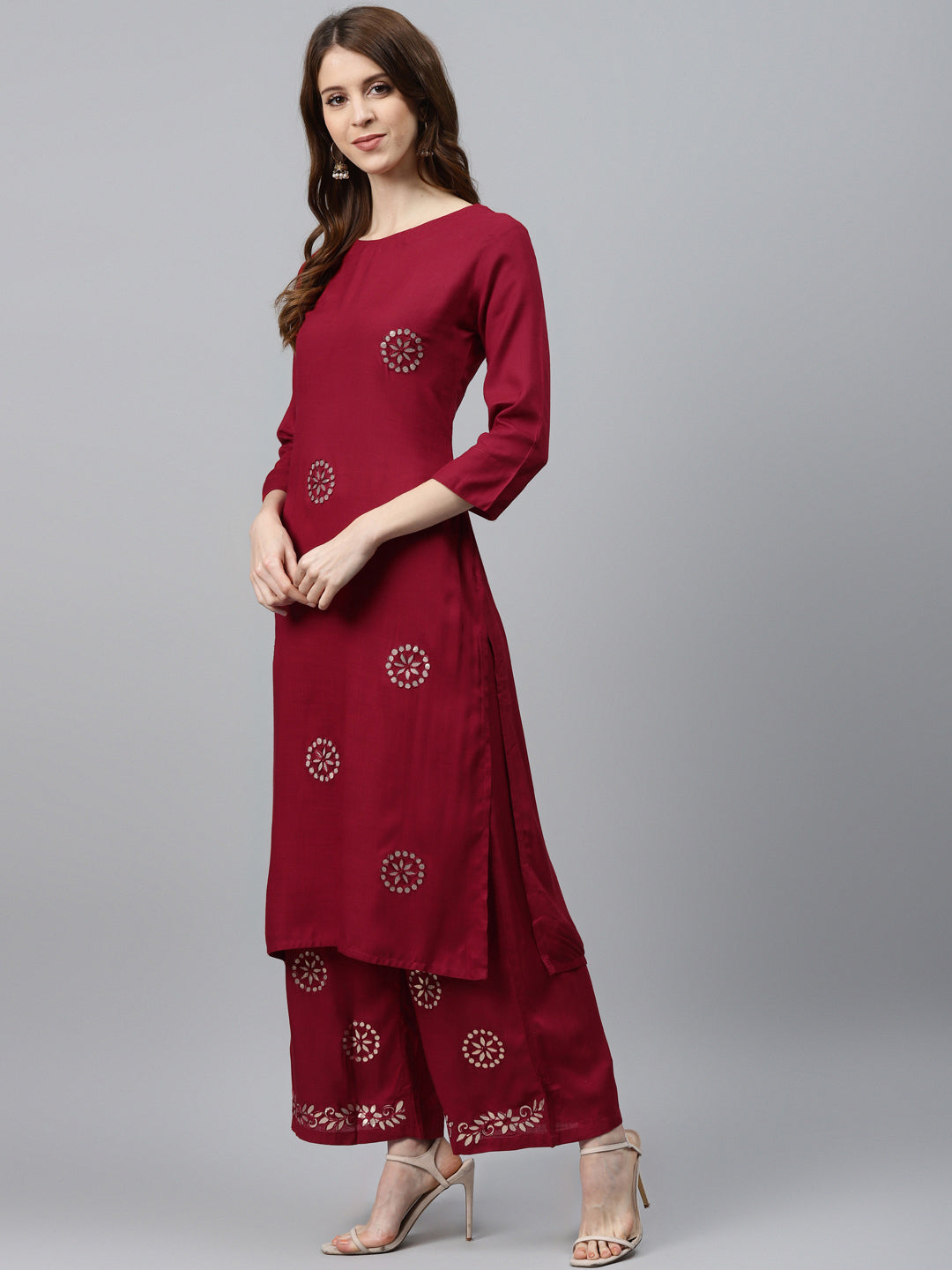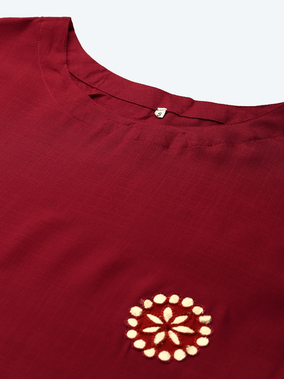 Made to Measure Maroon Jute Cotton Kurta Pallazo Set & Gotta Patti Embroidery