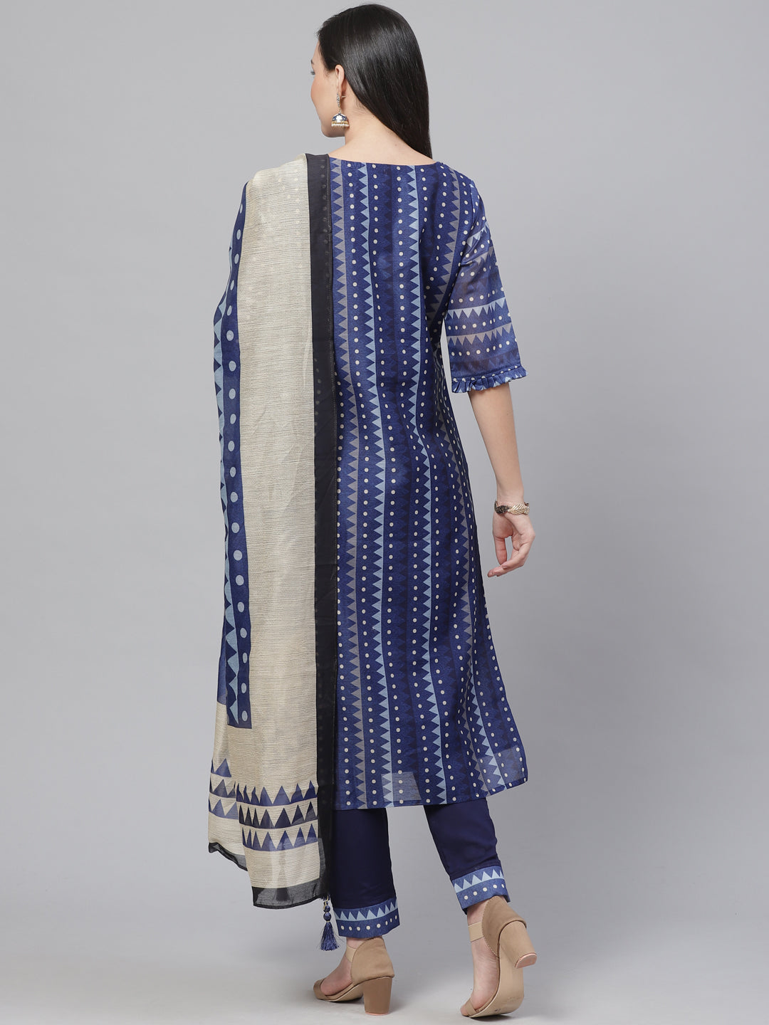 Chanderi Silk Stitched Suit with Digital Indigo & Indie Print with Maheshwari Dupatta