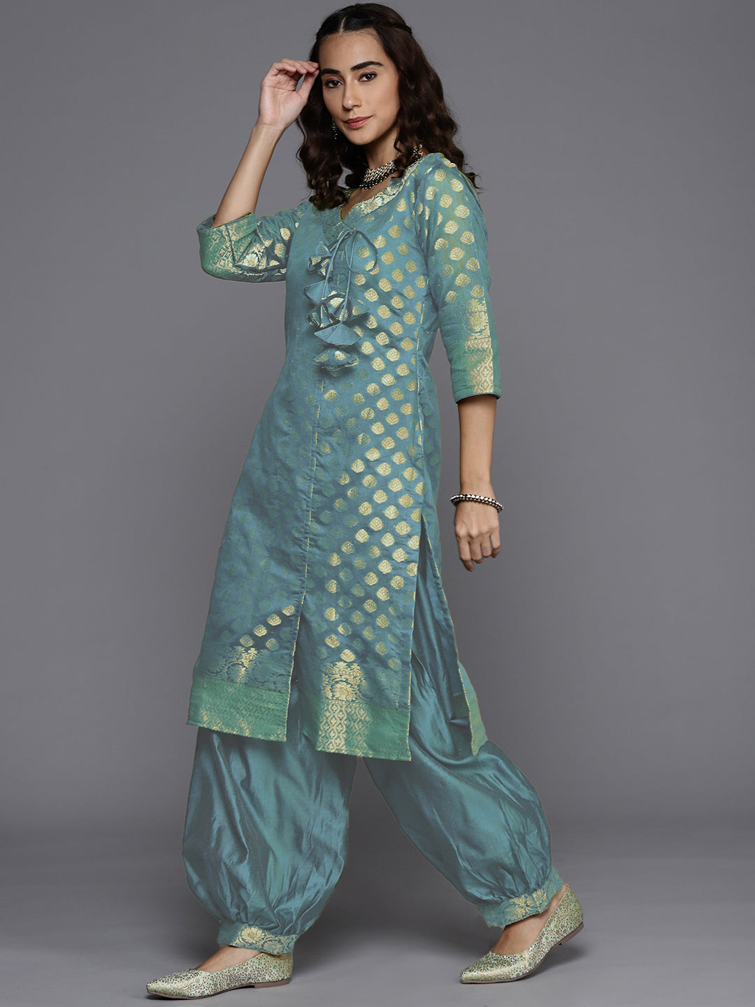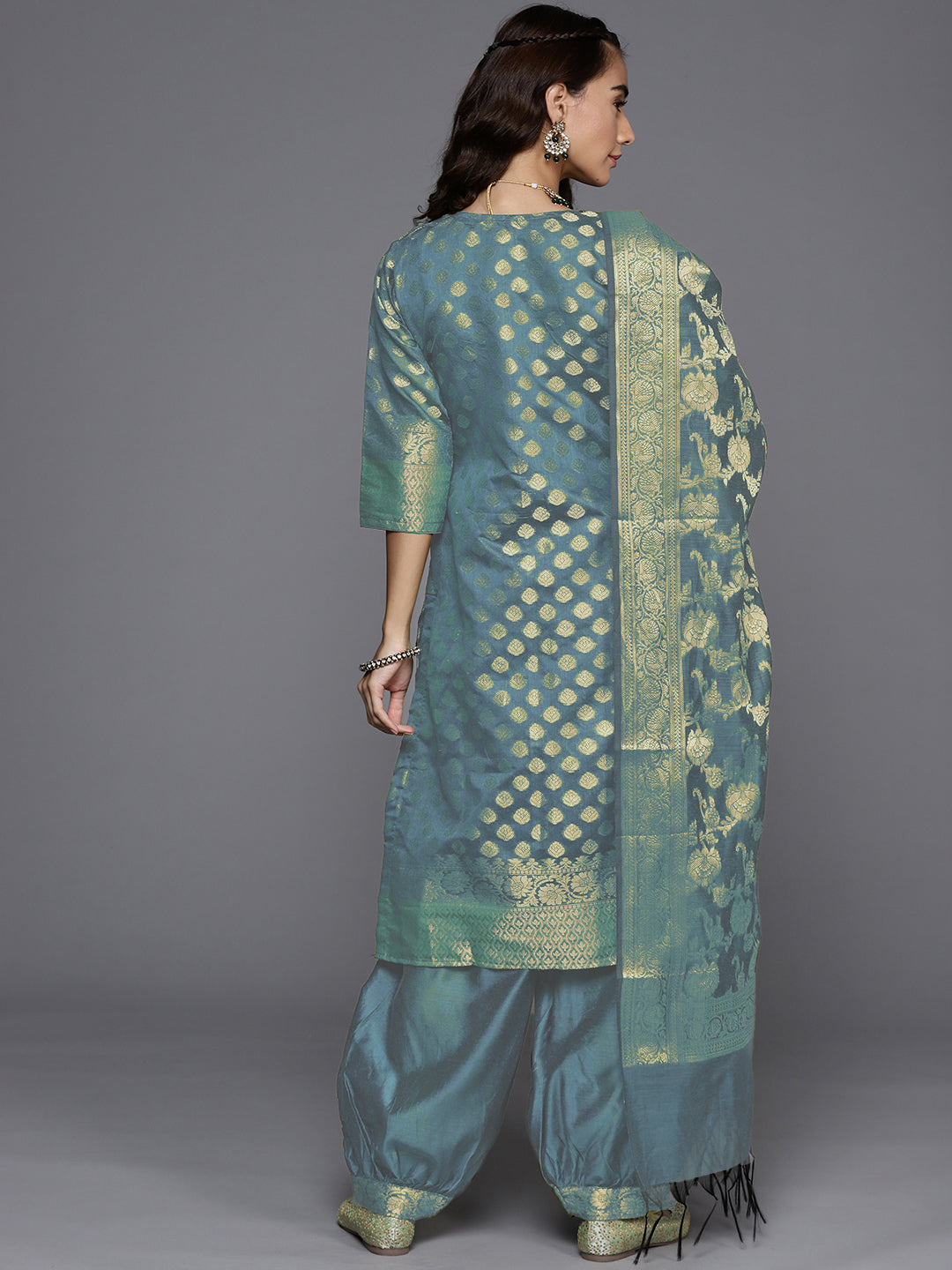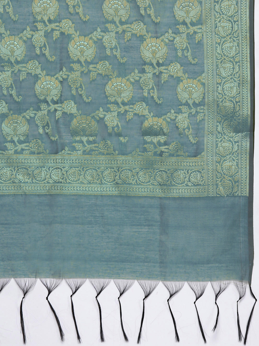 Turquoise Blue Reshami Woven Banarasi Suit dupatta with Jhalar dupatta