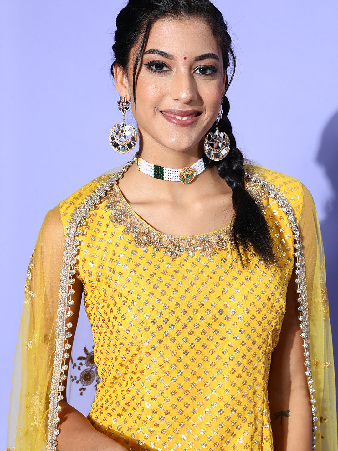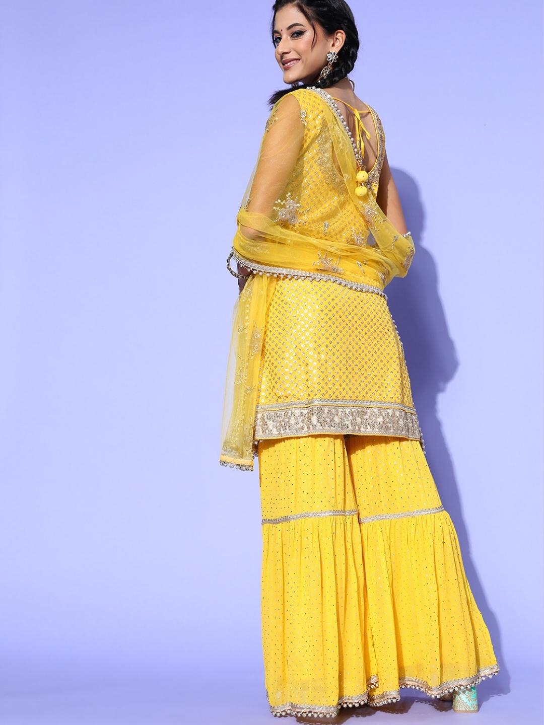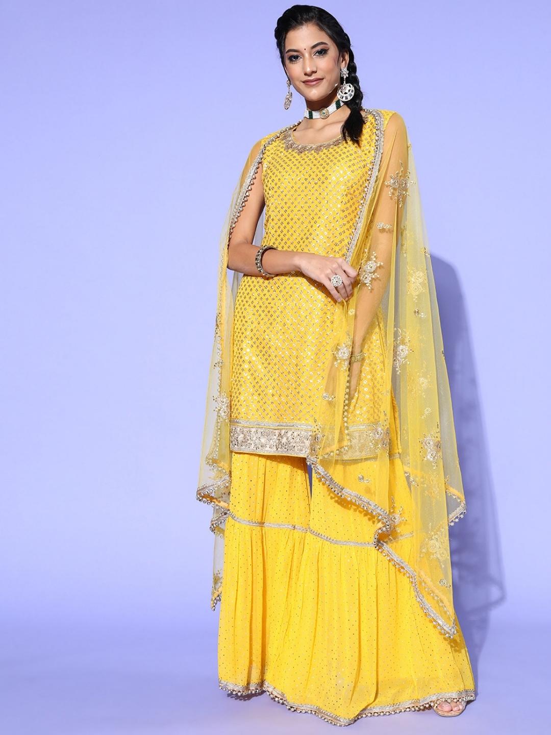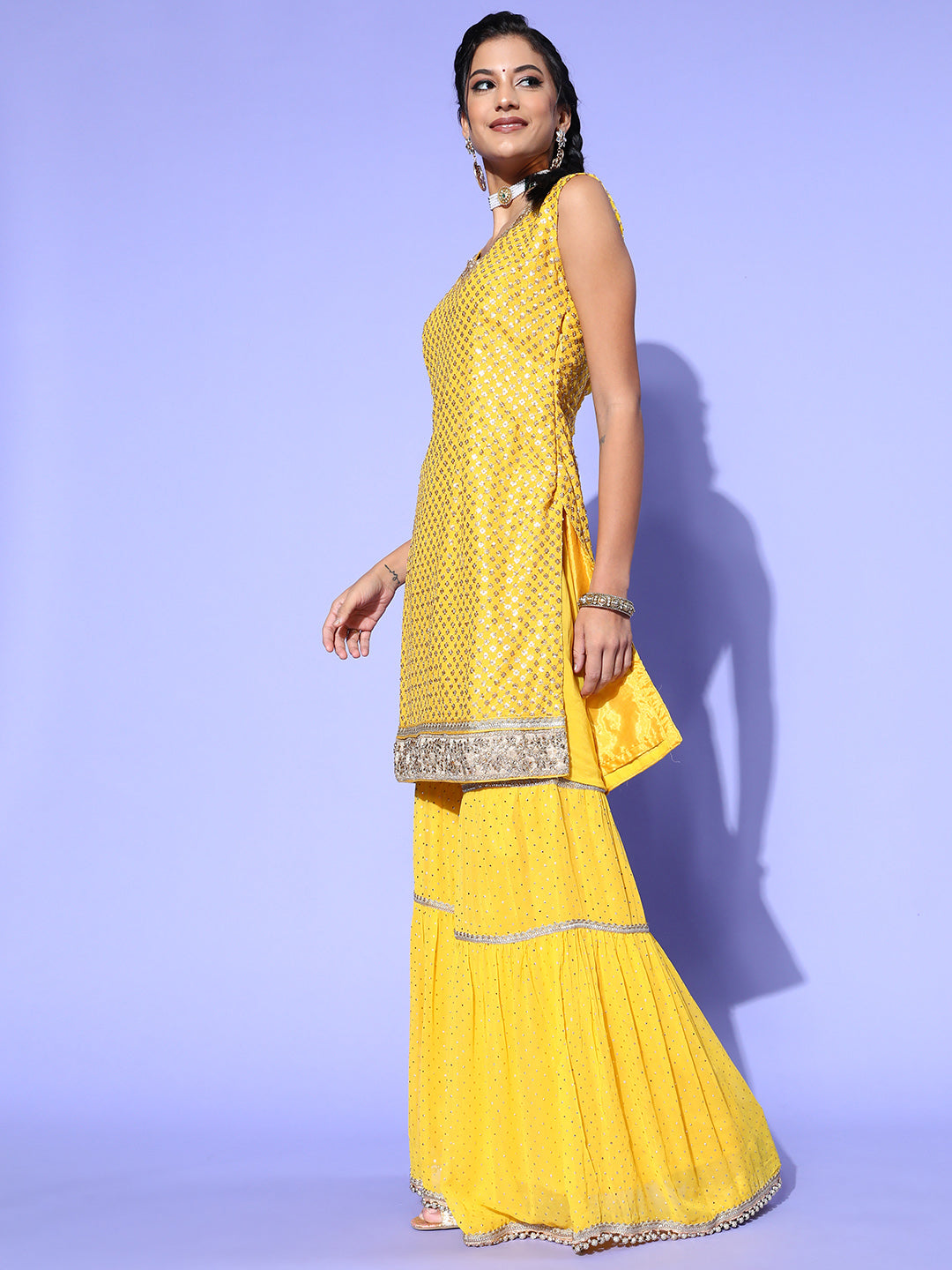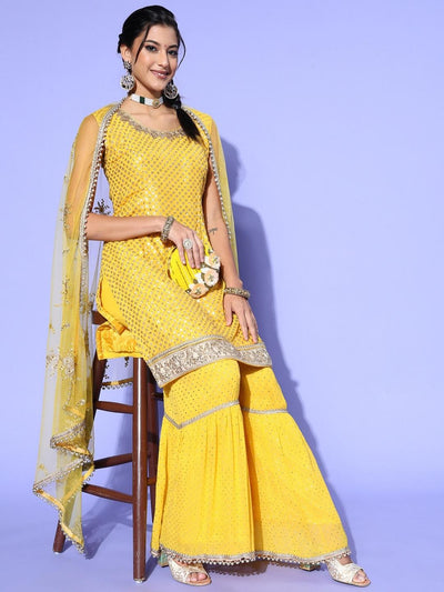 Yellow Haldi Embellished Kurta Sharara Set with Beads Tassels
