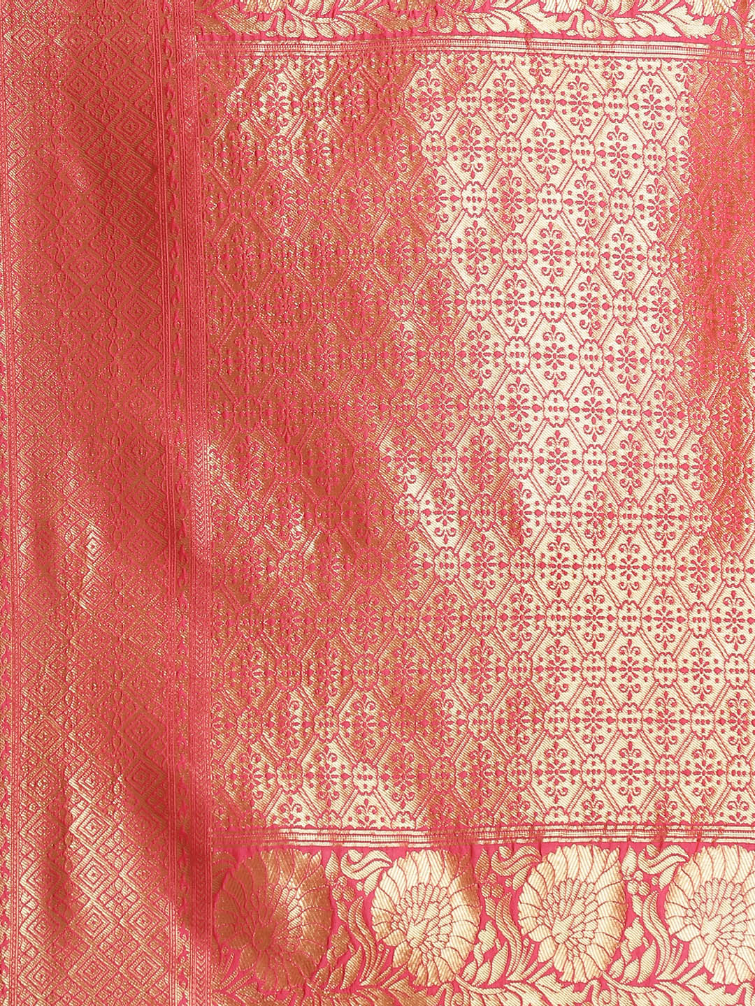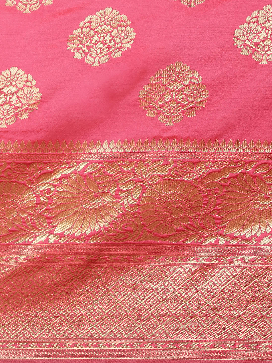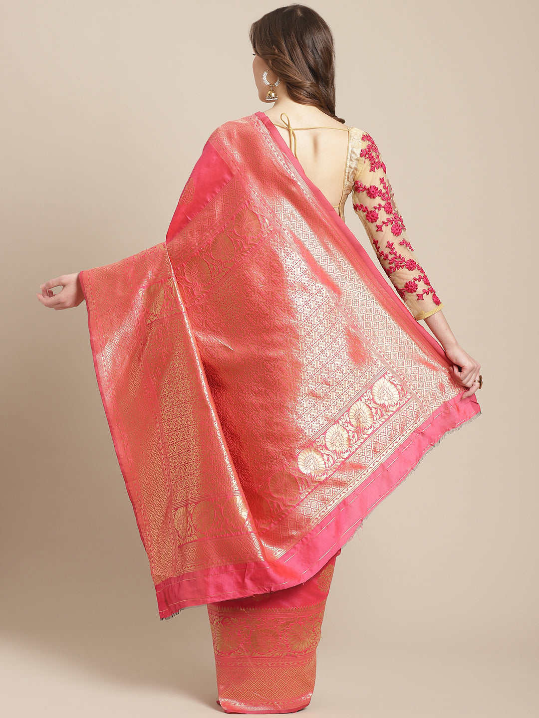 Rose Pink Banarasi Silk Saree with Oxidised Zari Weaving and Floral Ethnic Pattern