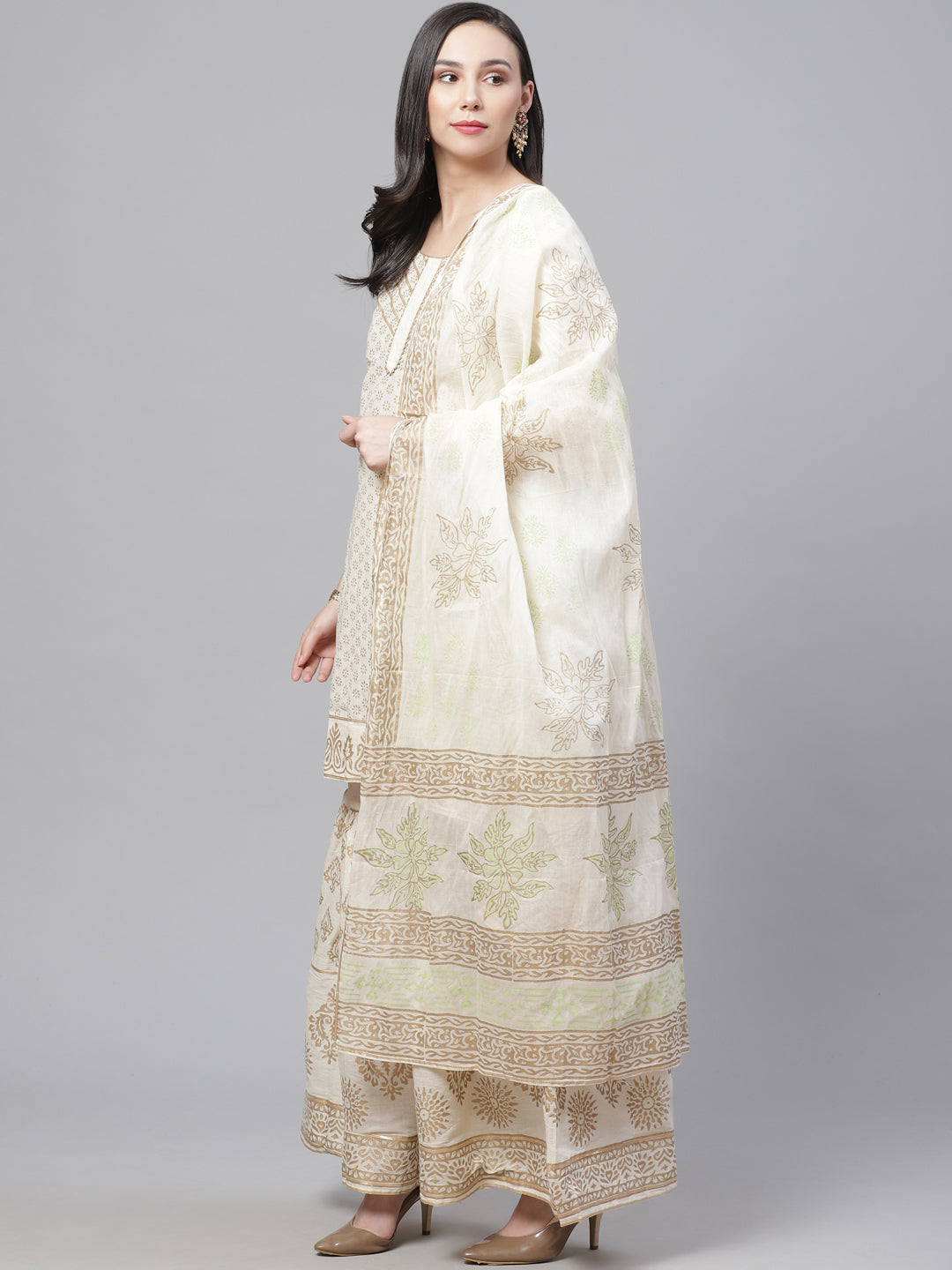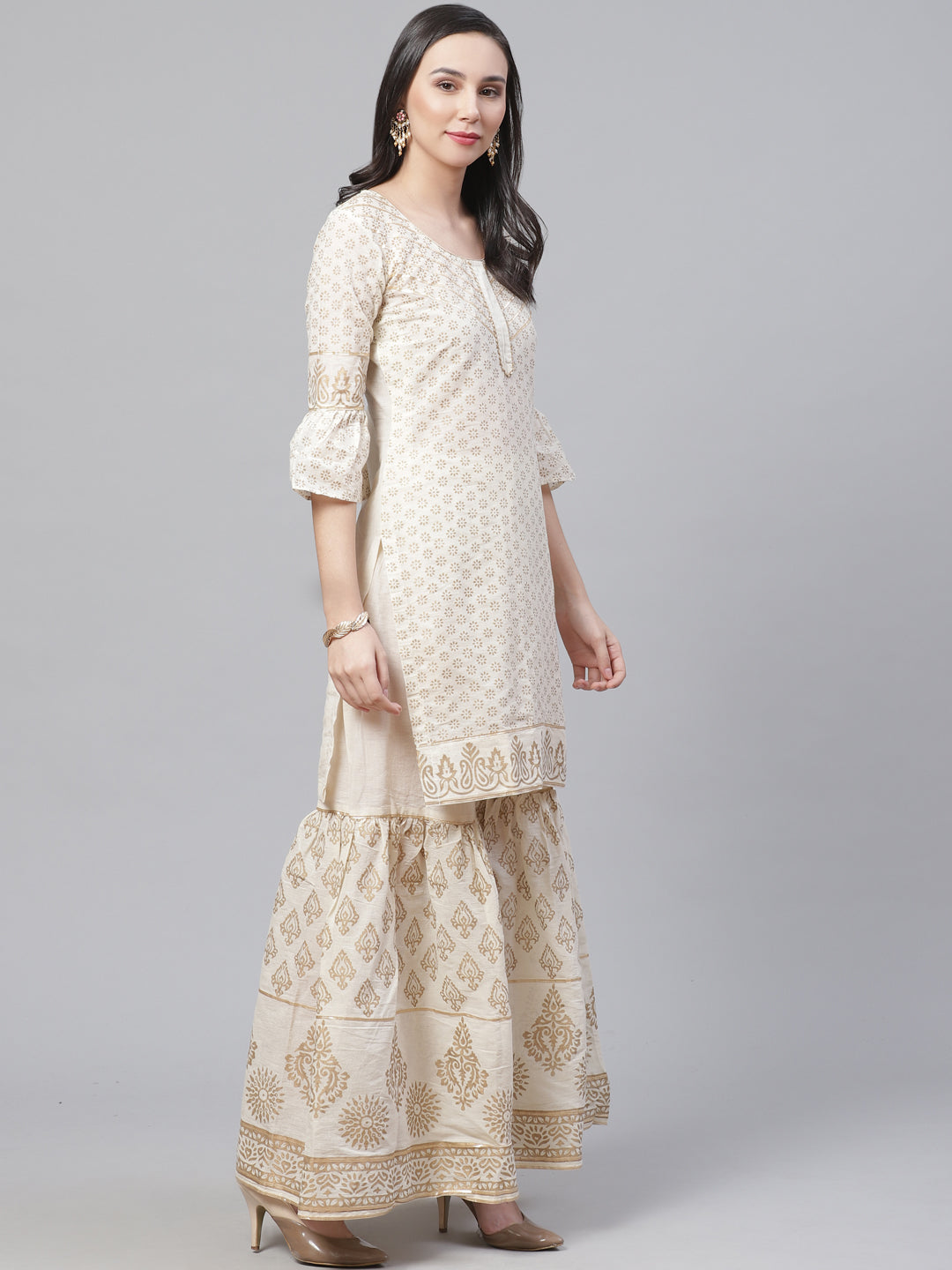Pure Cotton Cambric Block Printing Stitched Suit with Gotta-Patti Embroidery & Sharara