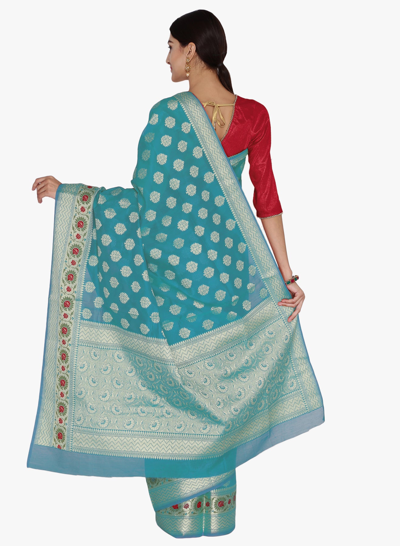 Peacock Blue Banarasi Silk Woven Design Party Wear Saree