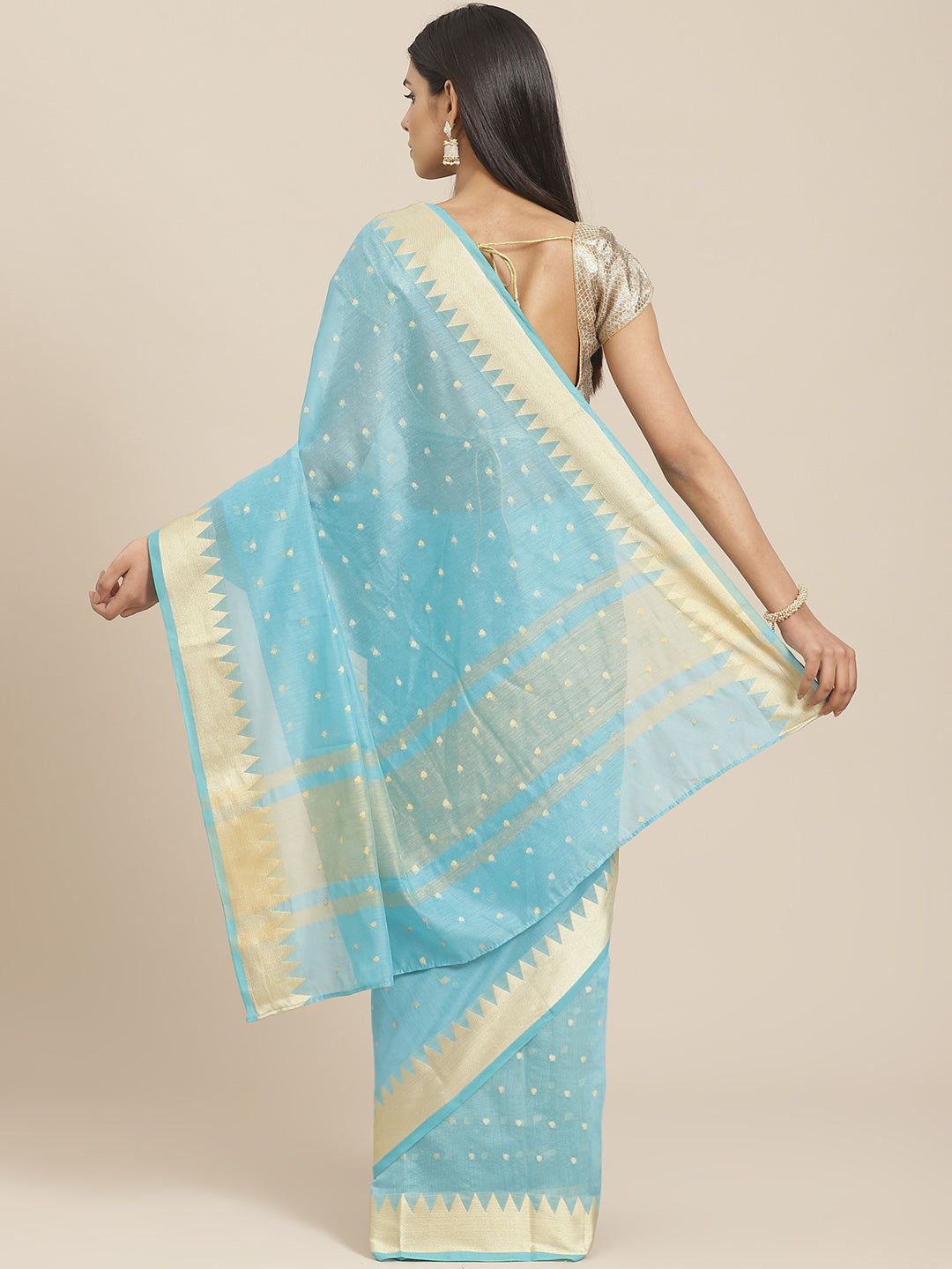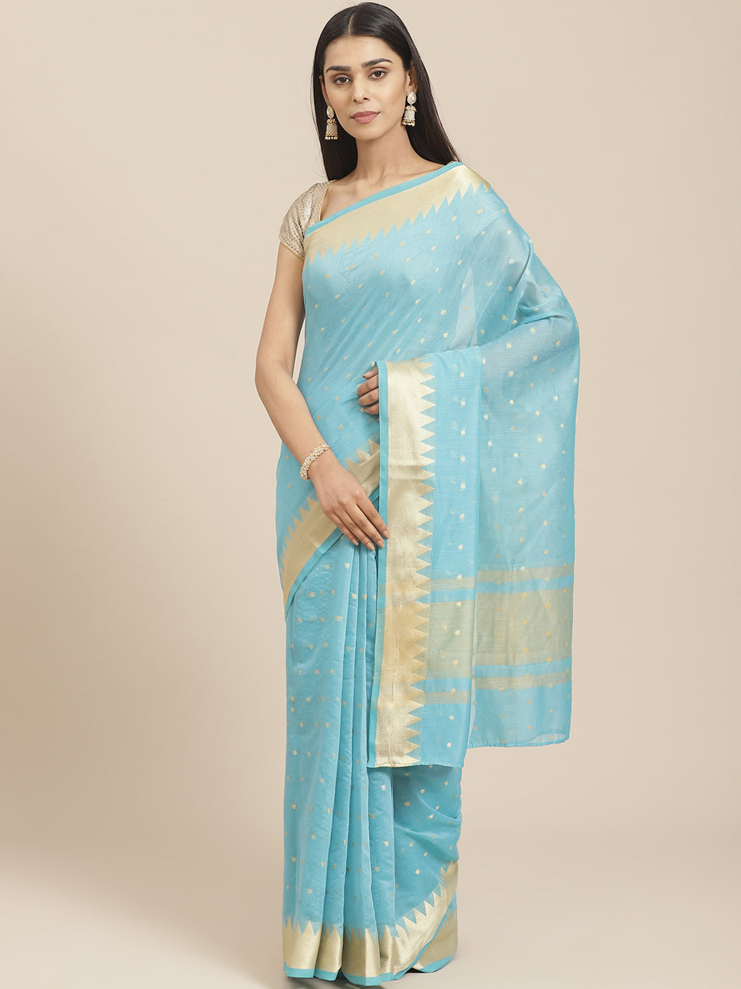 Handloom Chanderi Saree with Temple Style Copper Resham Weaving