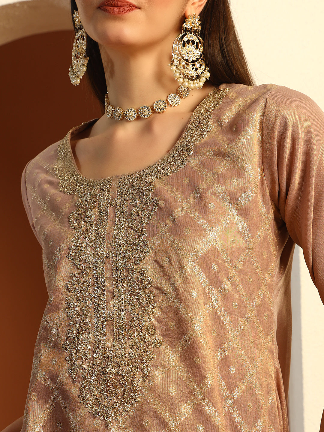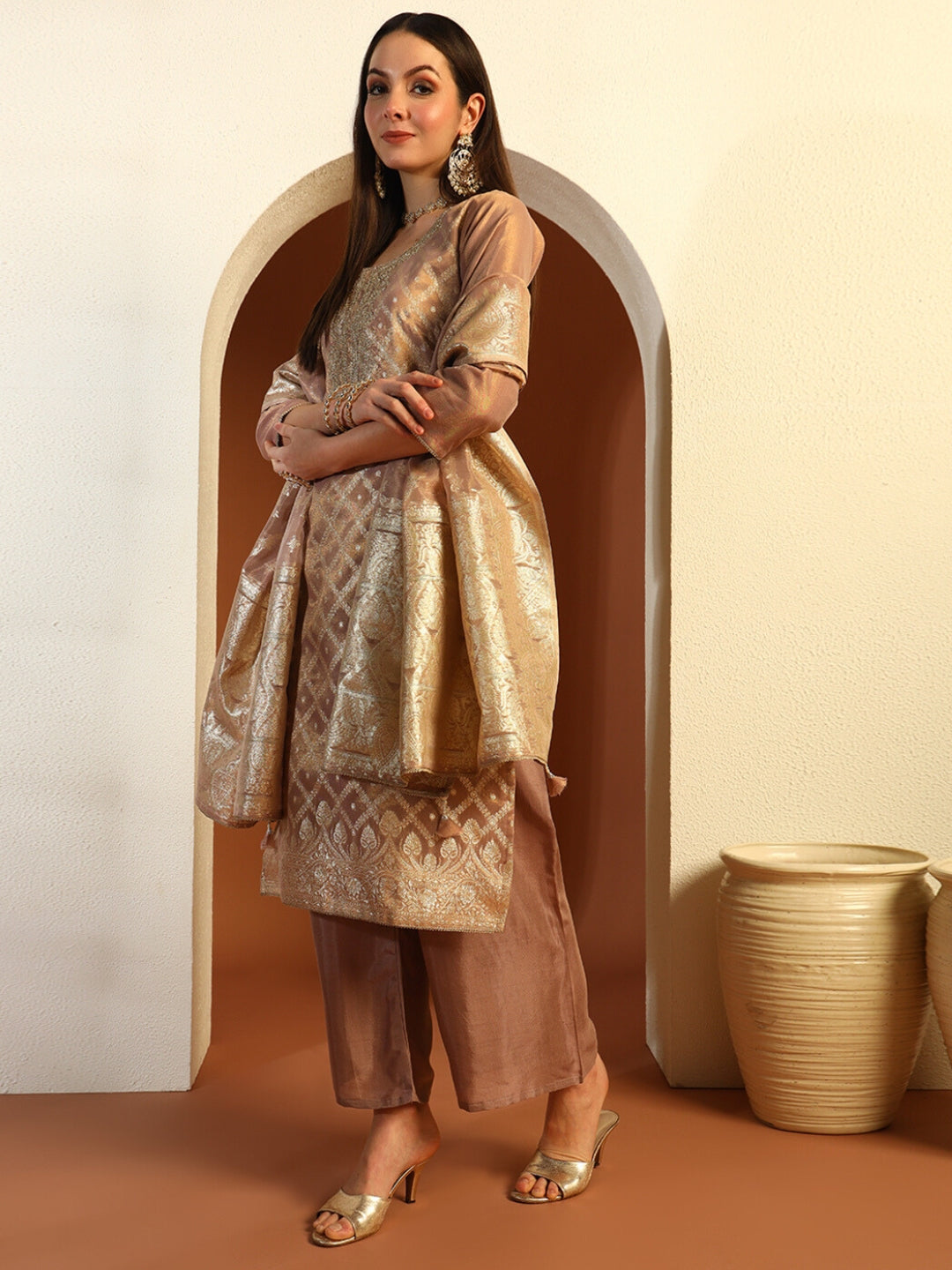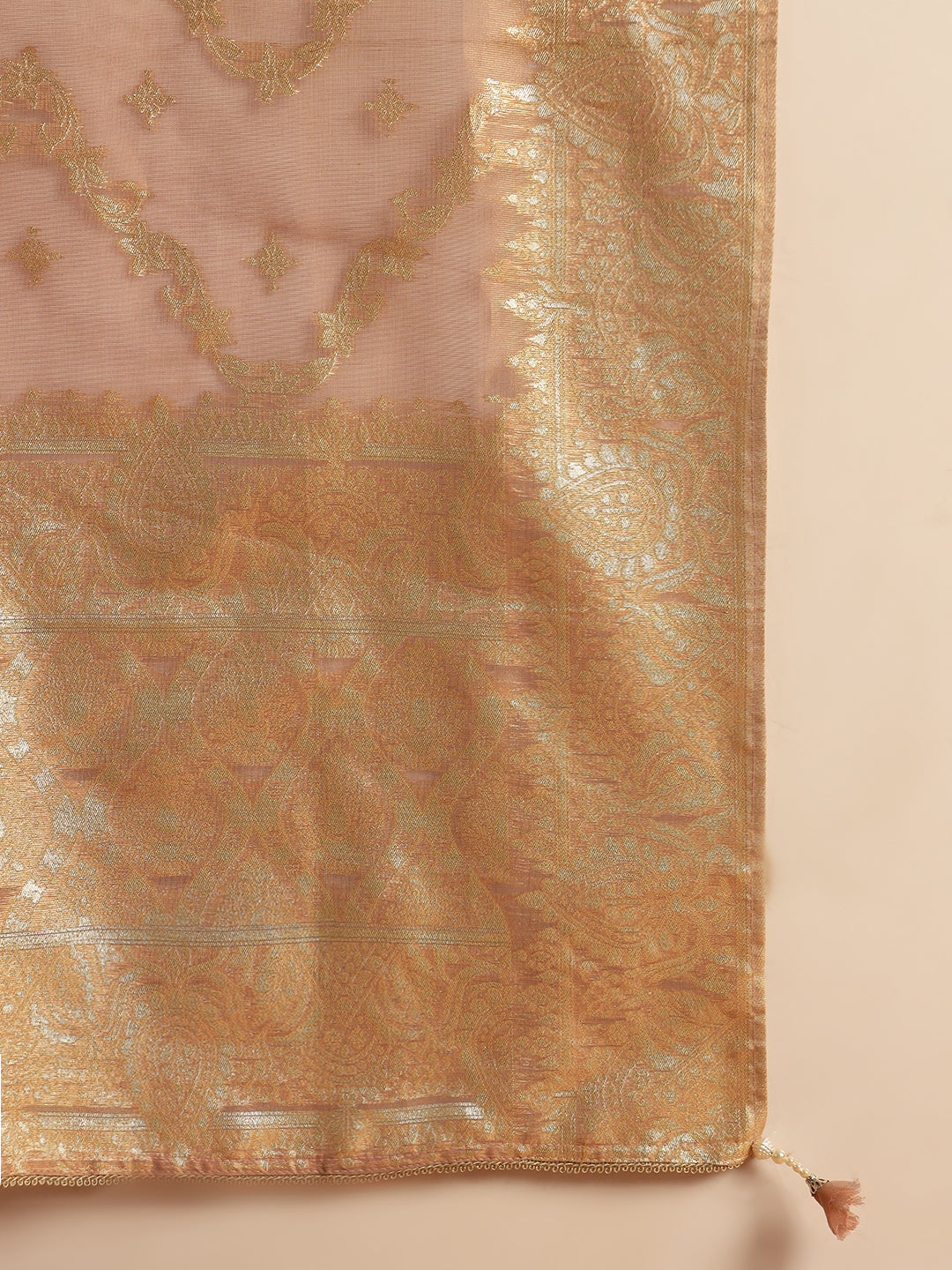 Organza Sequinned Straight Suit with Zardozi Embroidery & Tasseled Chanderi Dupatta