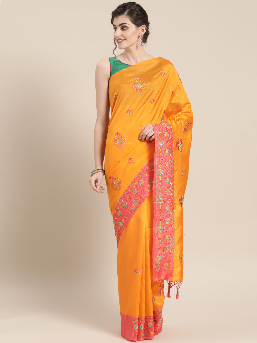 Tussar Banarasi Silk saree with Kantha Embroidery