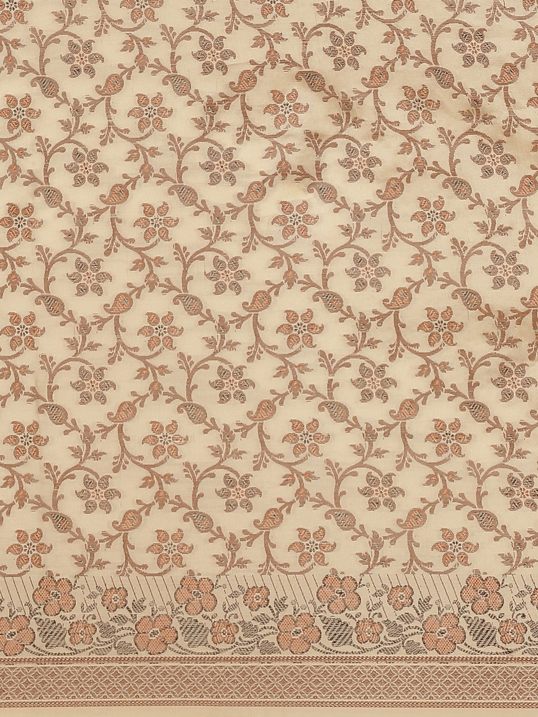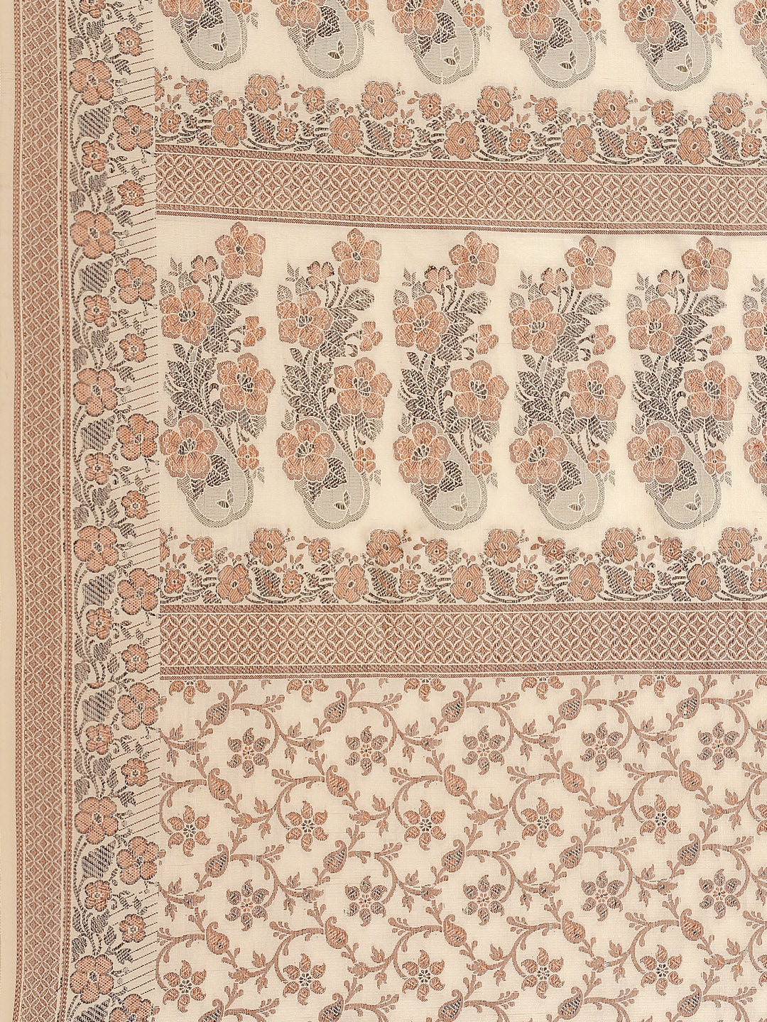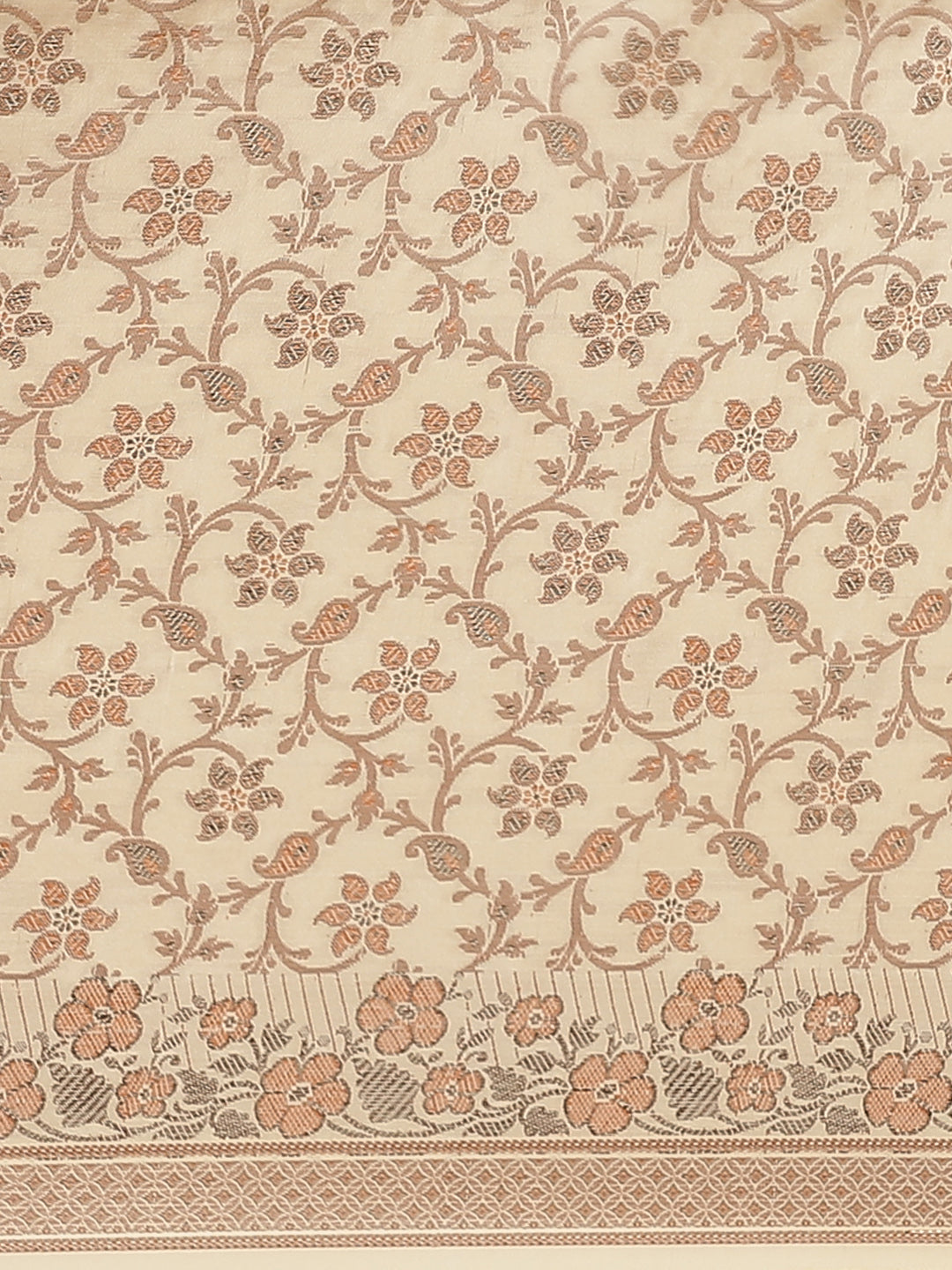 Beige Banarasi Silk Blend Embossed Handloom Saree with Paisley Weaving