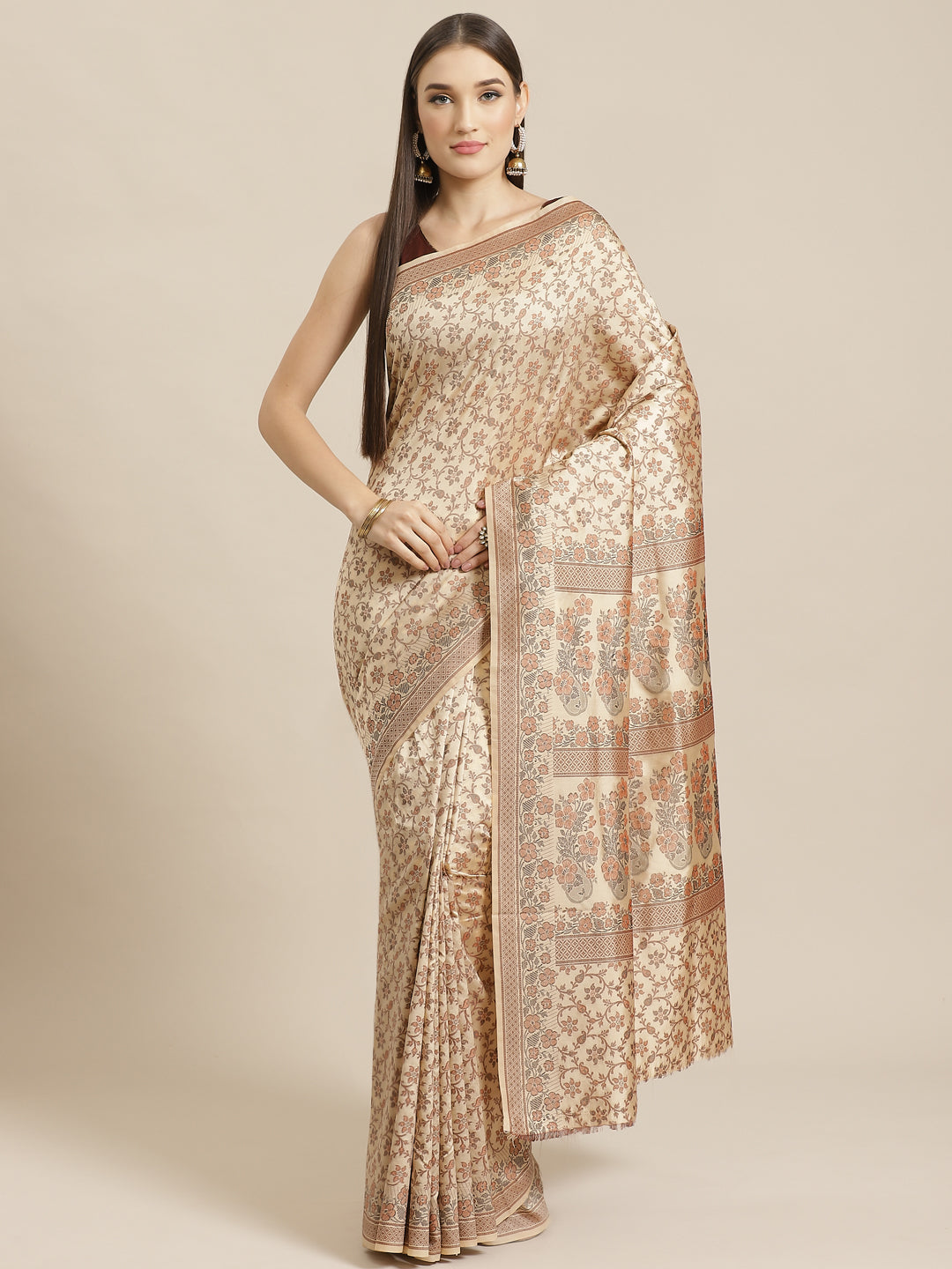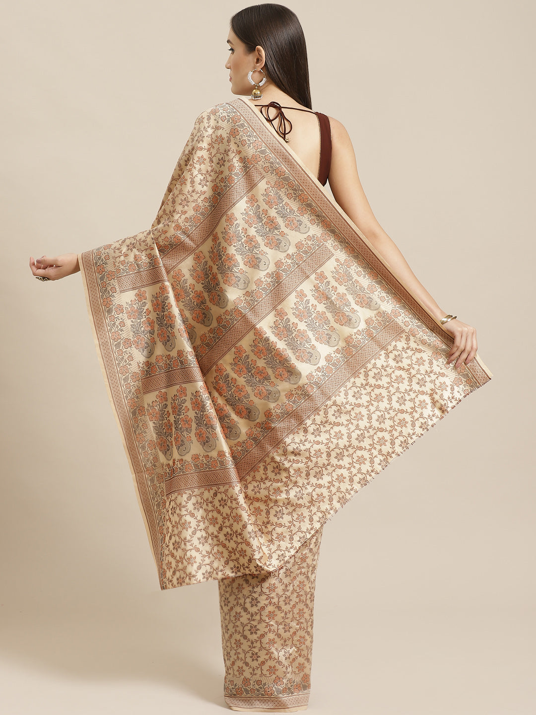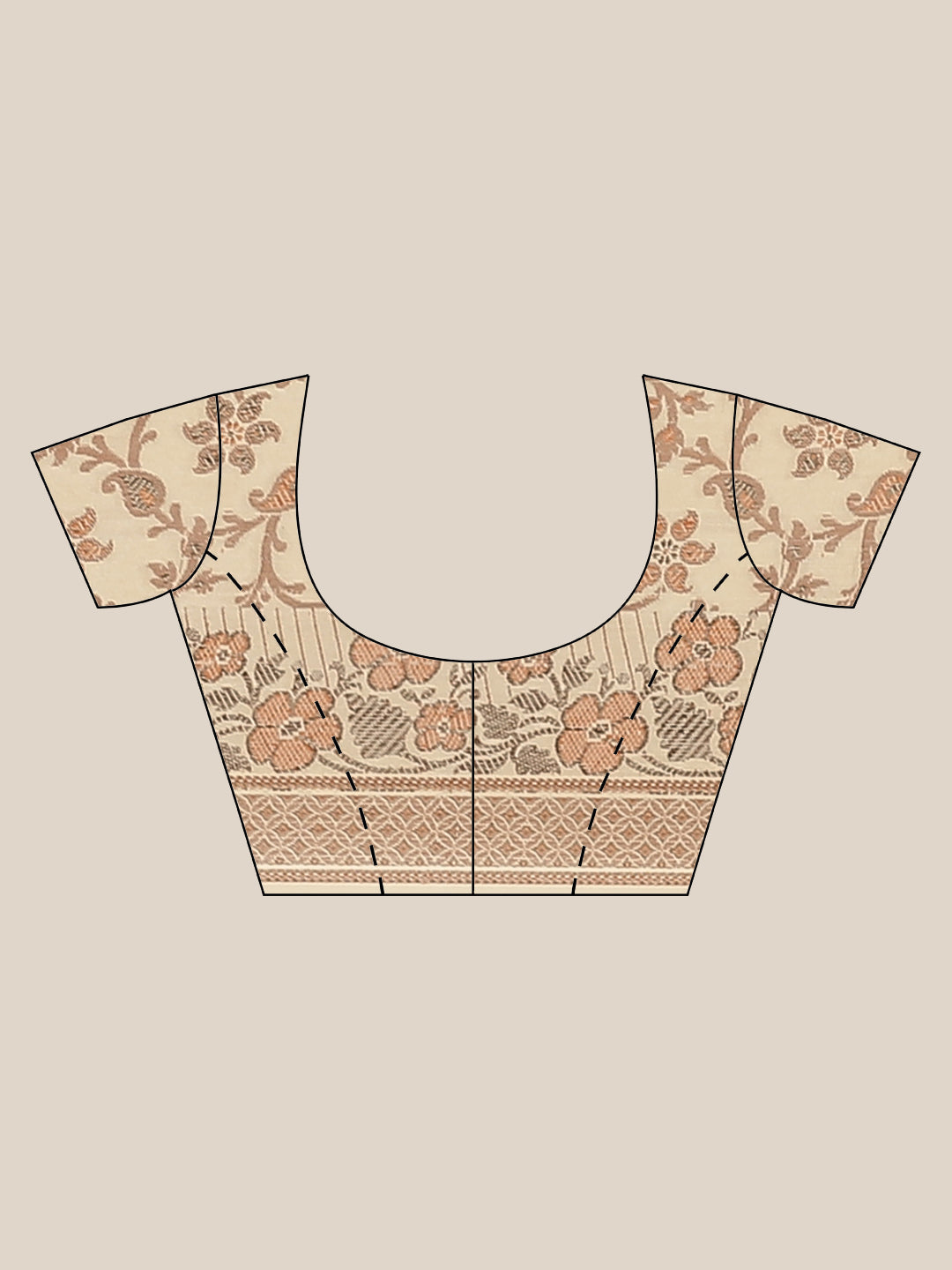 Beige Banarasi Silk Blend Embossed Handloom Saree with Paisley Weaving