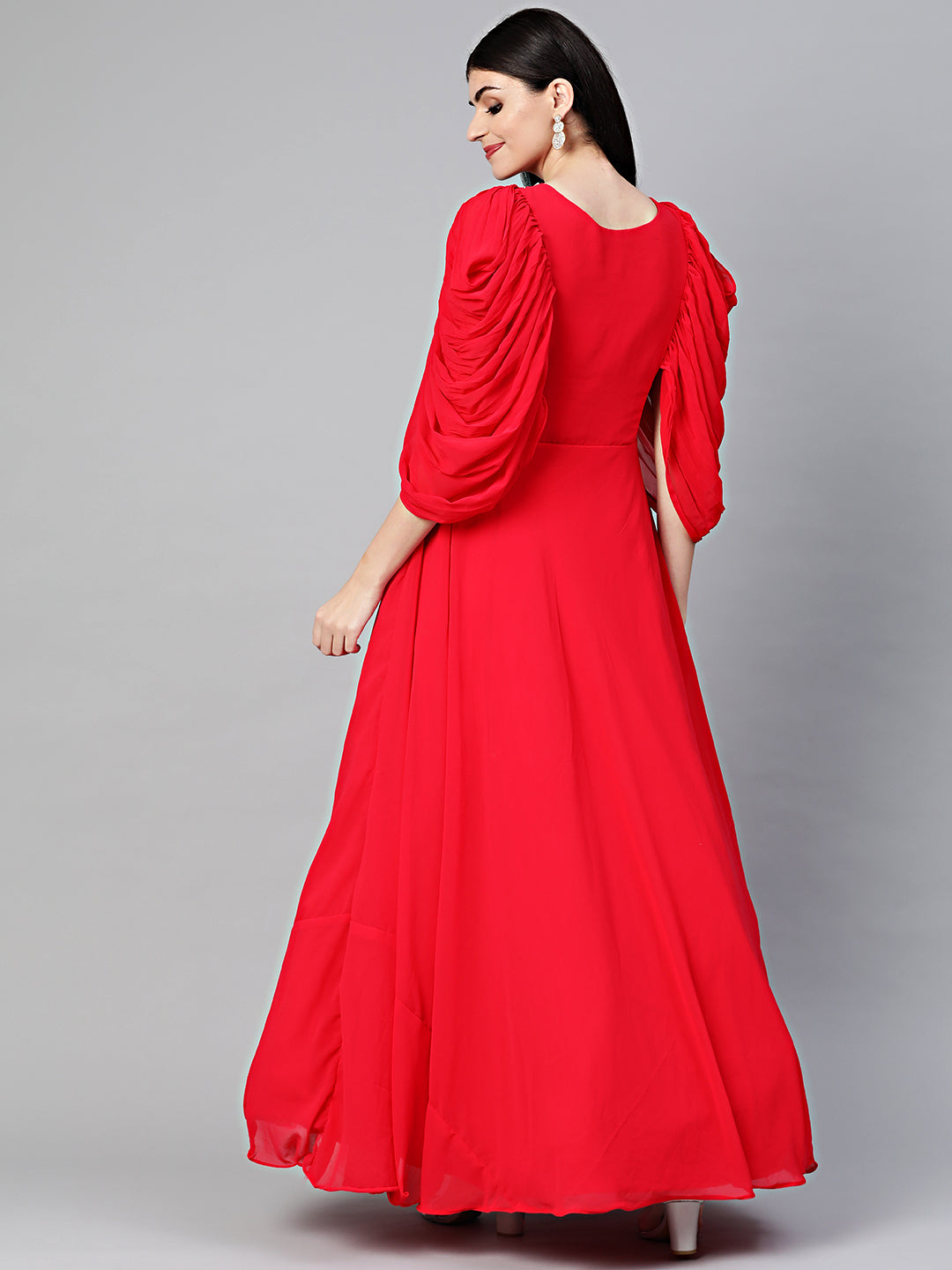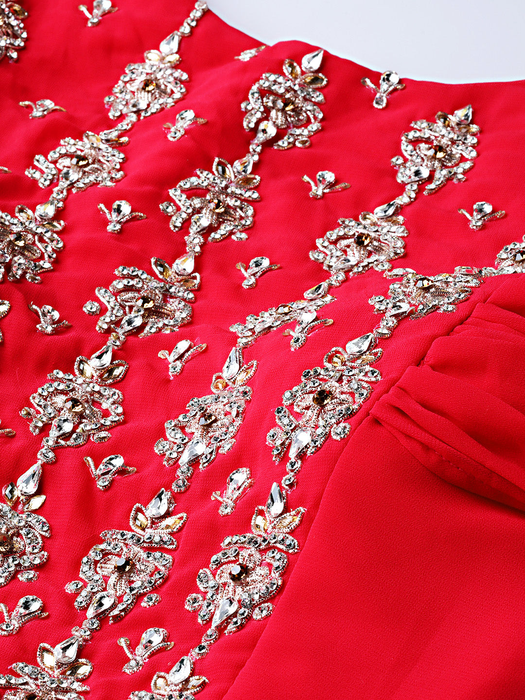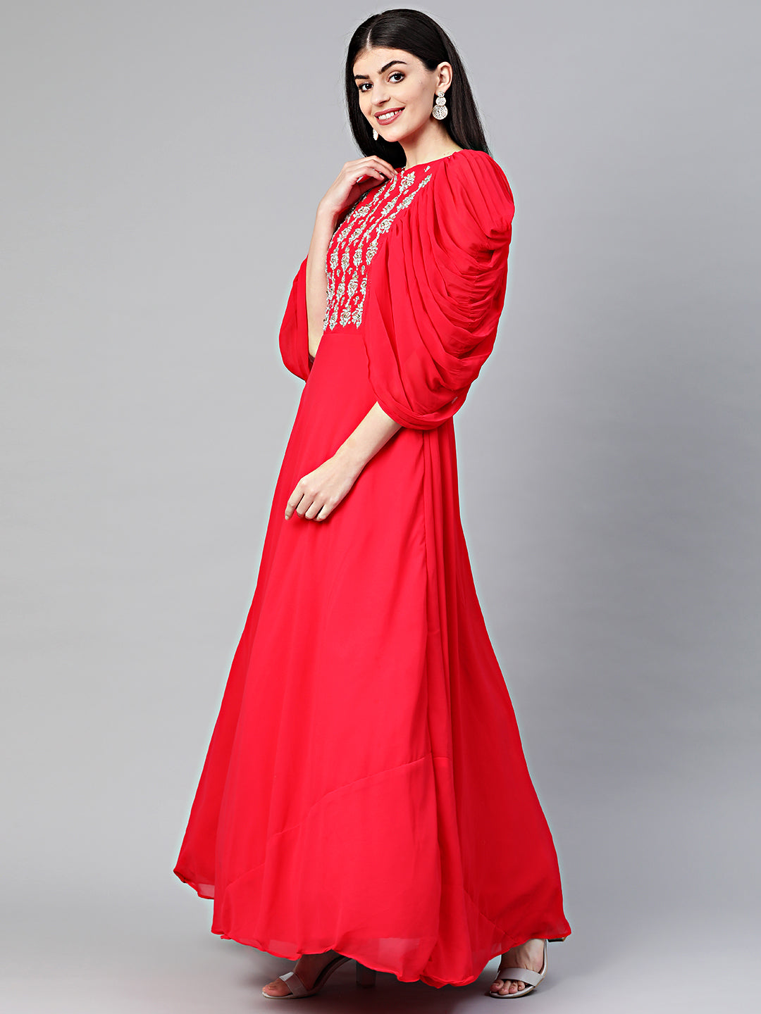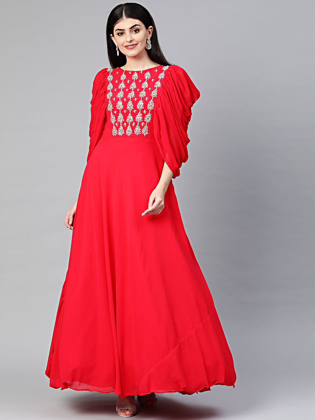 Embellished Anarkali Cocktail Gown with Ruffled Sleeves