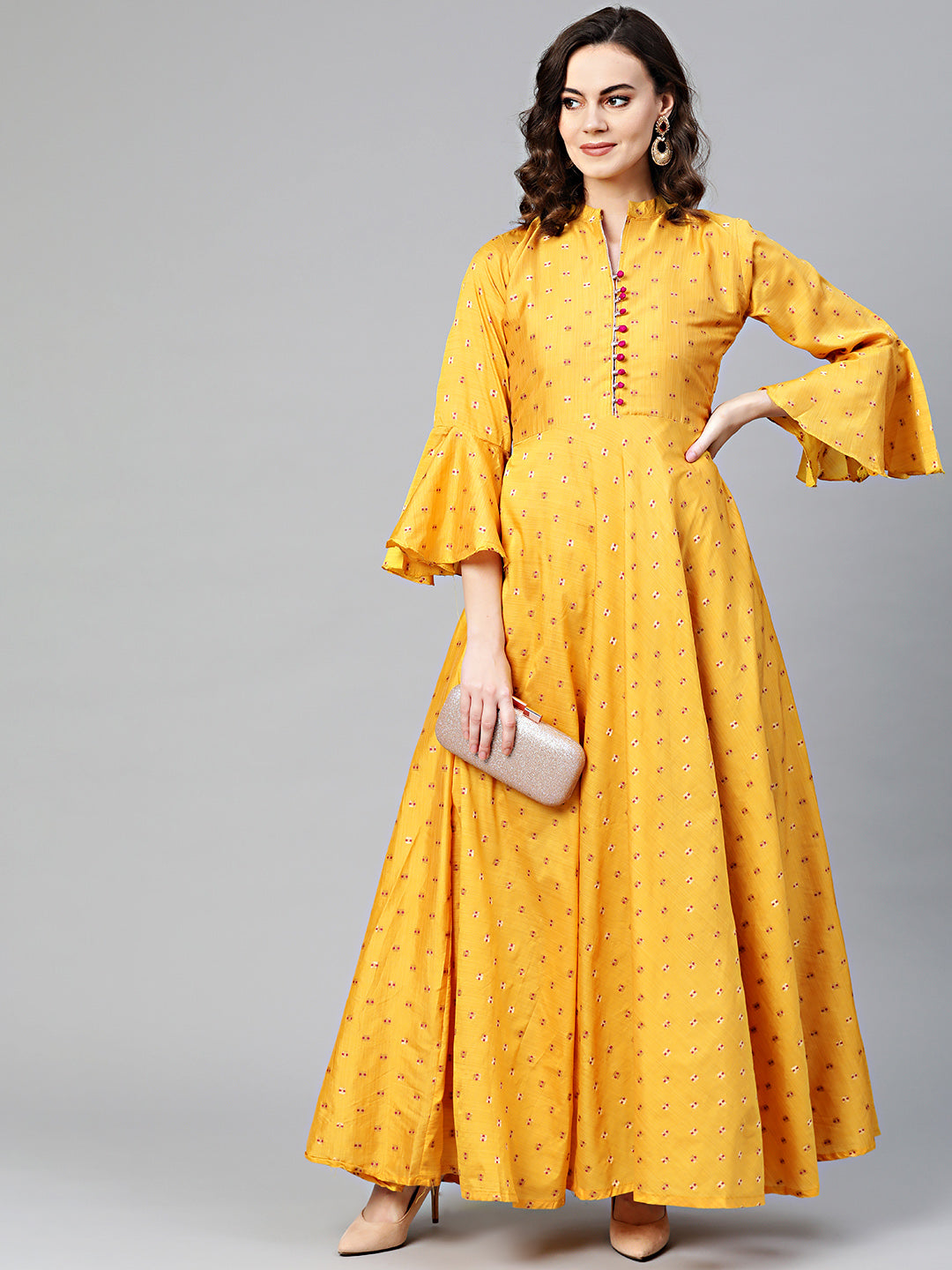 Anarkali Printed Kurta Dress with Bell Sleeves