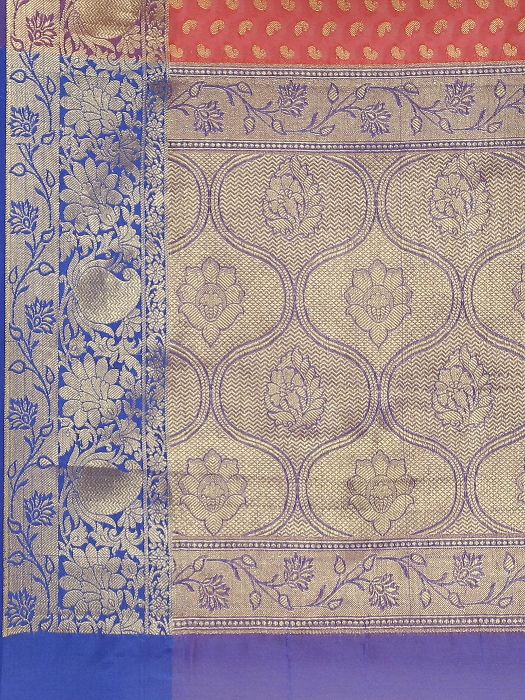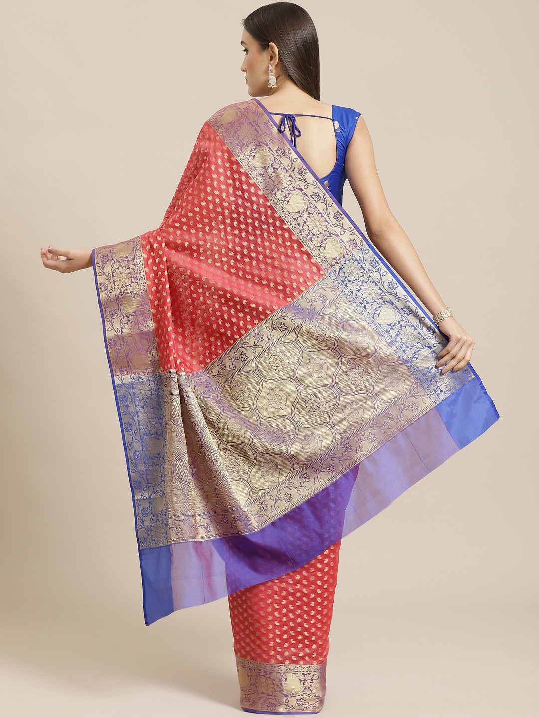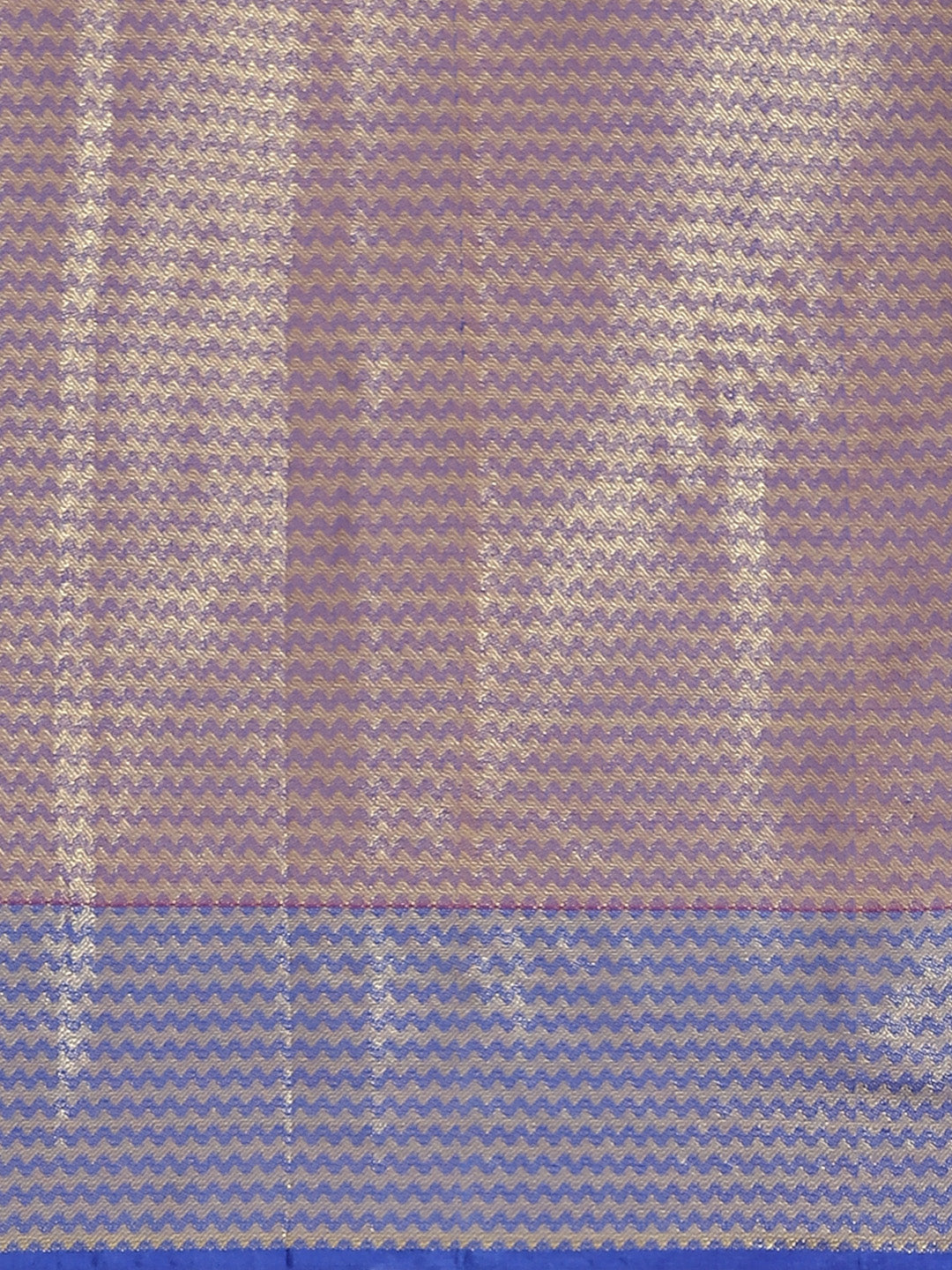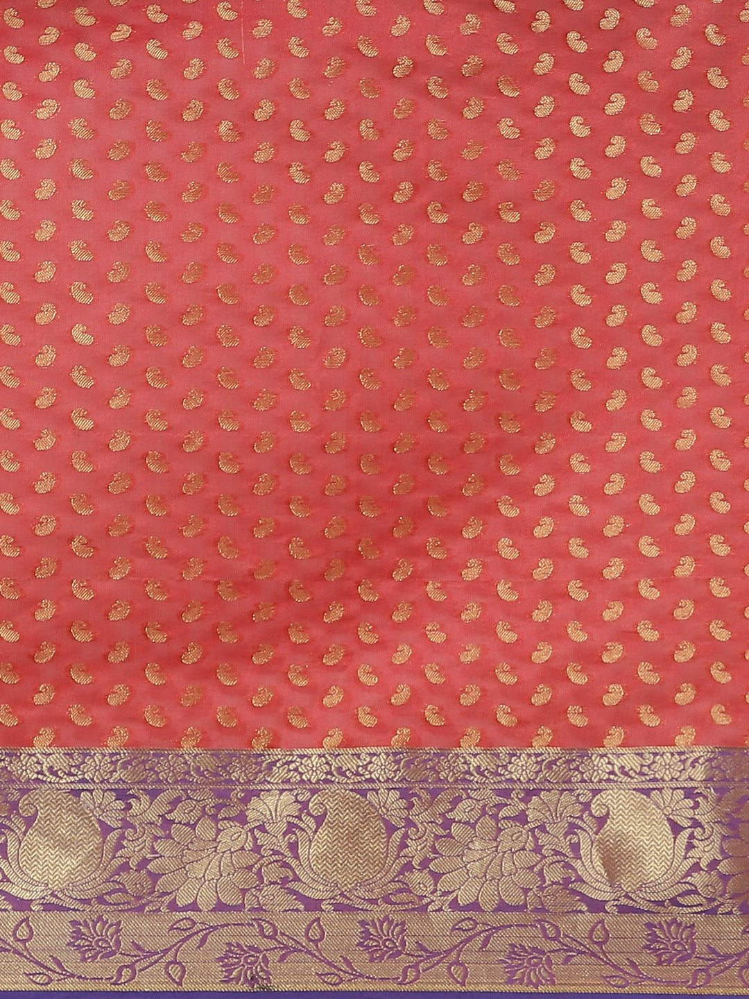 Rose Pink Handloom Chanderi Saree with Paisleys Weaving & Contrast Purple Border, Blouse