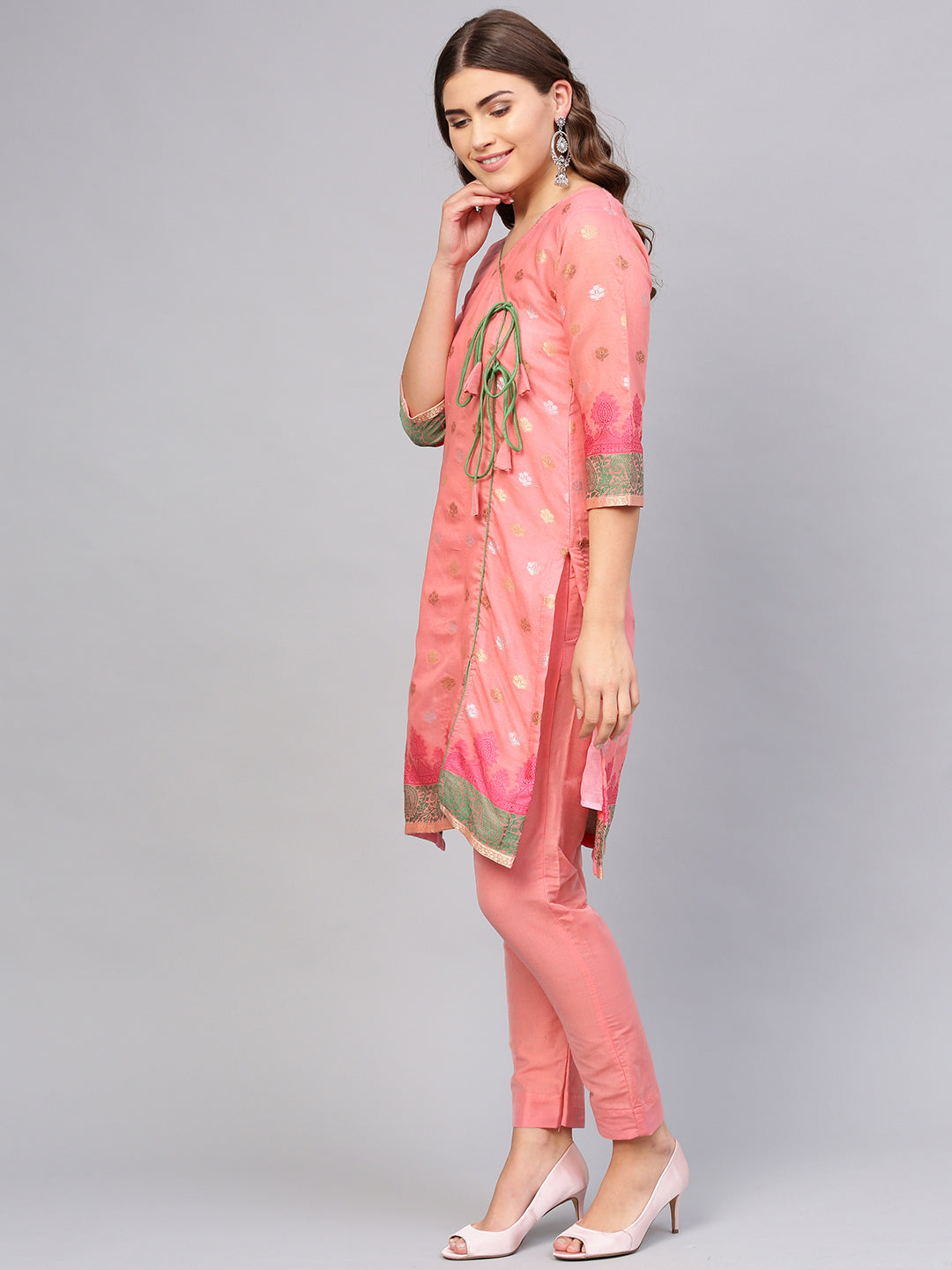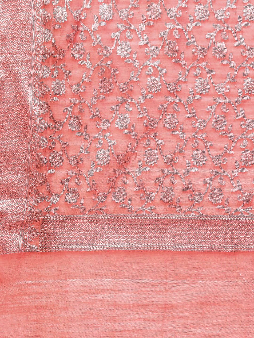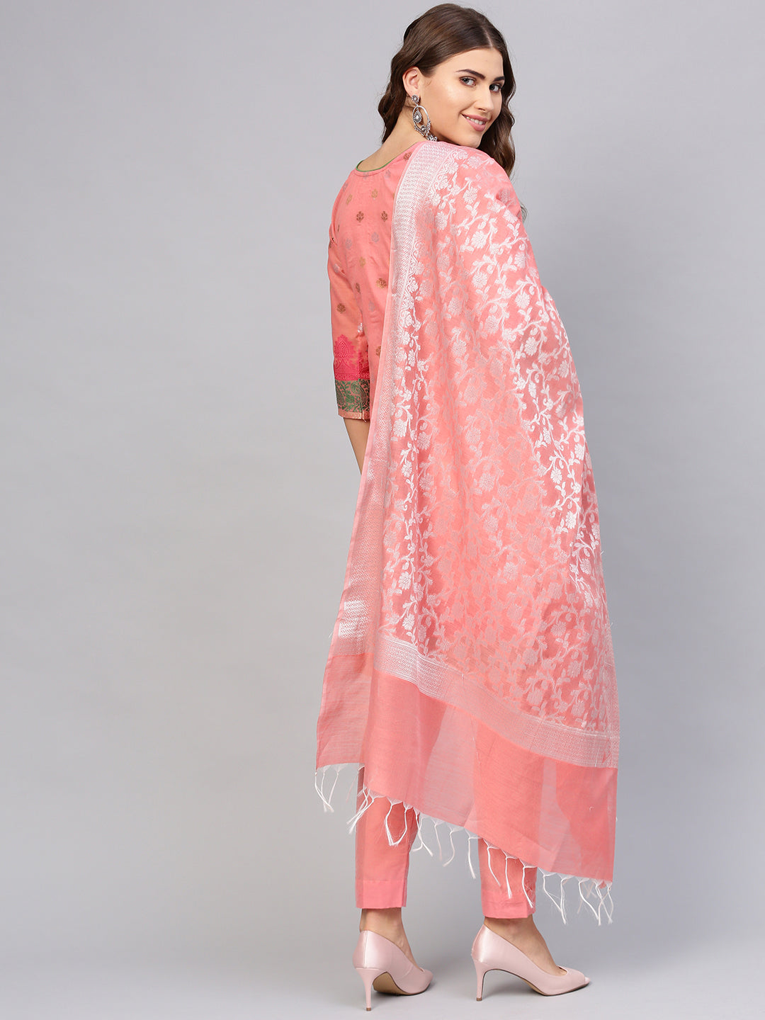 Chhabra 555 Pink Banarasi Handloom Dress Material with Zari Resham Weaving and Tassled dupatta