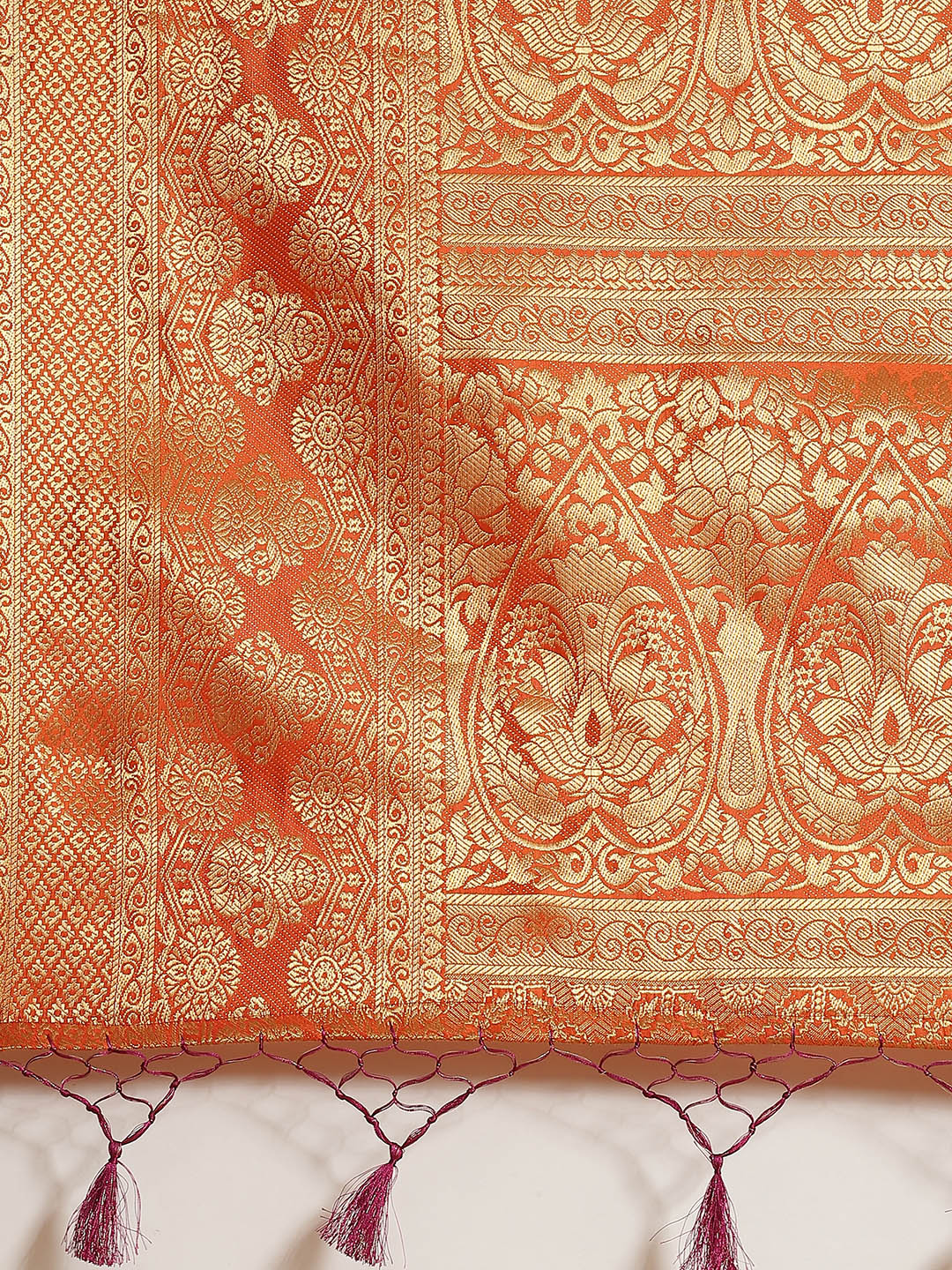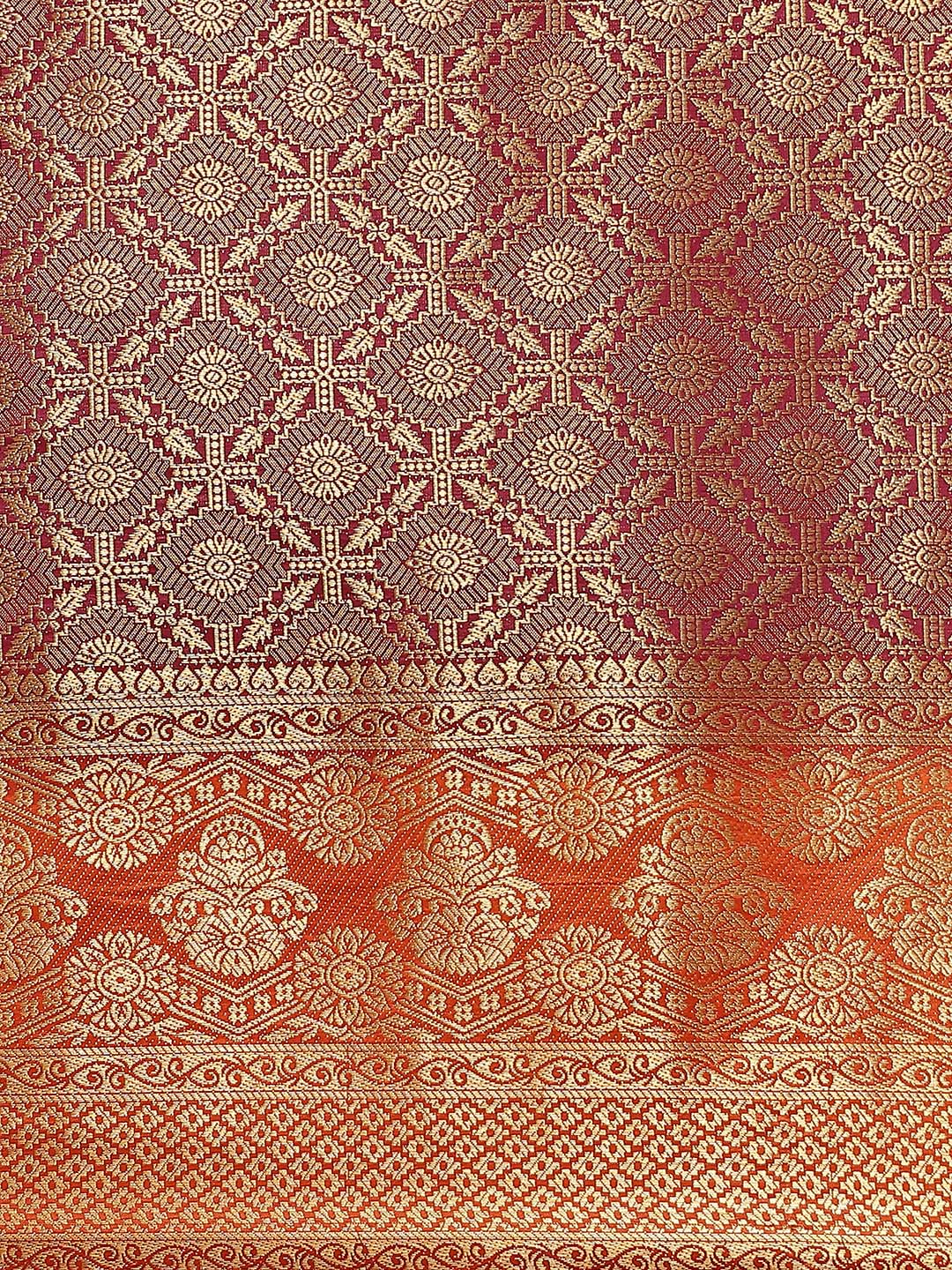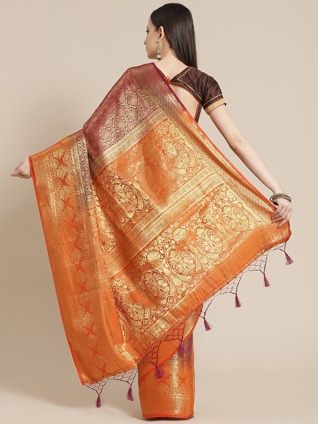 Burgundy Brocade Banarasi Golden Weaving Embellished TraditionalSaree