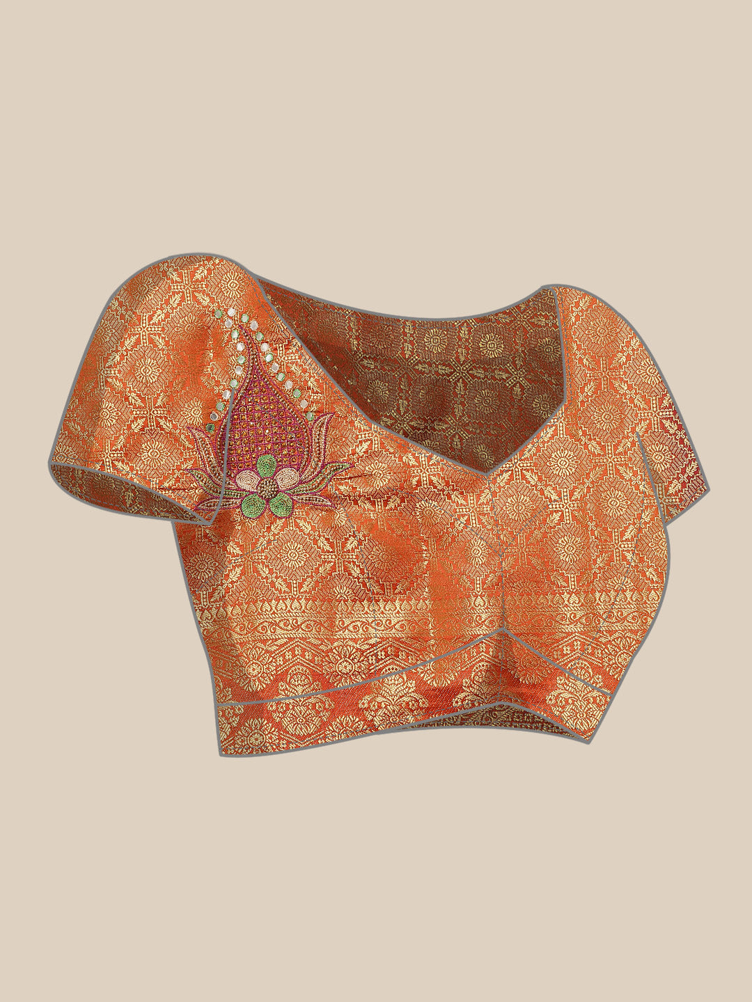 The CAD image gives a detailed look of the actual blouse piece that comes with this saree. The blouse used by the model in the pictures is only for styling purpose.