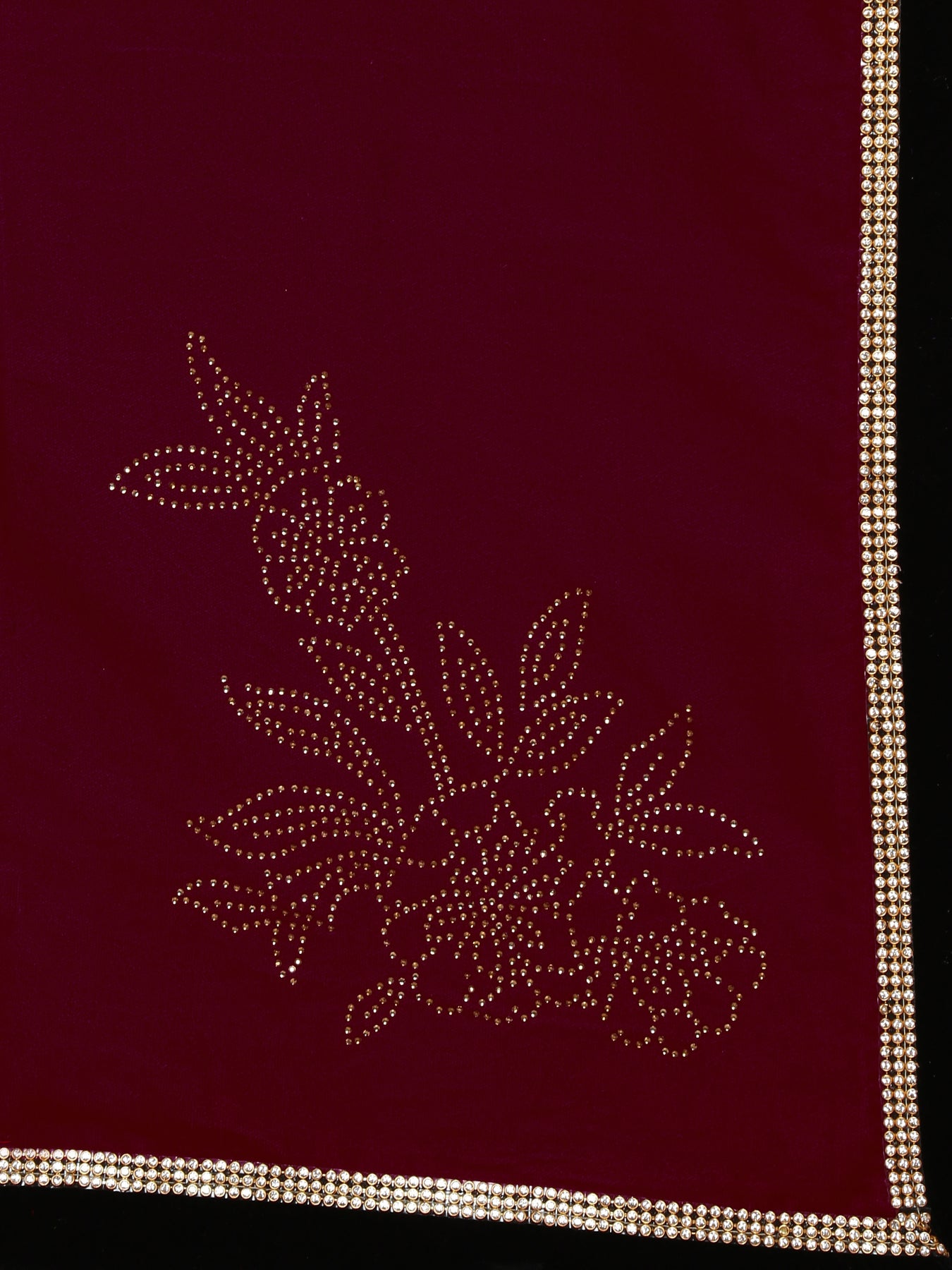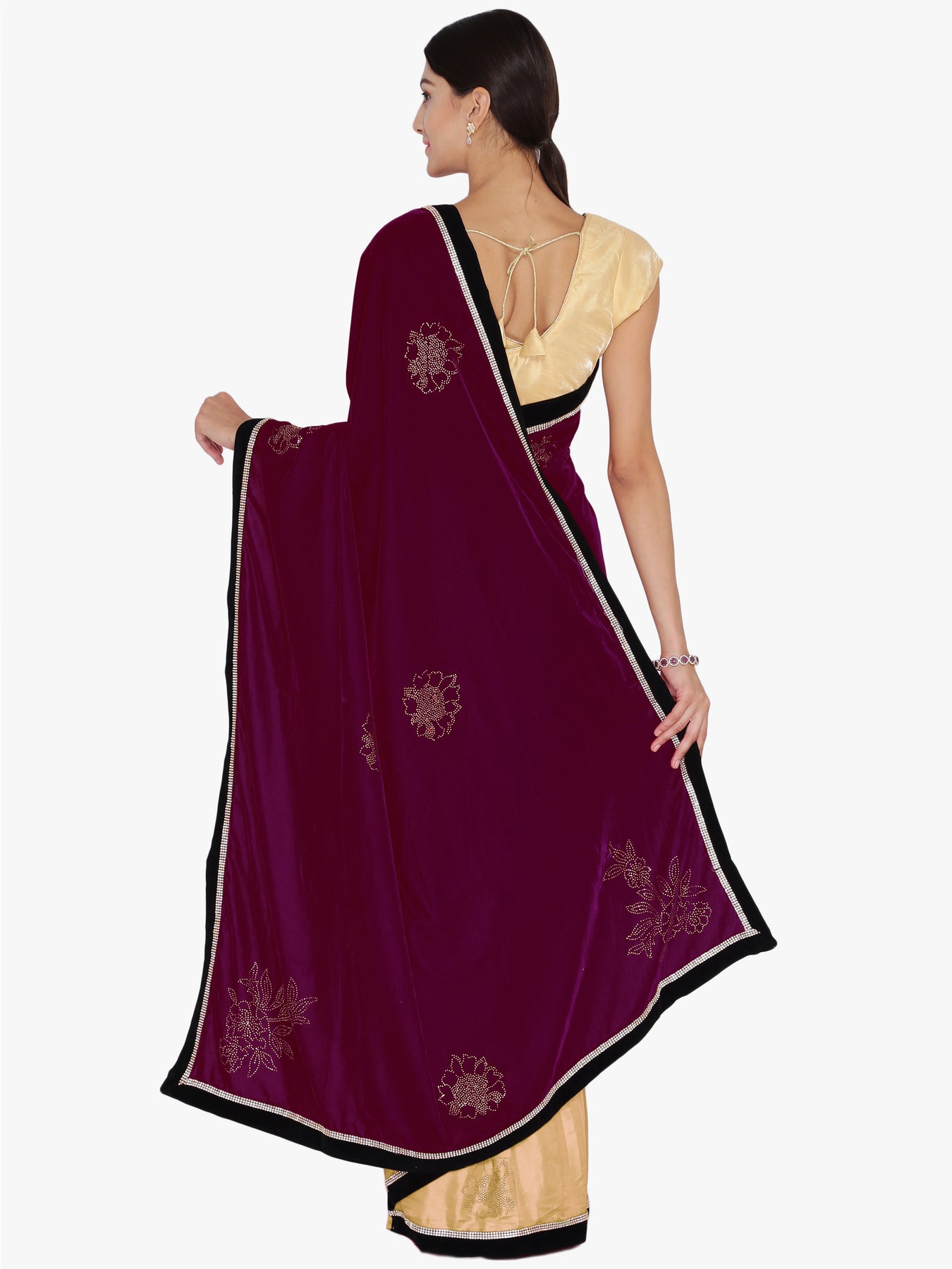 Burgundy and Gold Velvet Saree with Crystal Embroidery