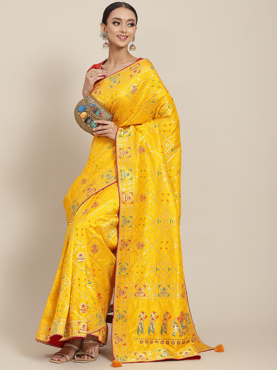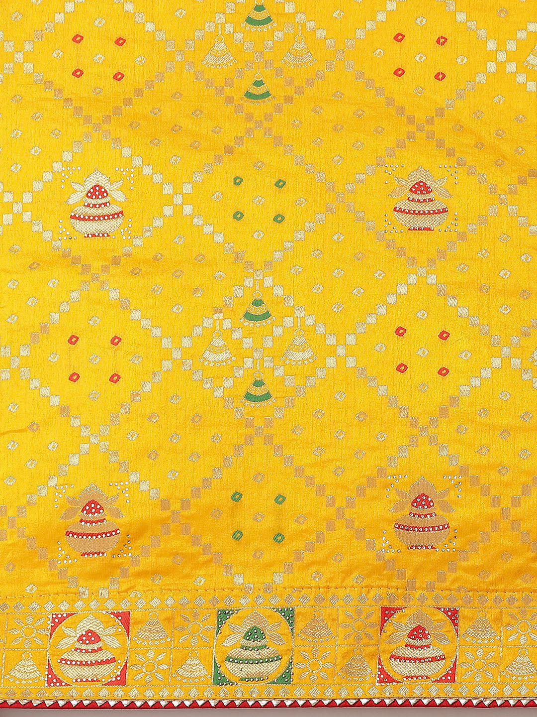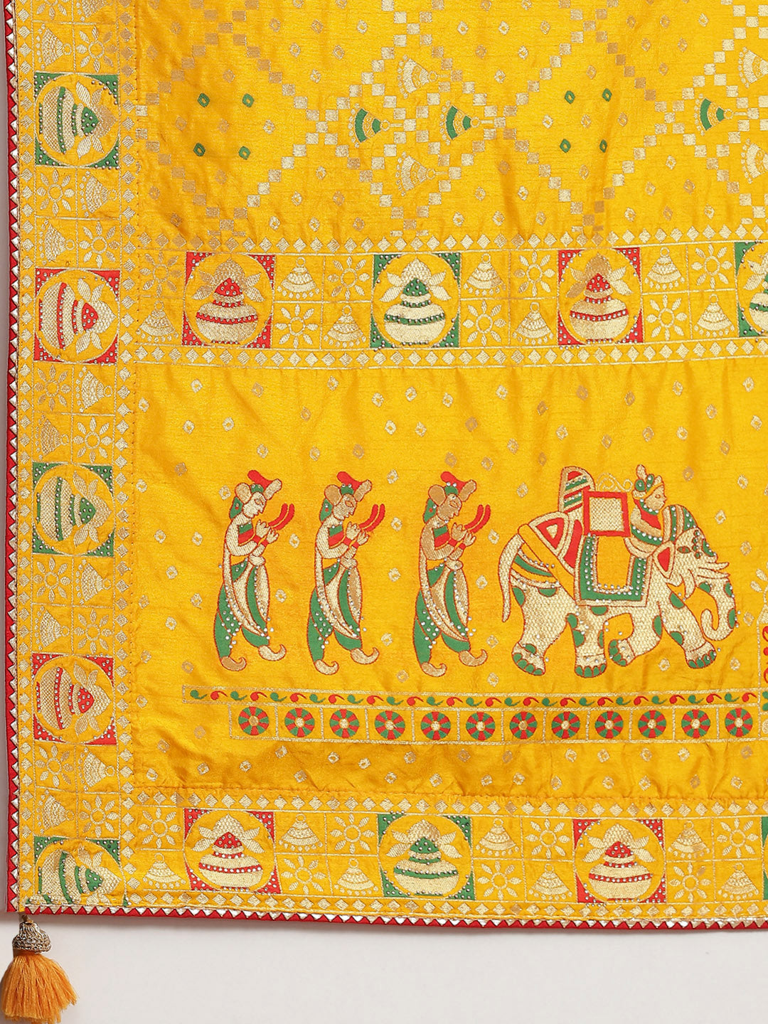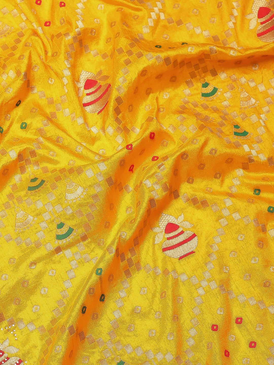 Gharchola Chanderi Silk Saree with Traditional Zari, Beads & Tassels