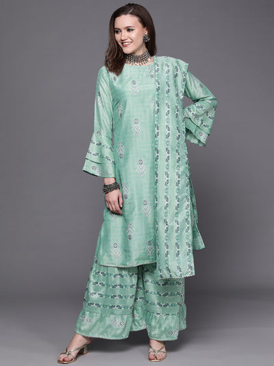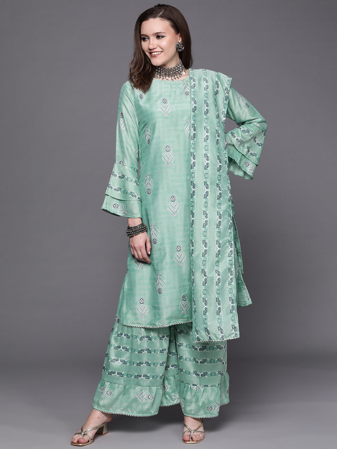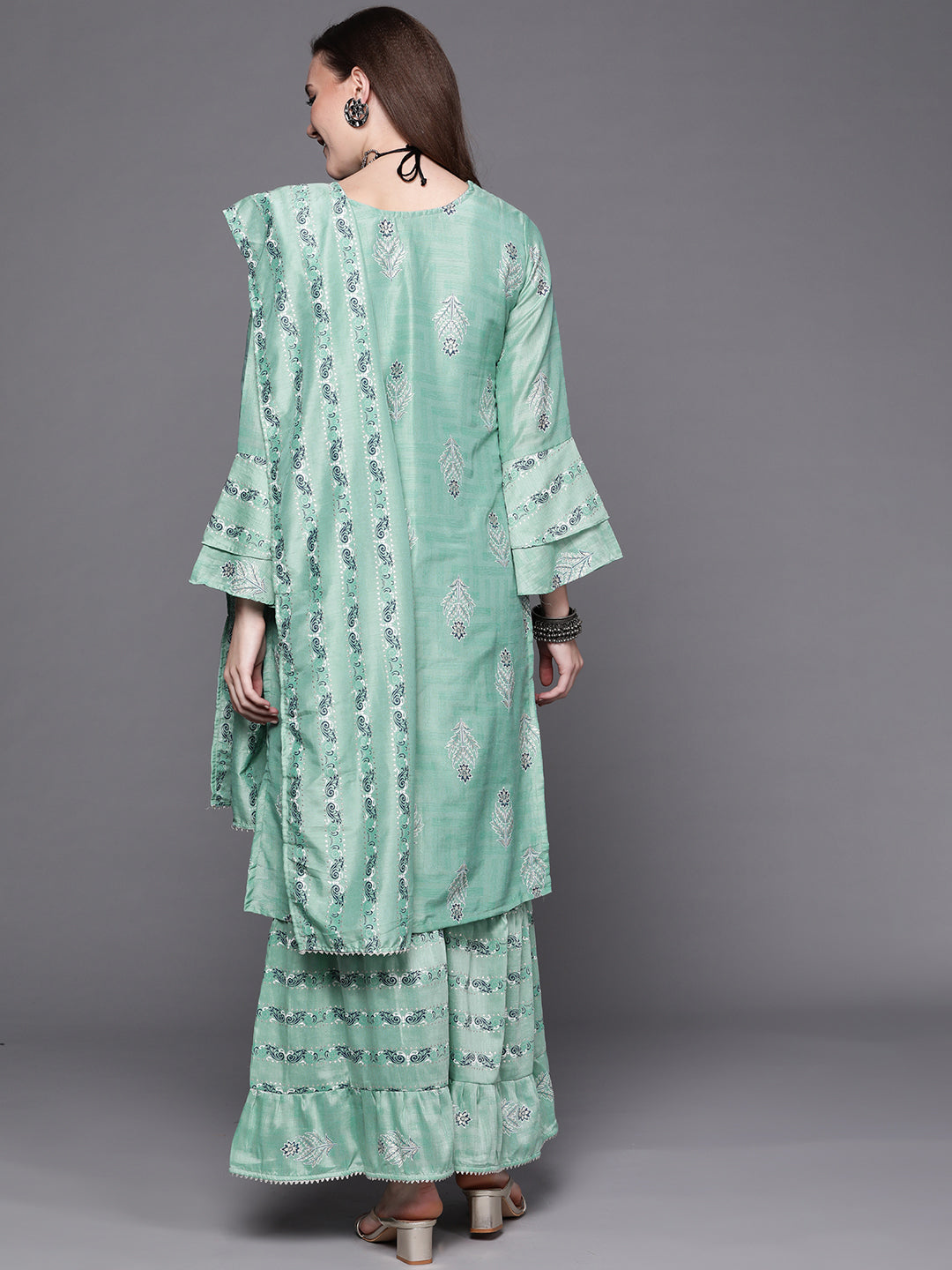 Chhabra 555 Made to Measure Pastel Indie Print Kurta Set with Tiered Sharara and Gota Embellishments