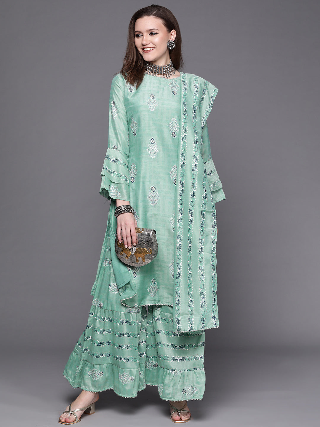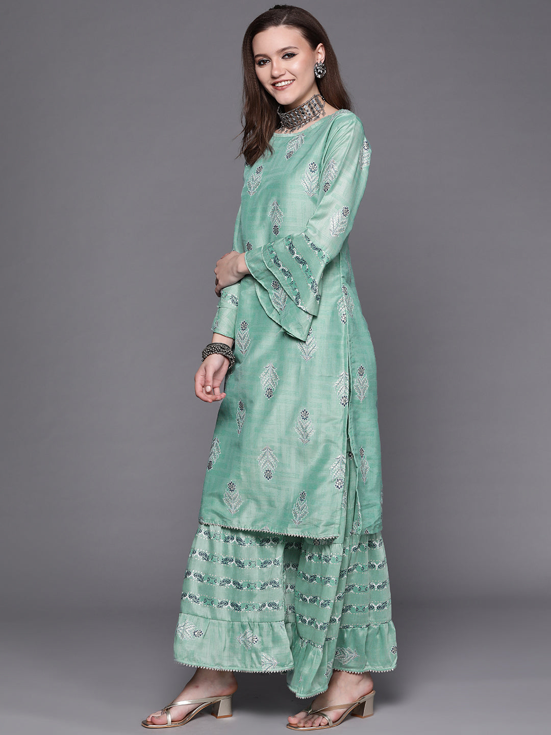 Pastel Indie Print Gota Embellishment Kurta Sharara Set
