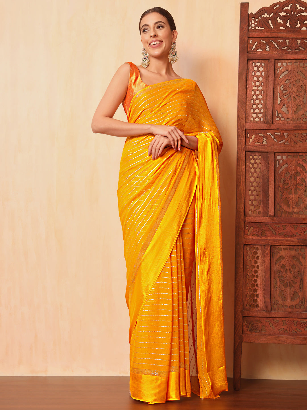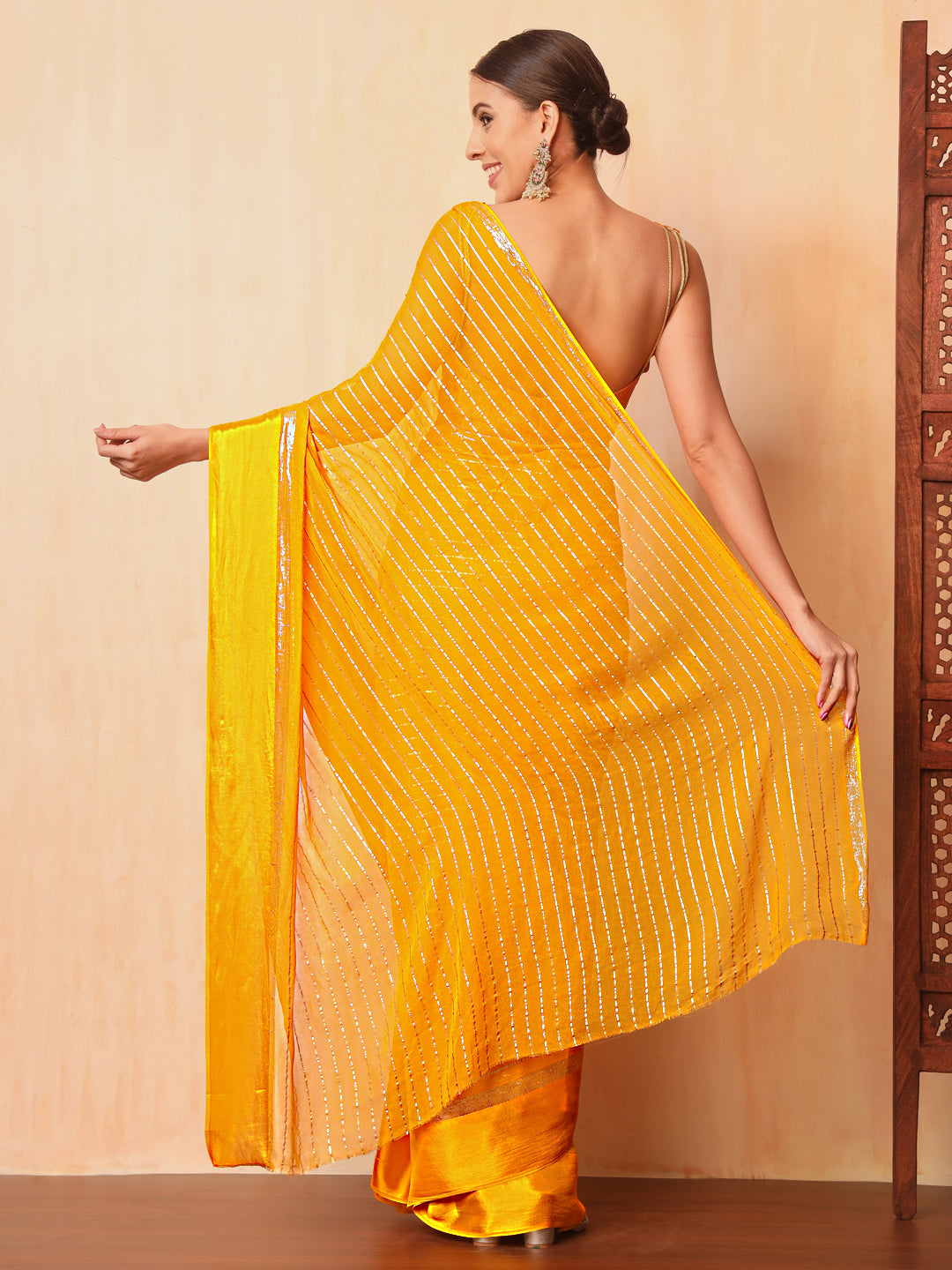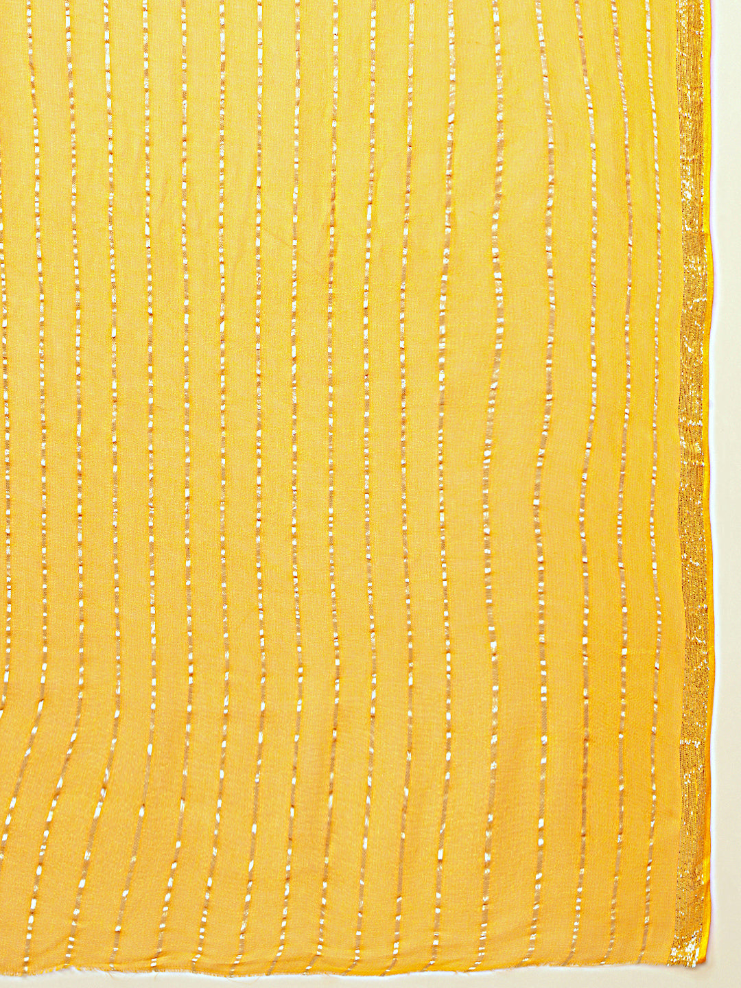 Haldi Yellow Lurex Zari Striped Lightweight Girlish Leheriya Saree