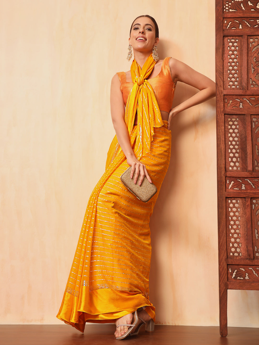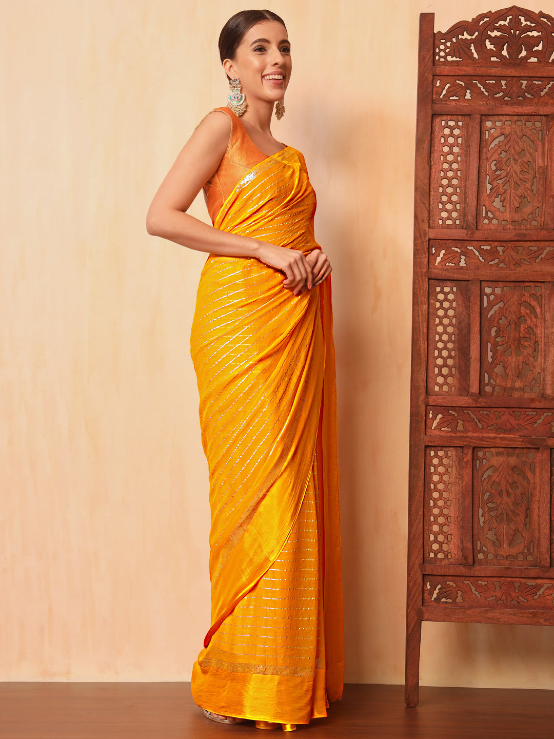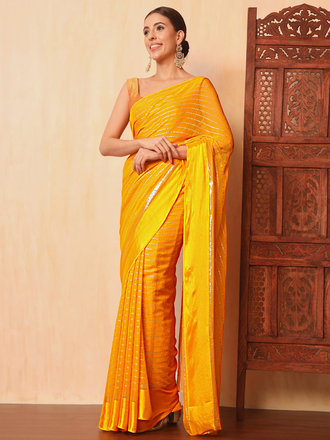 Haldi Yellow Lurex Zari Striped Lightweight Girlish Leheriya Saree