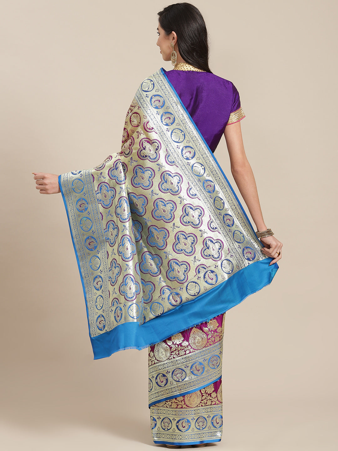 Burgundy Handloom Silk Saree With Embellished Heavy Zari Weaves