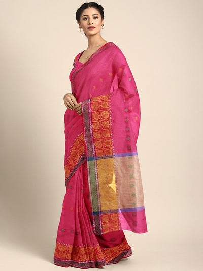 Magenta Traditional Chanderi saree with Resham Meenkari & Zari Weaving