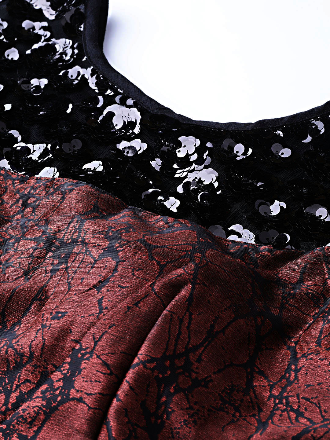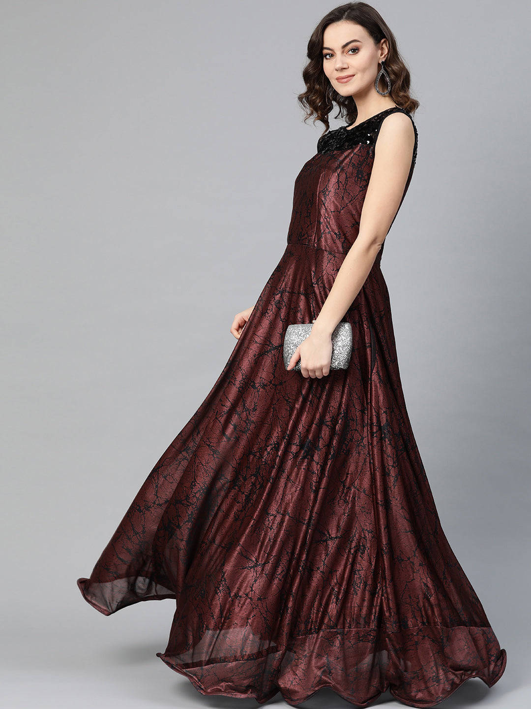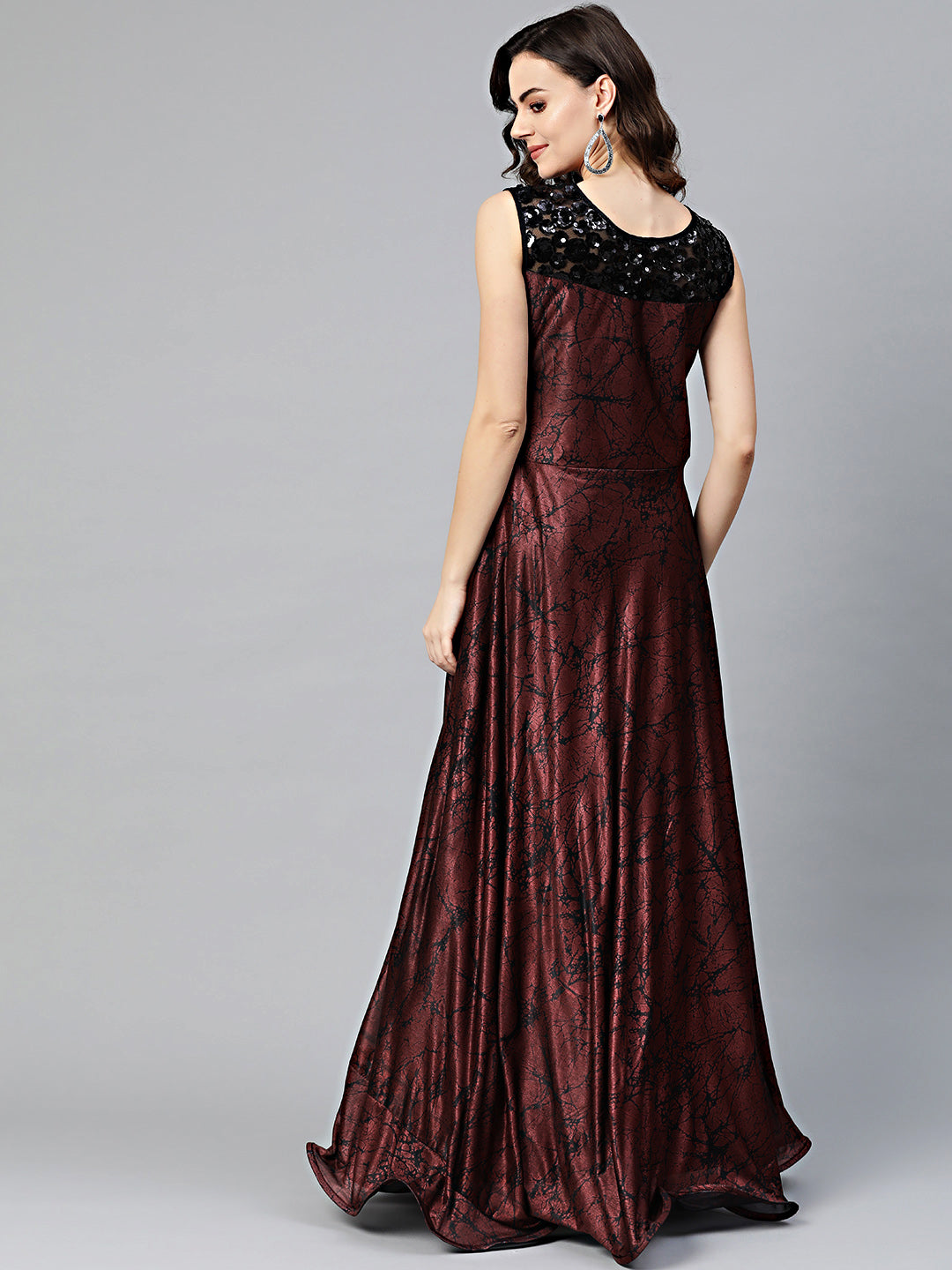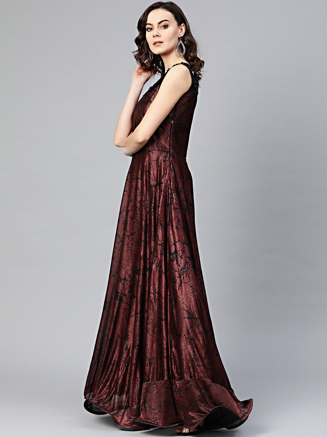 Embellished Cocktail Gown with Contemporary Abstract Print