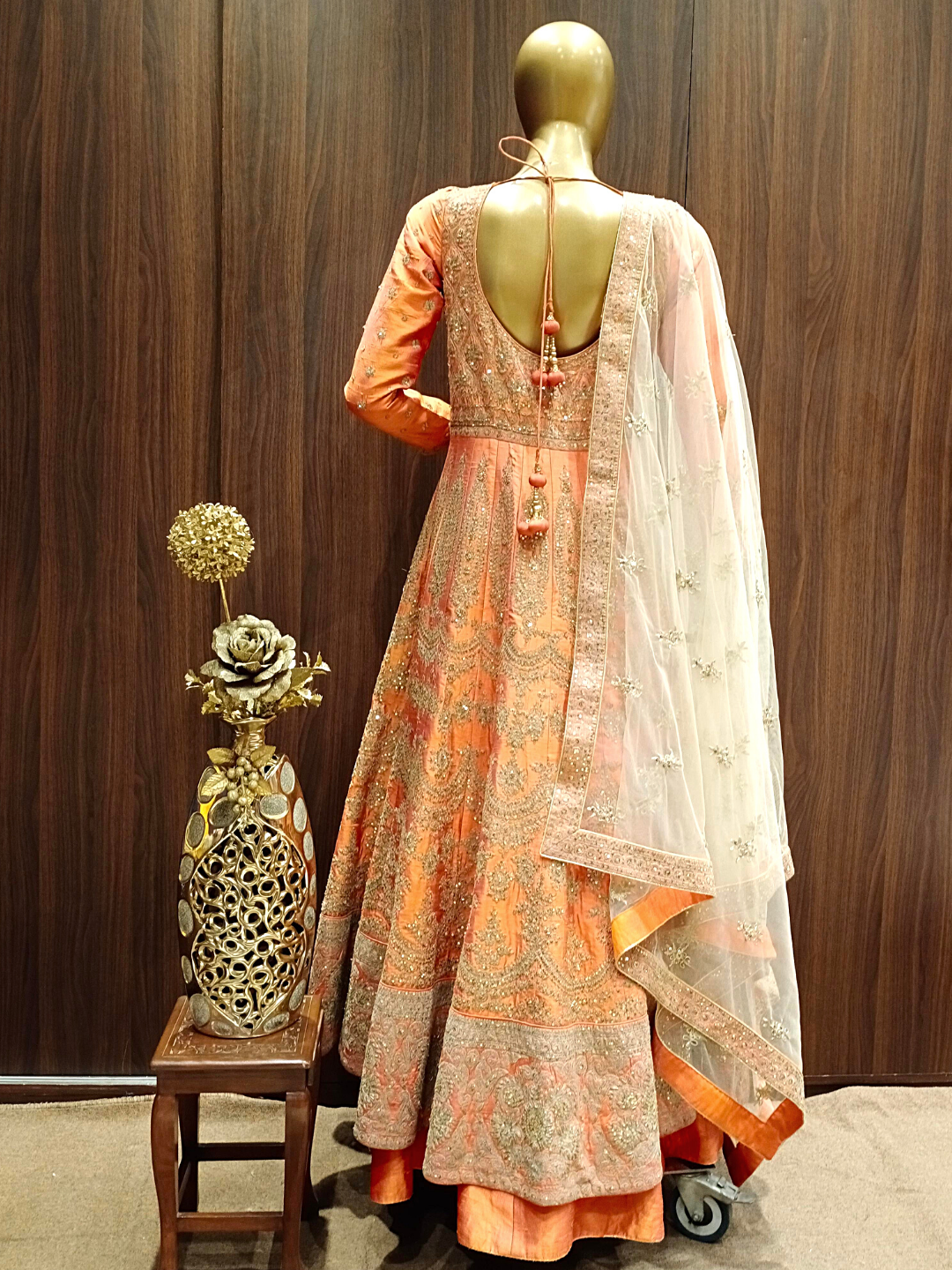 High Slit Anarkali Gown with Gold Zardozi Embroidery &Contrast Heavy Dupatta.