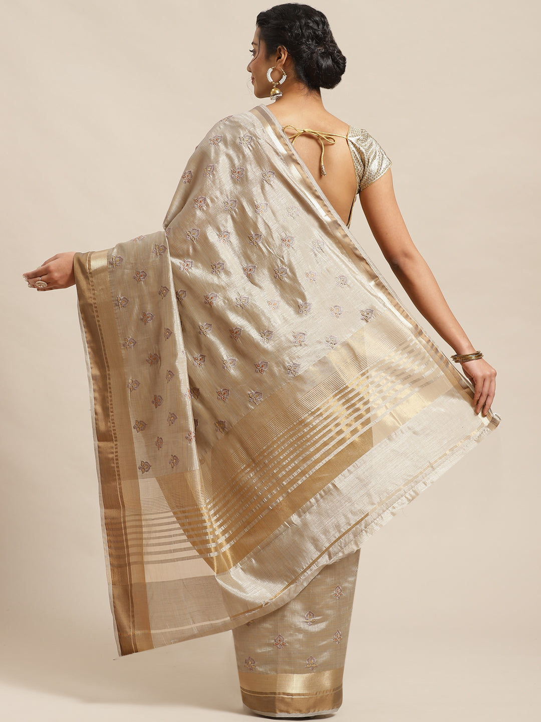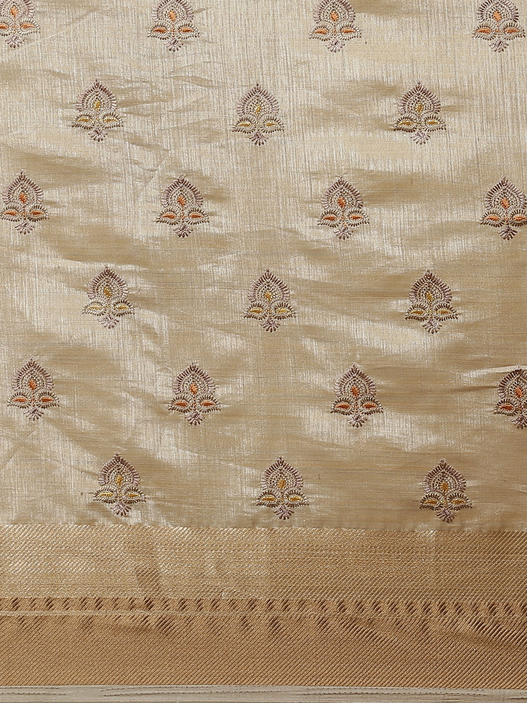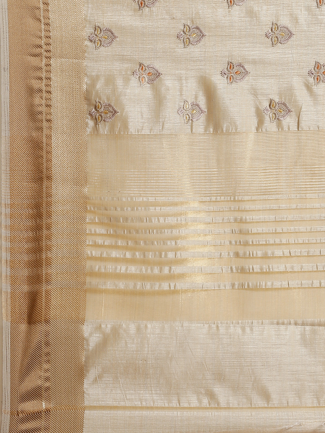 Handloom Chanderi Saree with Resham Embroidery intricate Floral Butas & Zari Ethnic Border