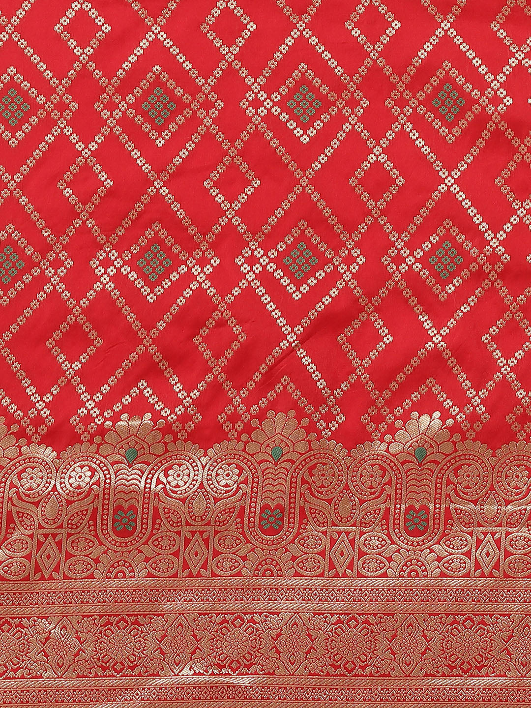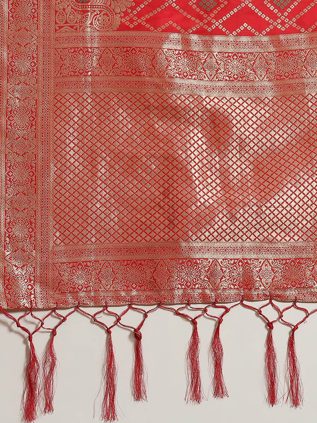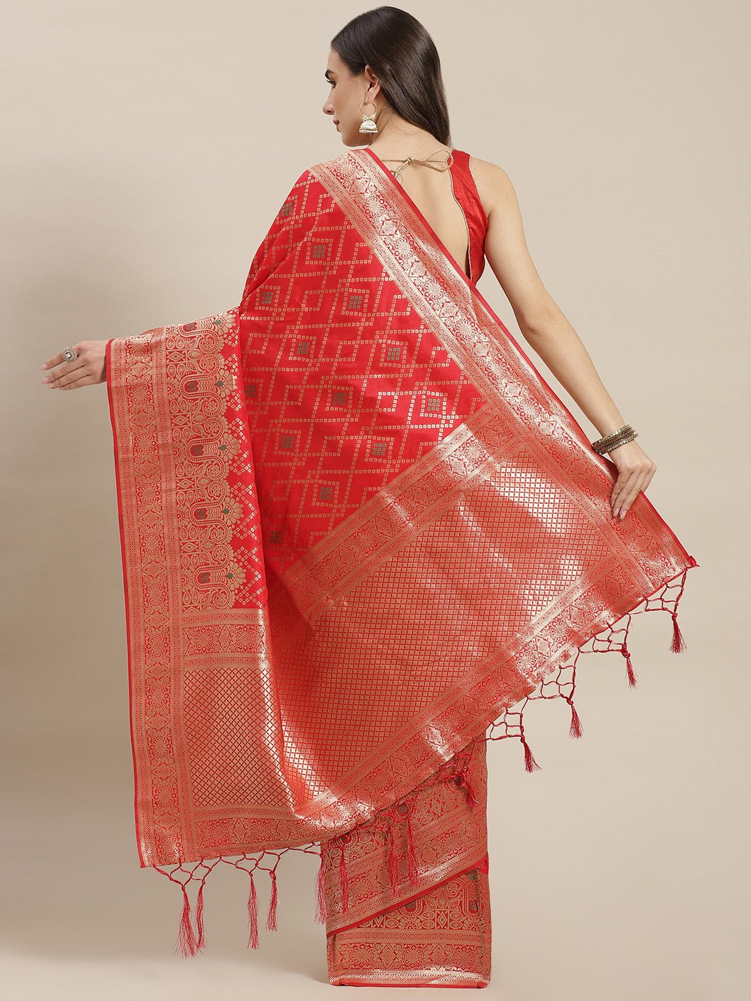 Red Ikat pattern Banarasi Saree with Resham & Zari Weaving