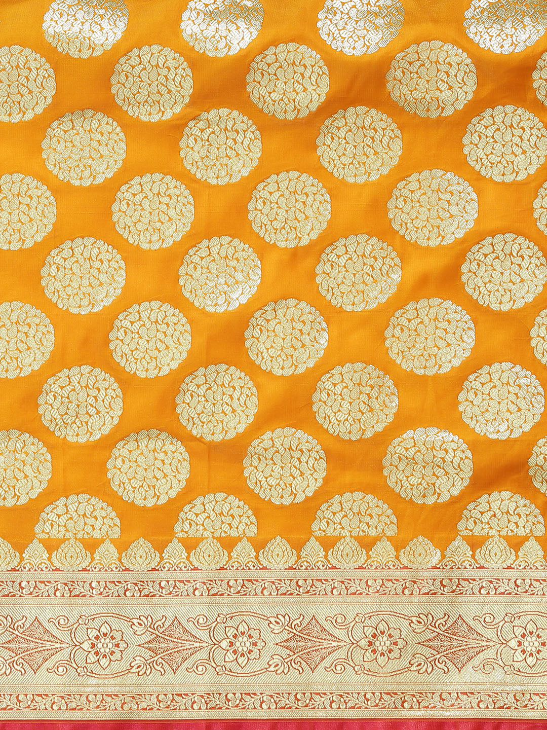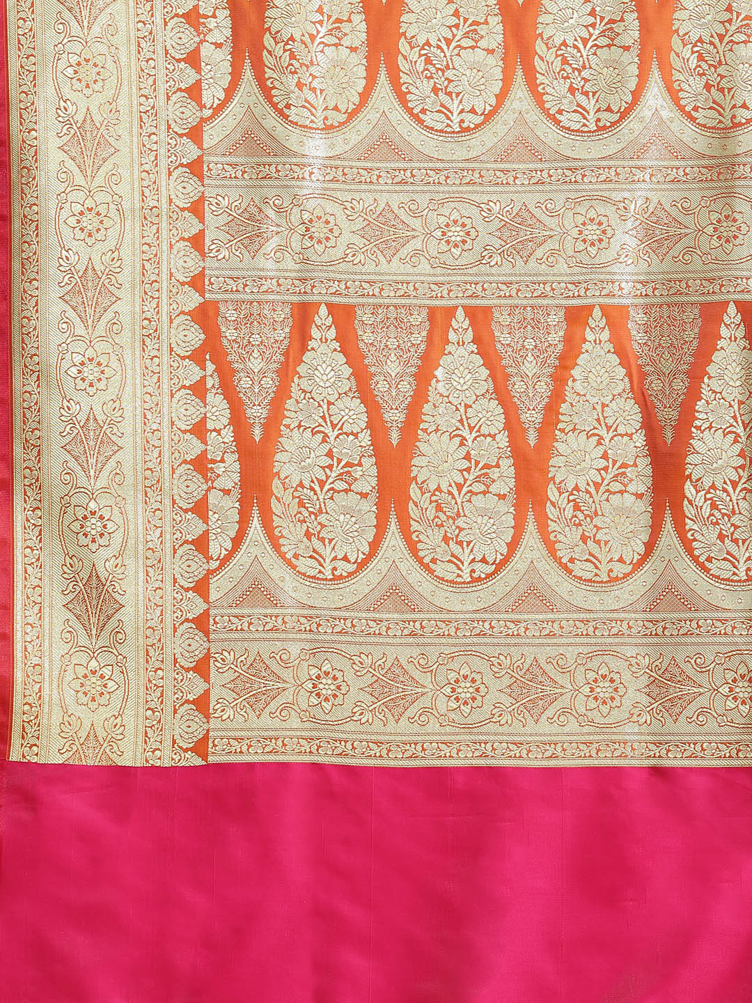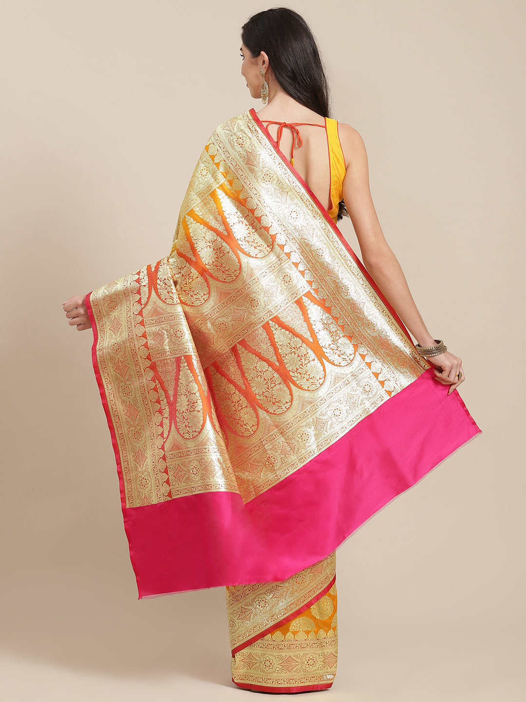 Mustard Kanjeevaram Wedding Silk Saree With Magenta Contrast Pallu