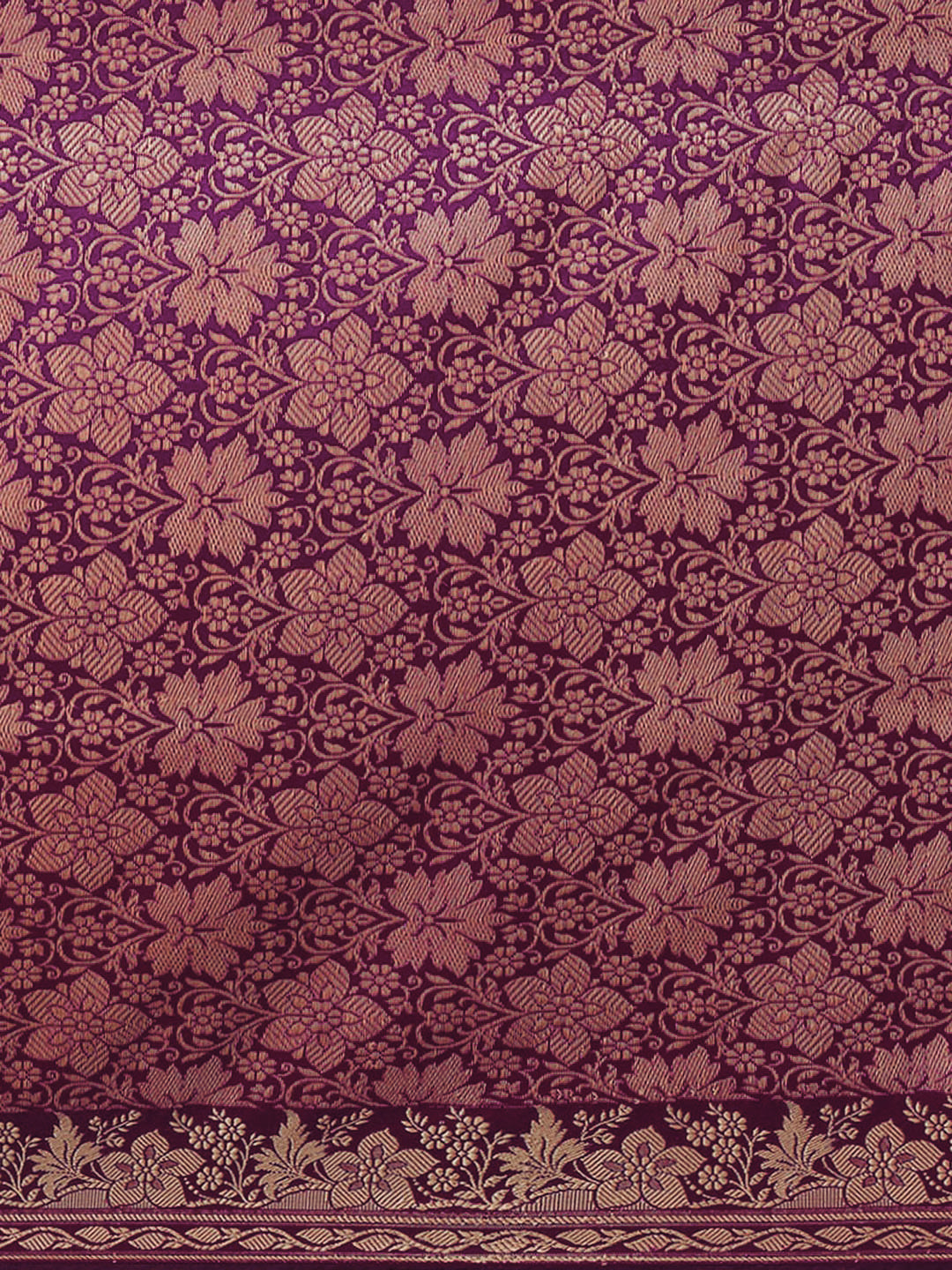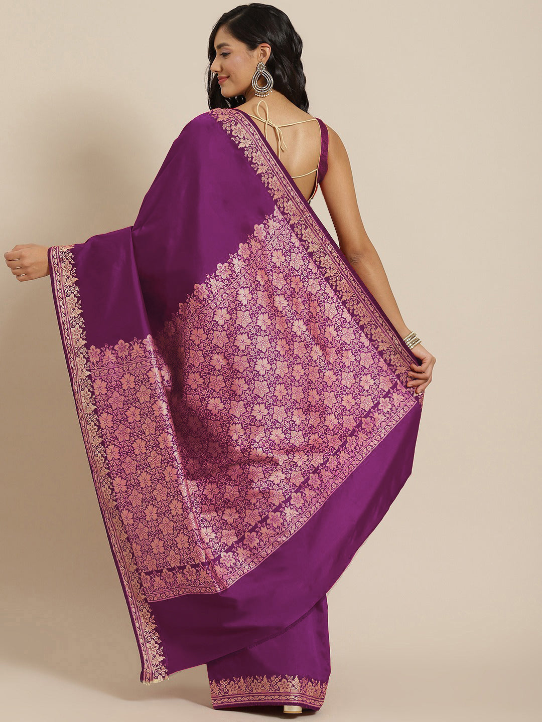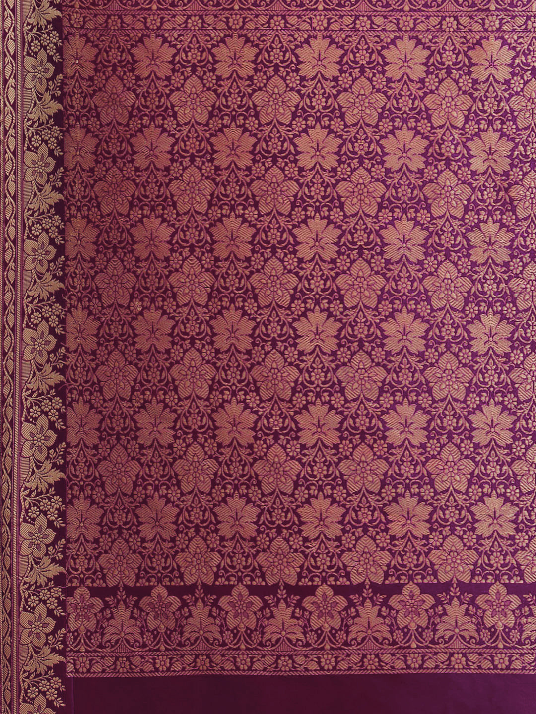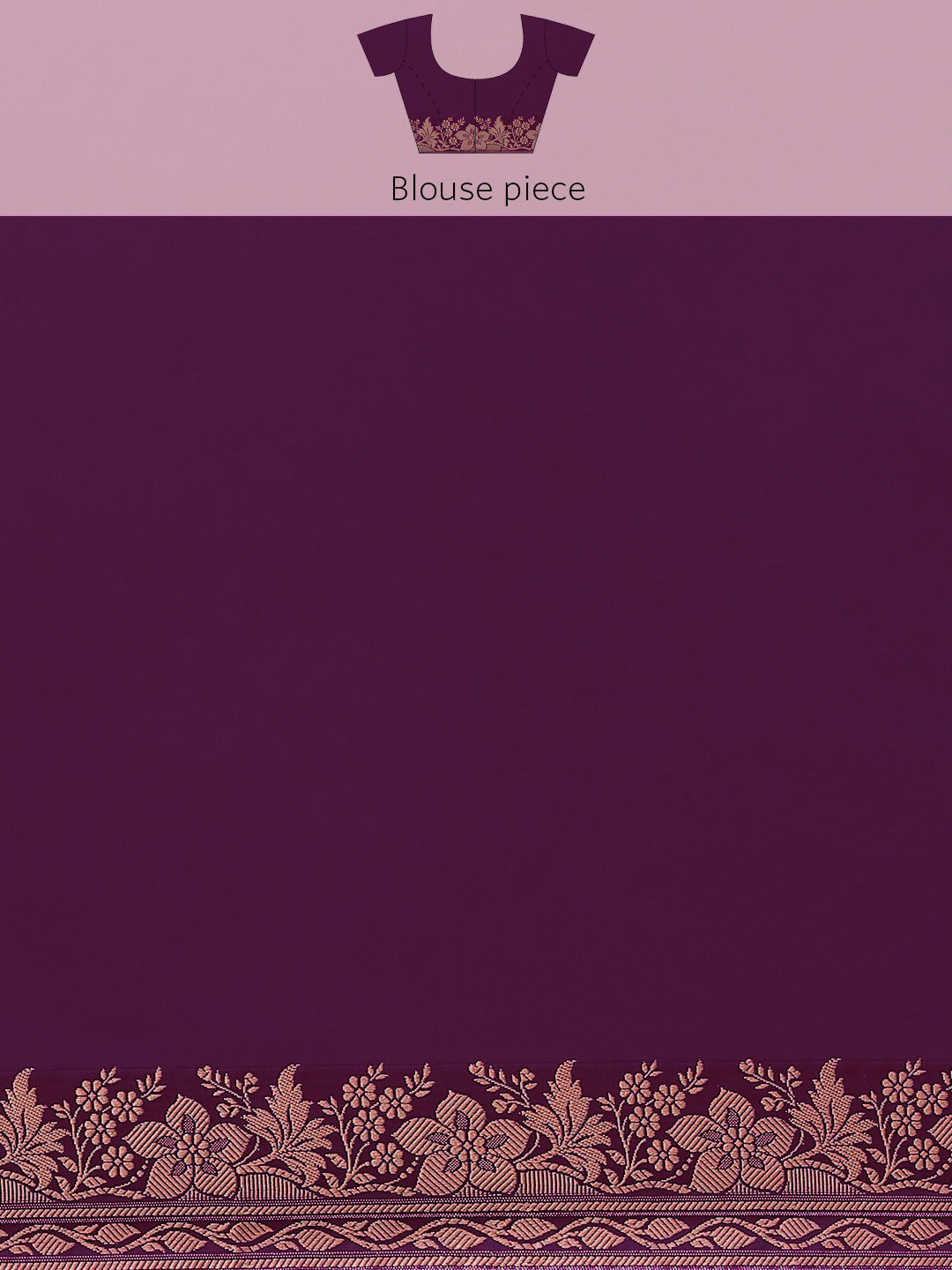 Deep Purple Solid Banarasi Silk Saree with Zari Woven Floral Border