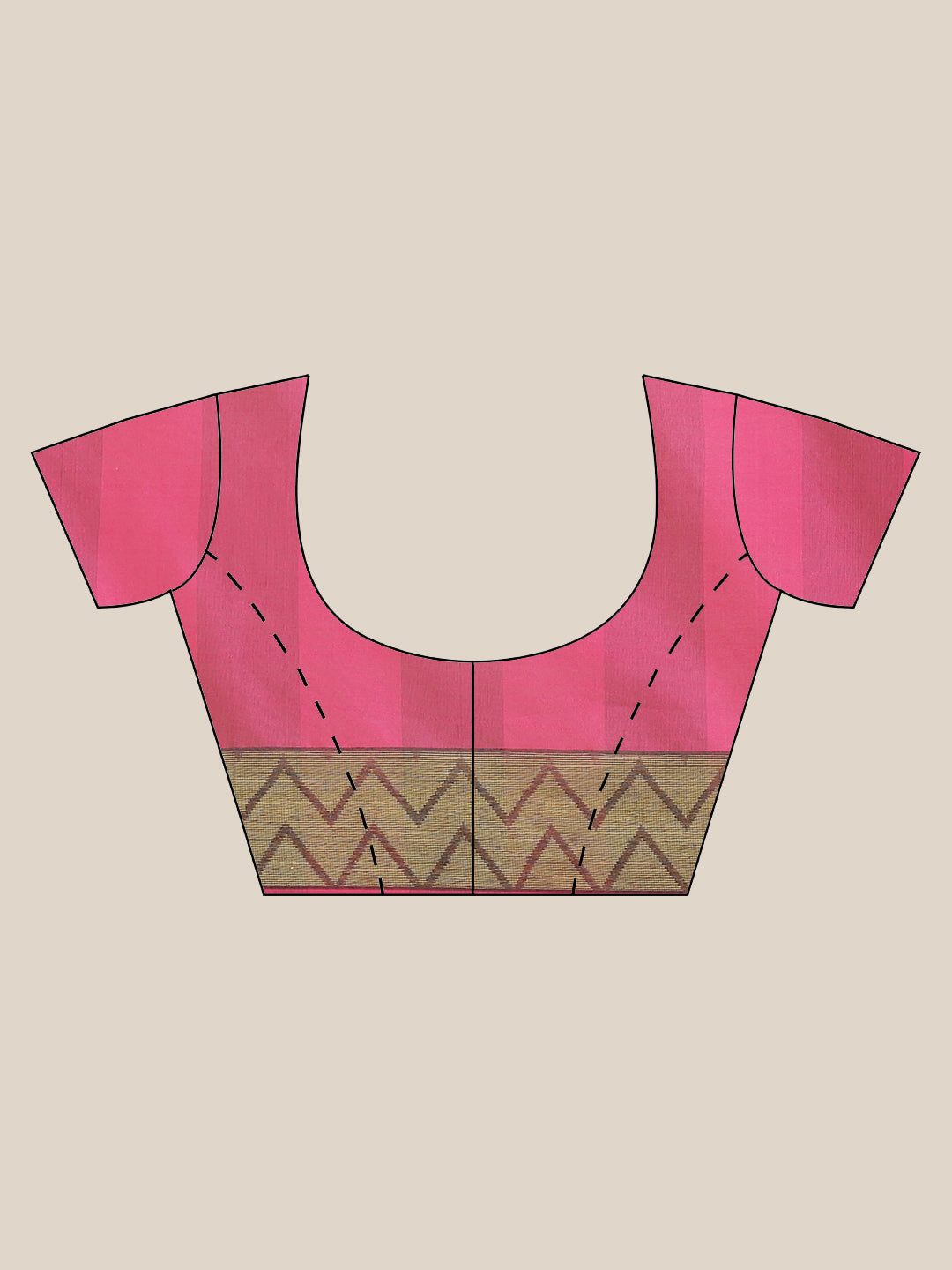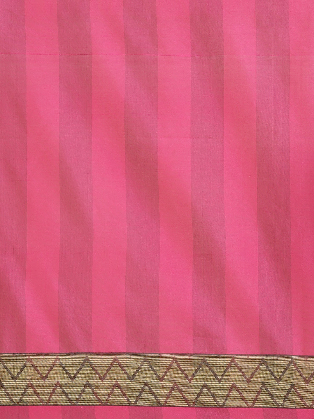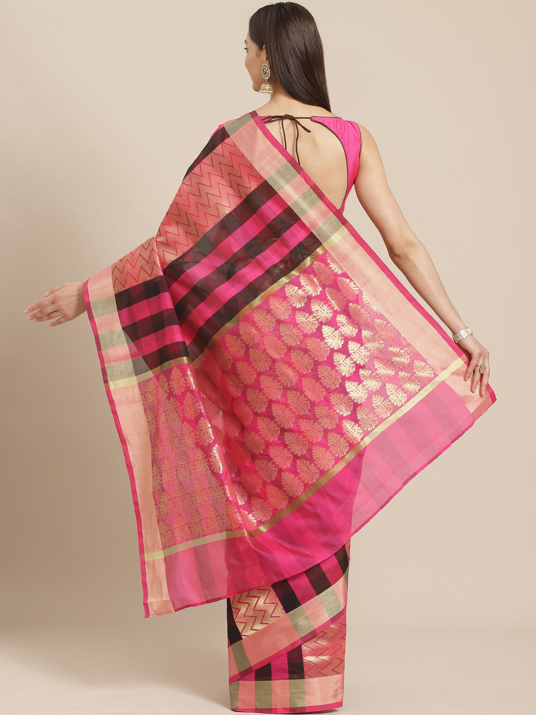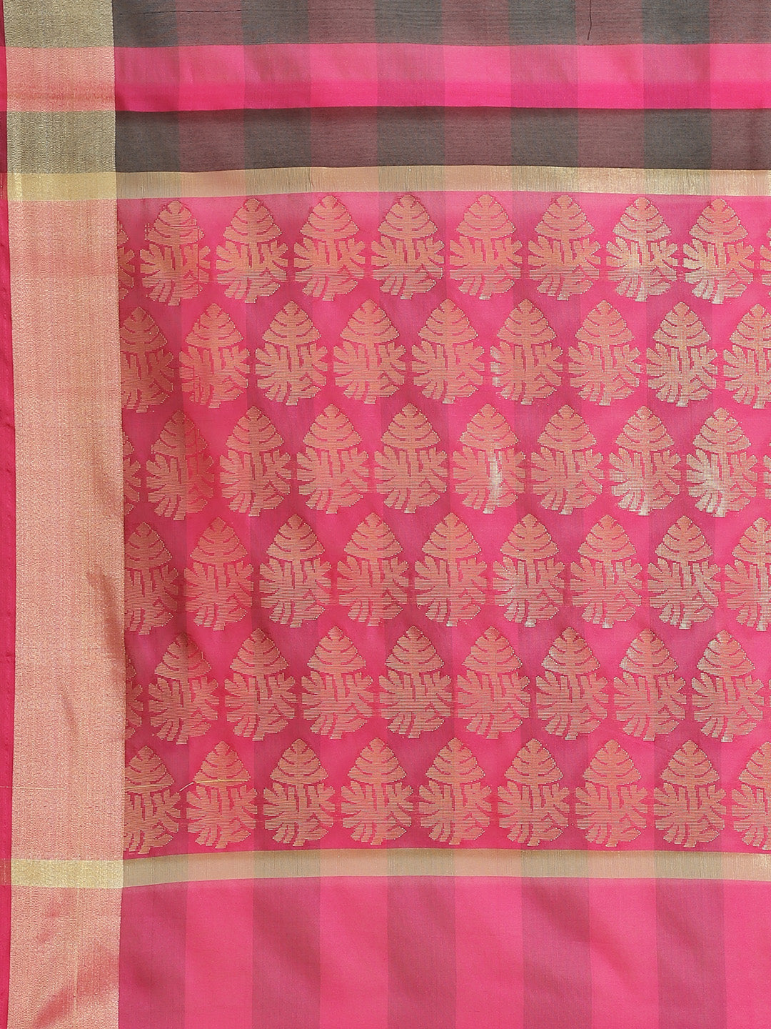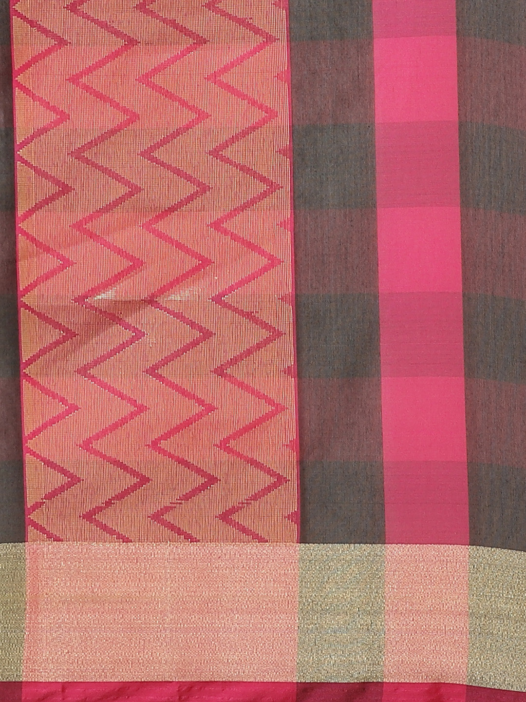 Mangalagiri Chanderi Silk Saree with Bright Pink Black Checkered pattern and Zari Pallu