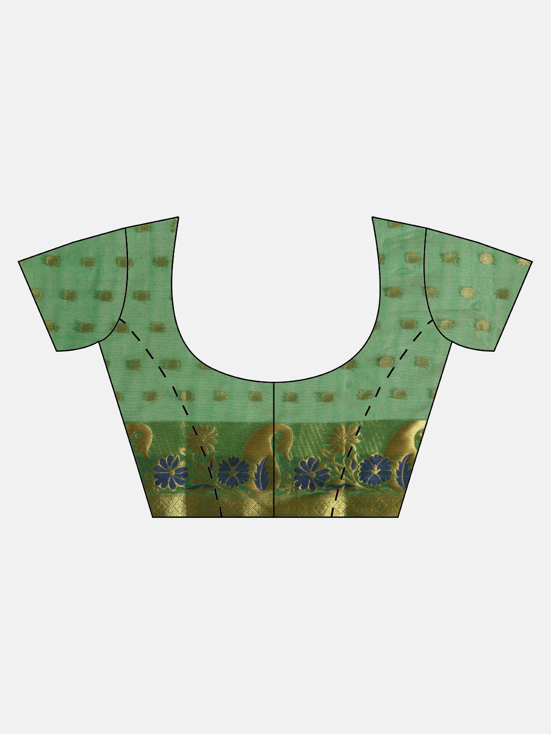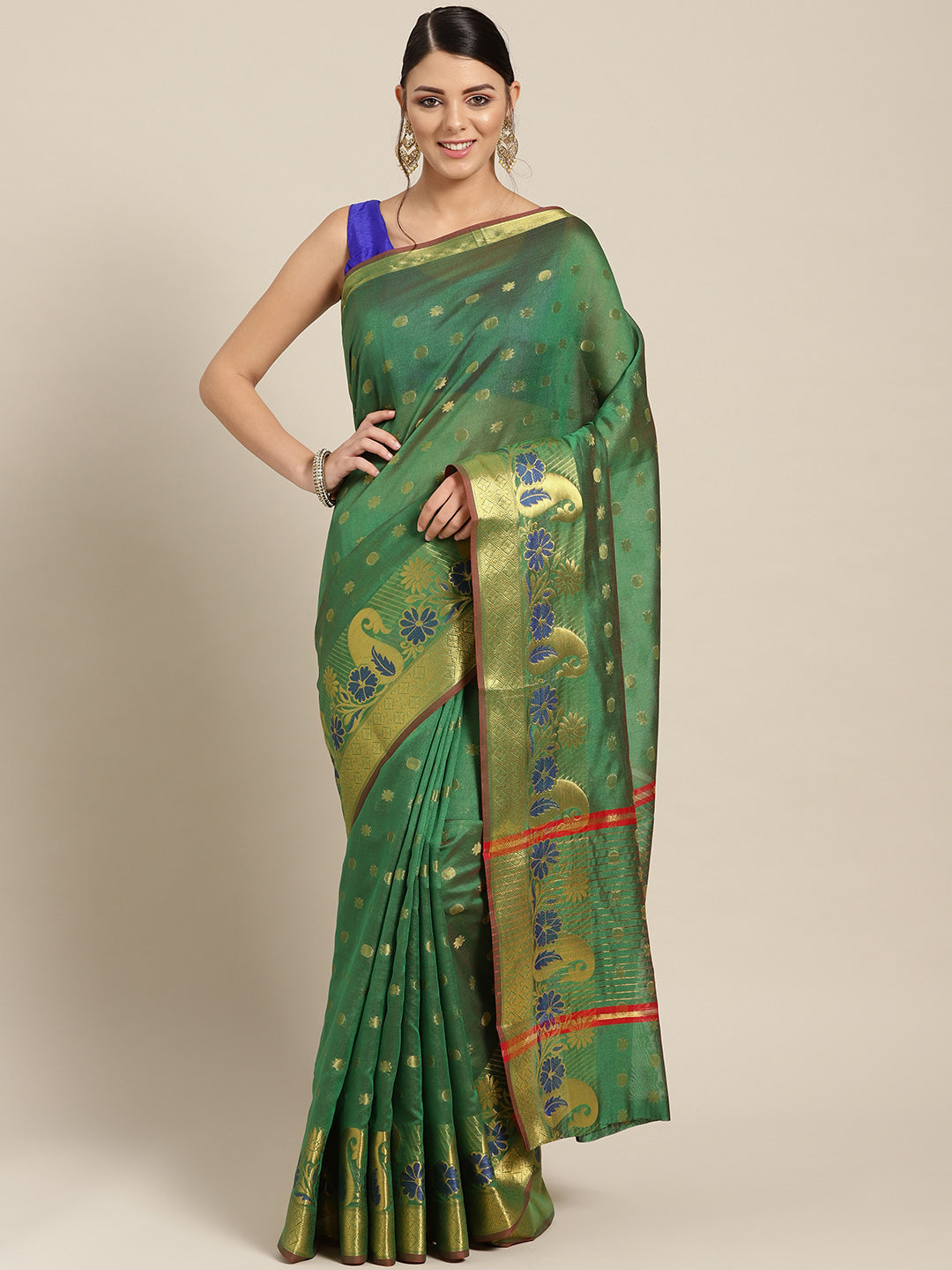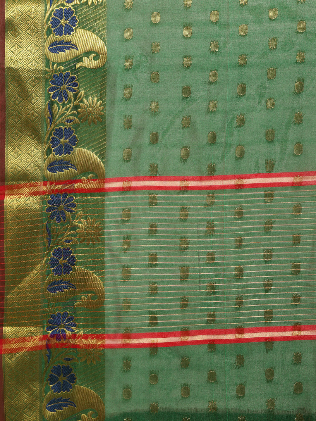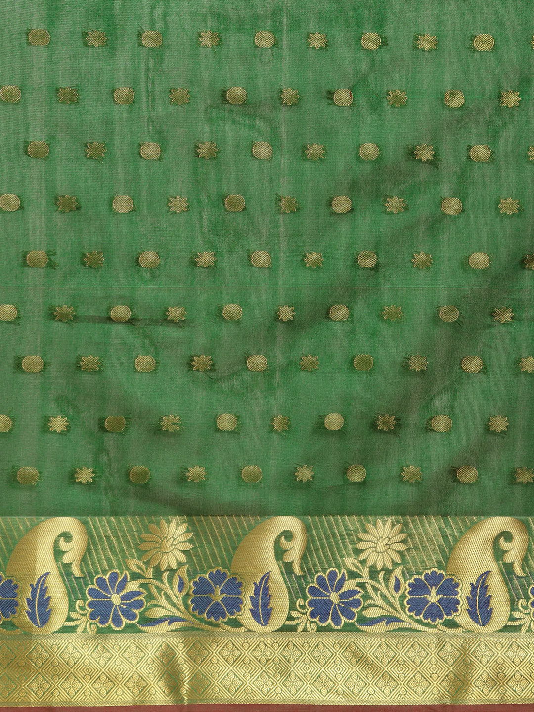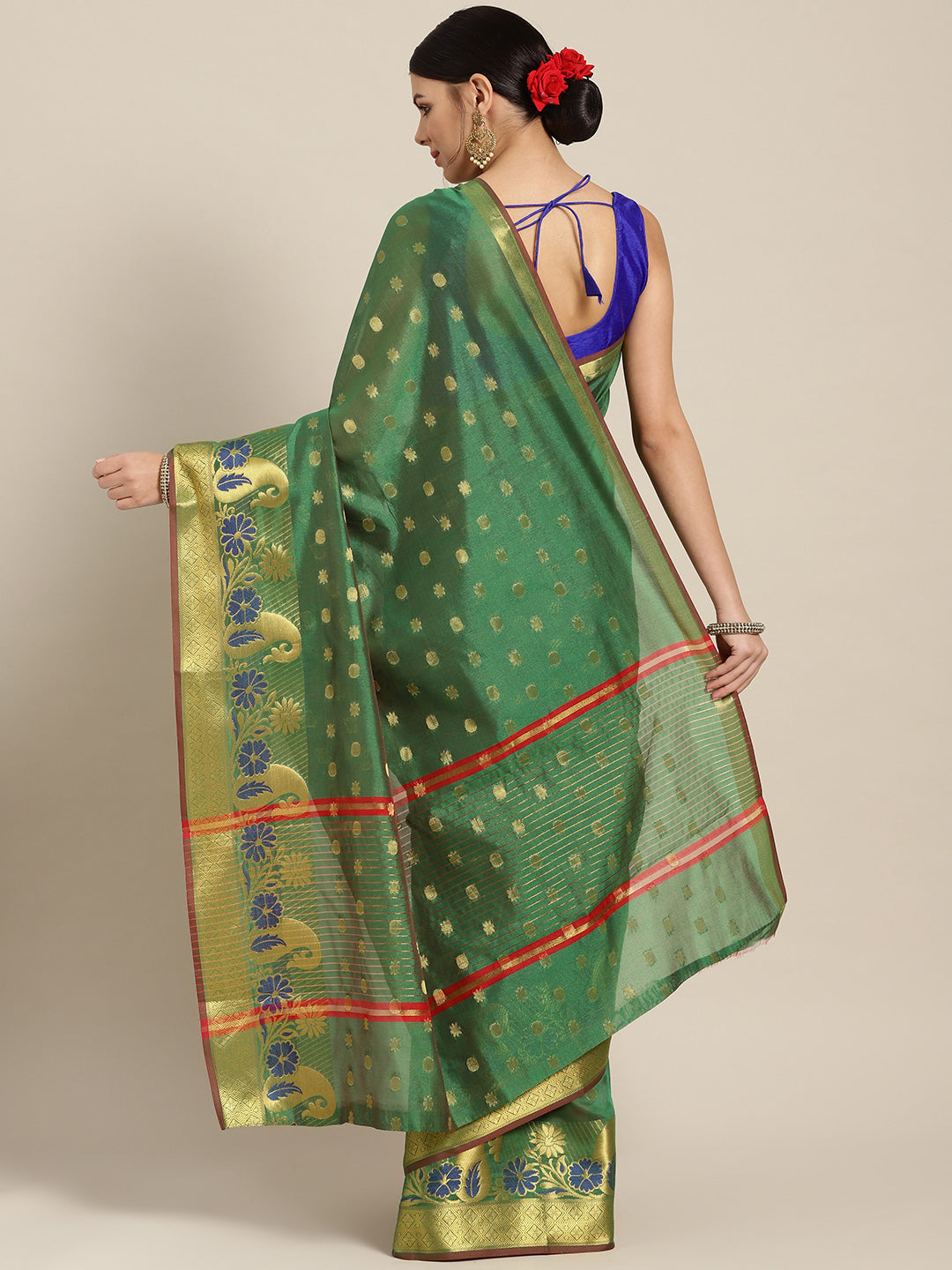 Chhabra 555 Green Chanderi Silk saree with Zari and Meenakari weaving in a paisley pattern