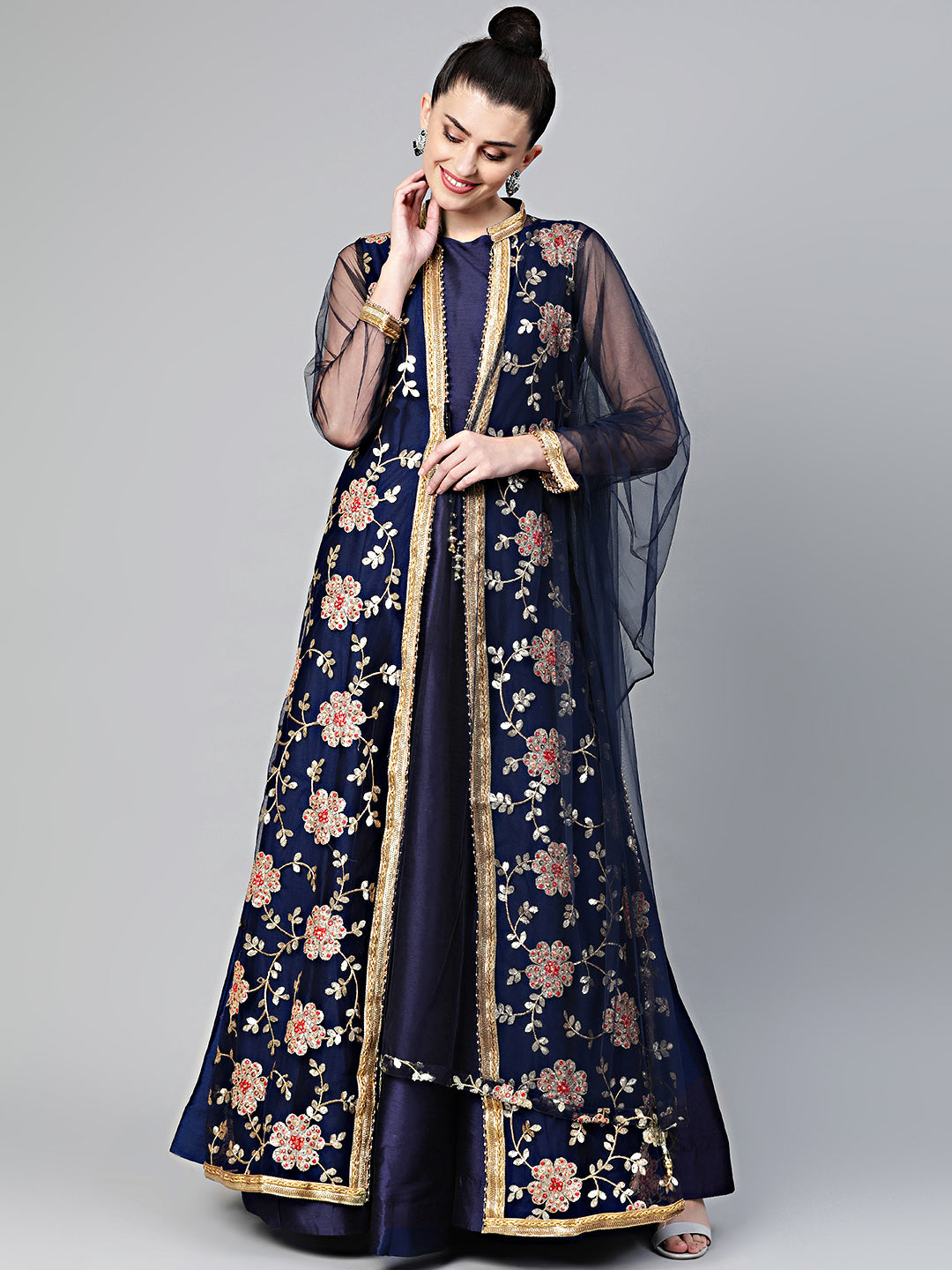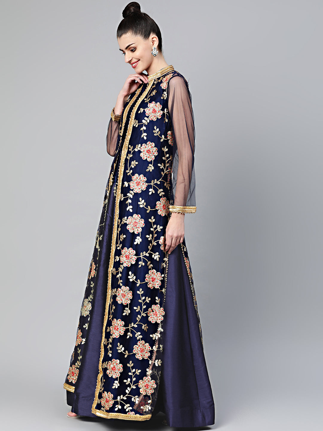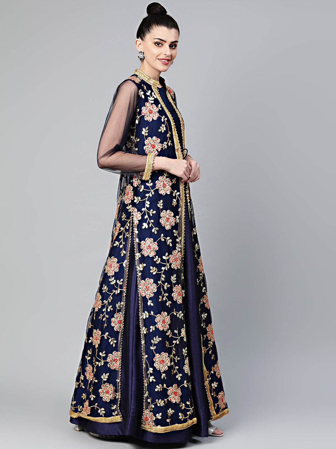 Three Piece Embroidered Jacket style Cocktail gown