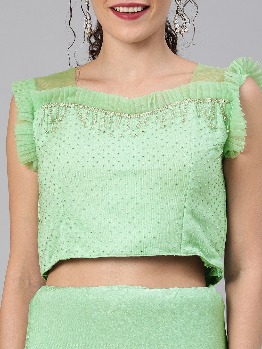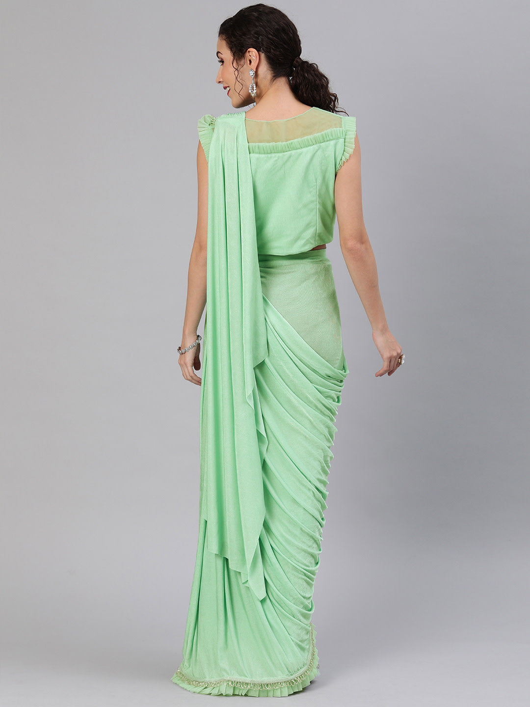 Ruffled Pre-Draped Lycra Cocktail Saree with Net Frills and Curtana Tassled Border