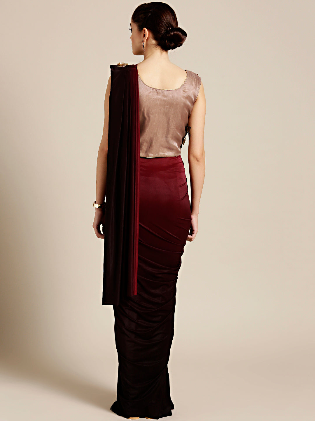 Draped Ruffled Pre-stitched Saree with Embellished Floral Crop Top Blouse