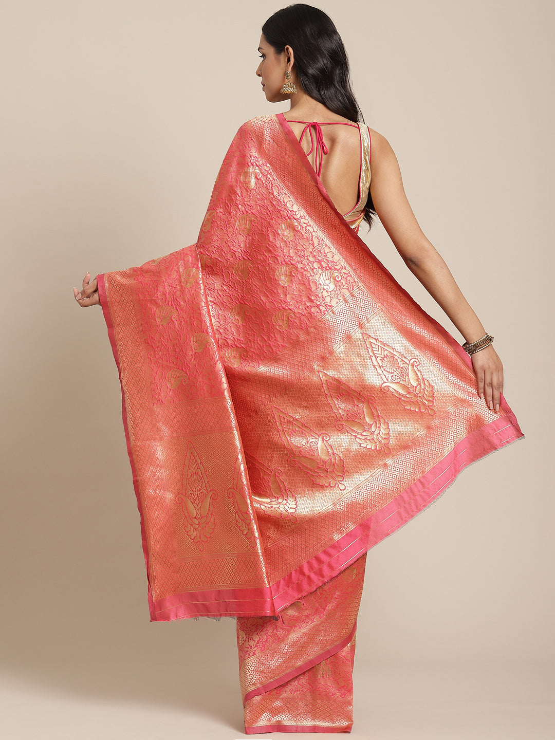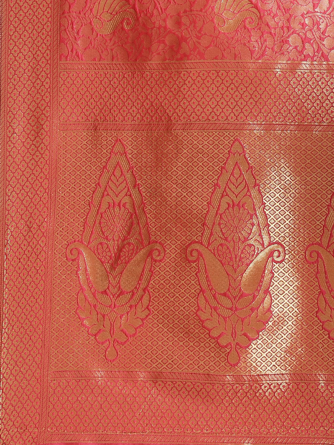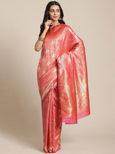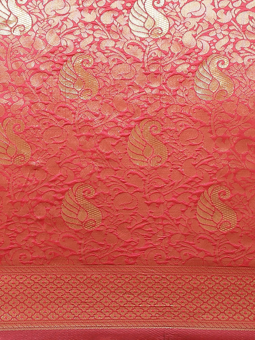 Banarasi Handloom Silk Saree with Gold Oxidised Zari Woven Paisleys in a rich jaal