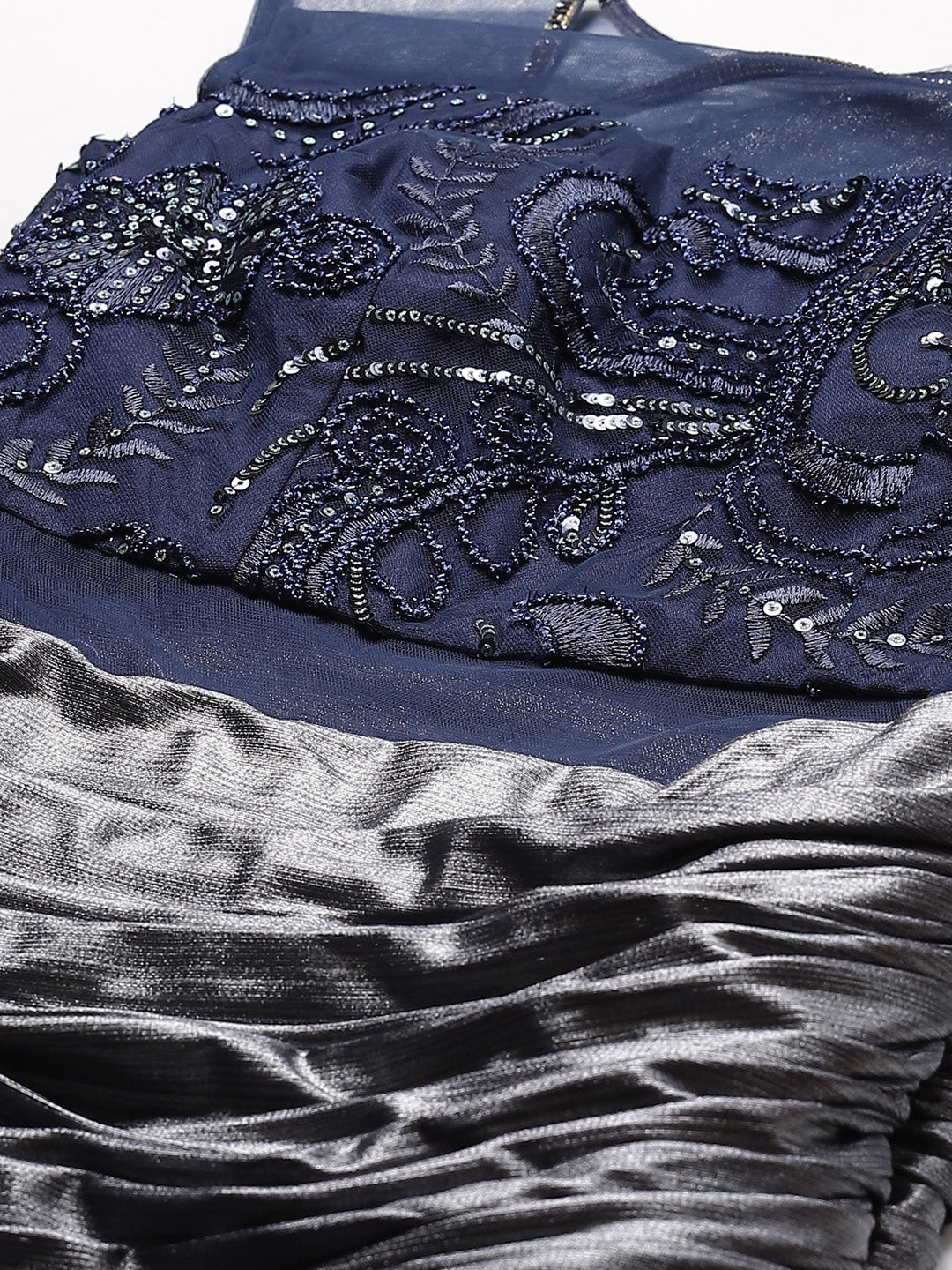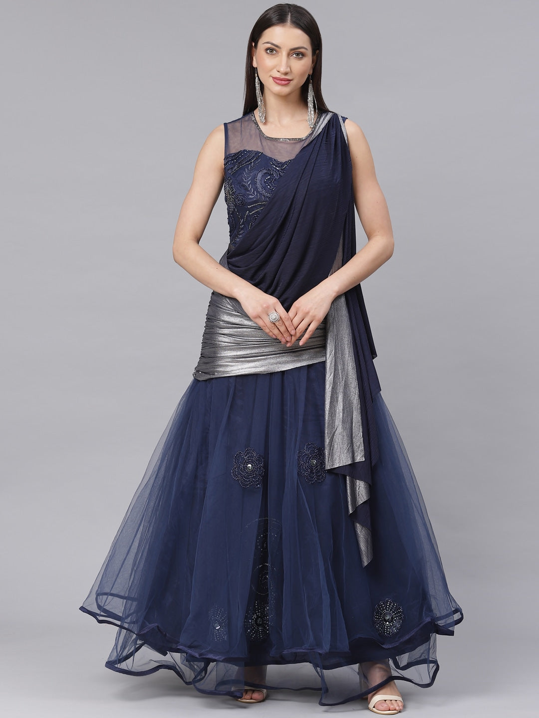 Made to Measure Embellished Sequinned Cocktail Gown with Draped Attached Dupatta