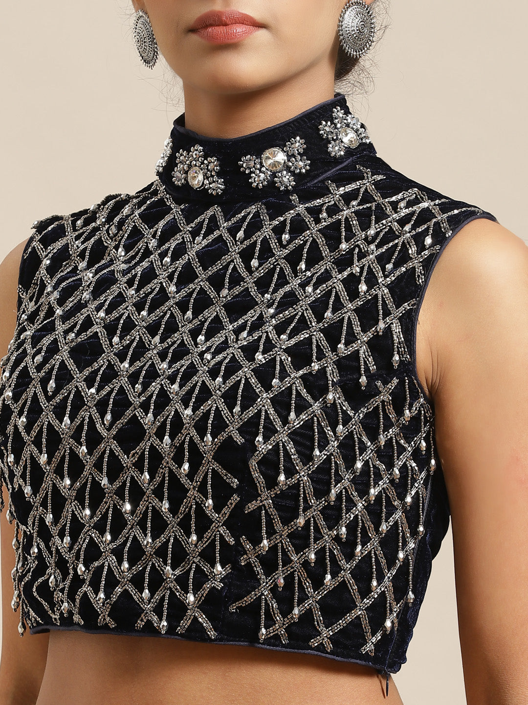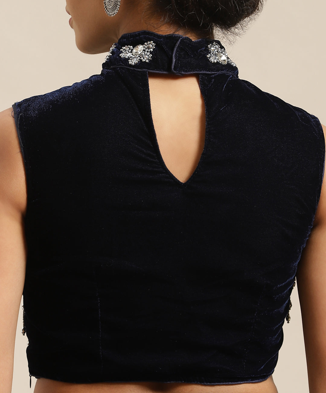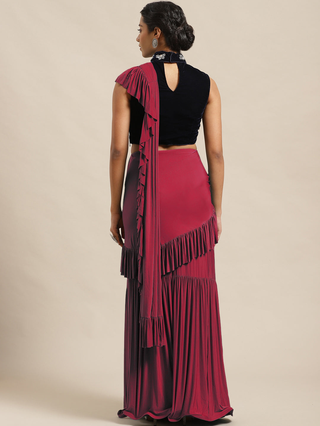 Magenta Pink Ruffles Pre-Draped Lycra Saree with Frills and Embroidered Velvet Blouse