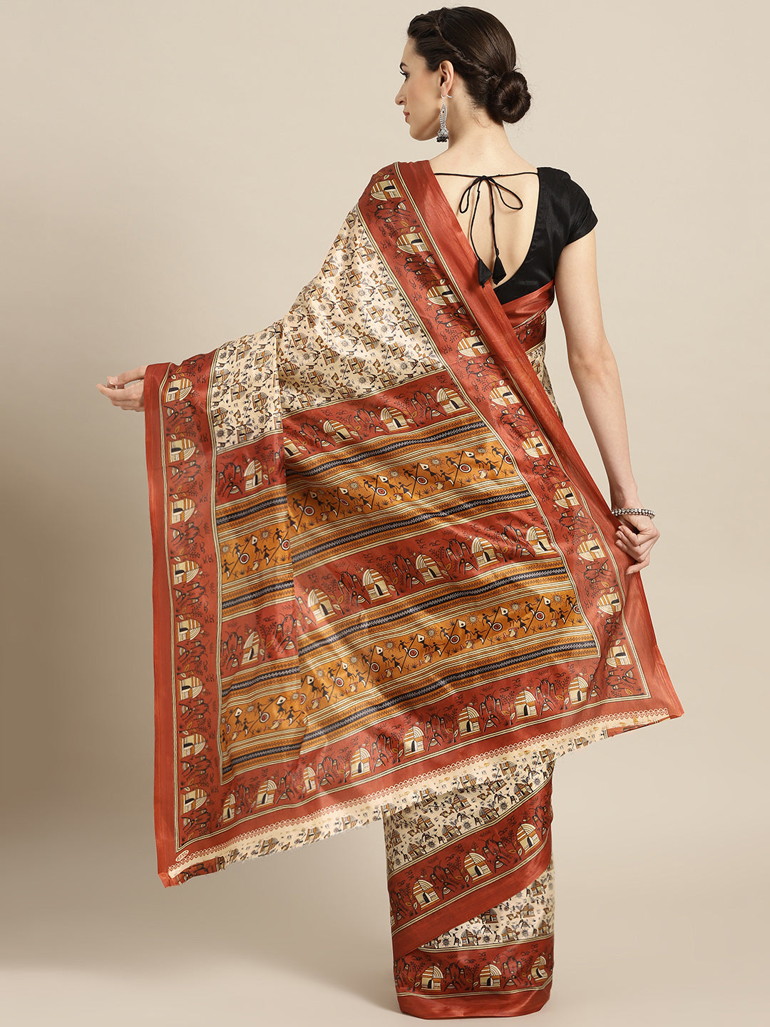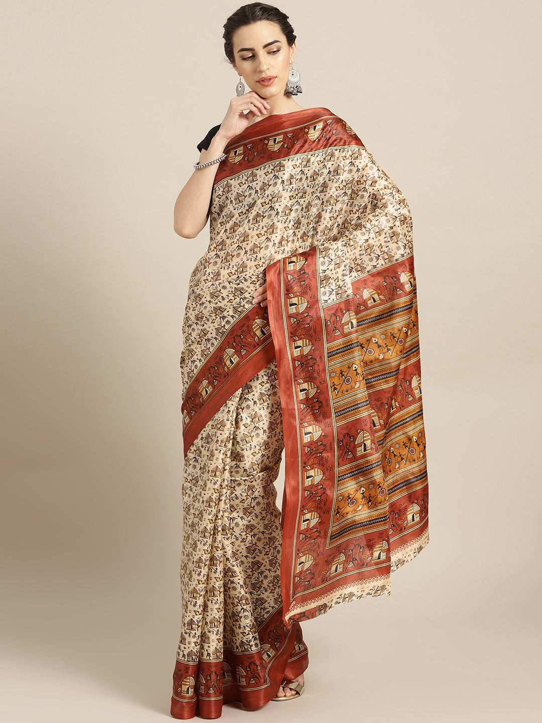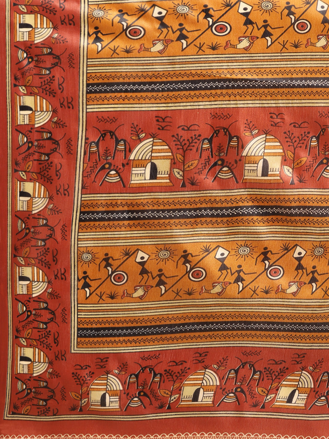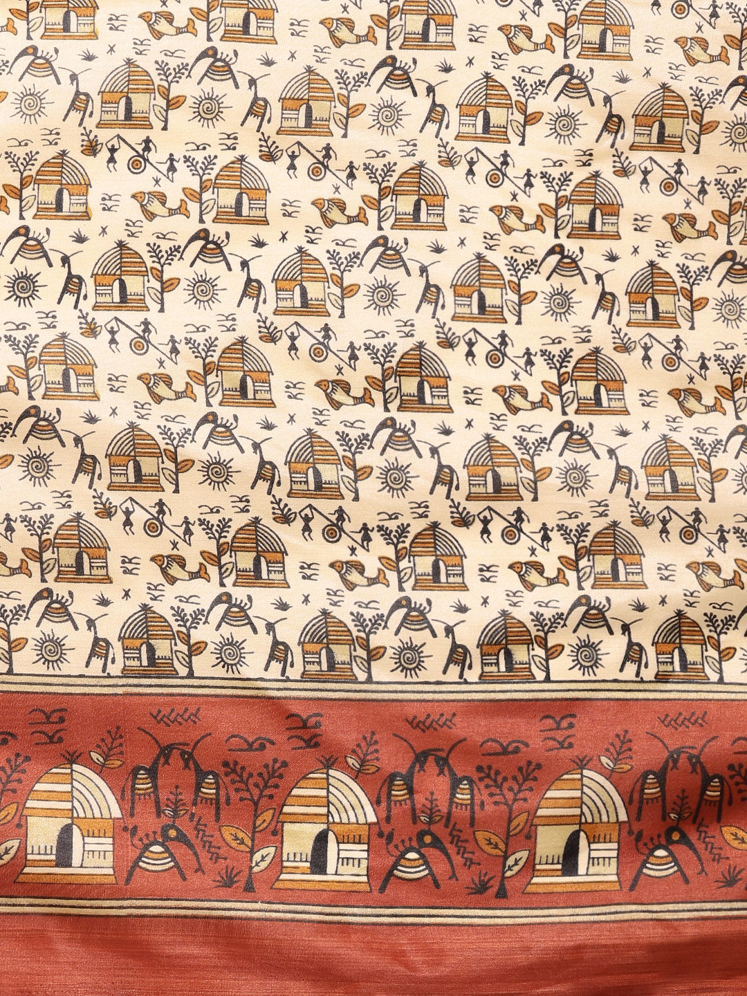 Tribal Inspired Printed Bhagalpuri Saree with Animal and Stick Figurines