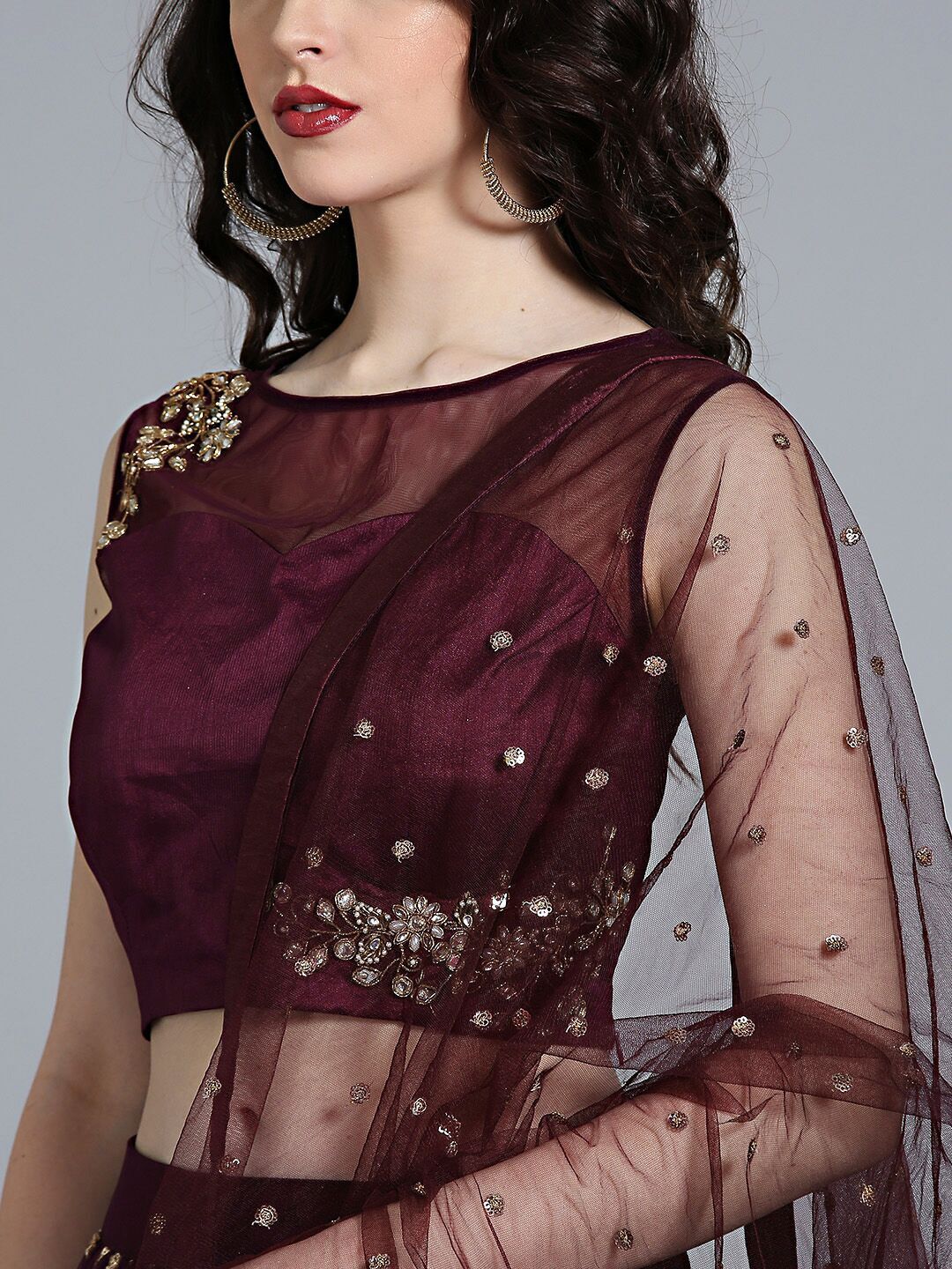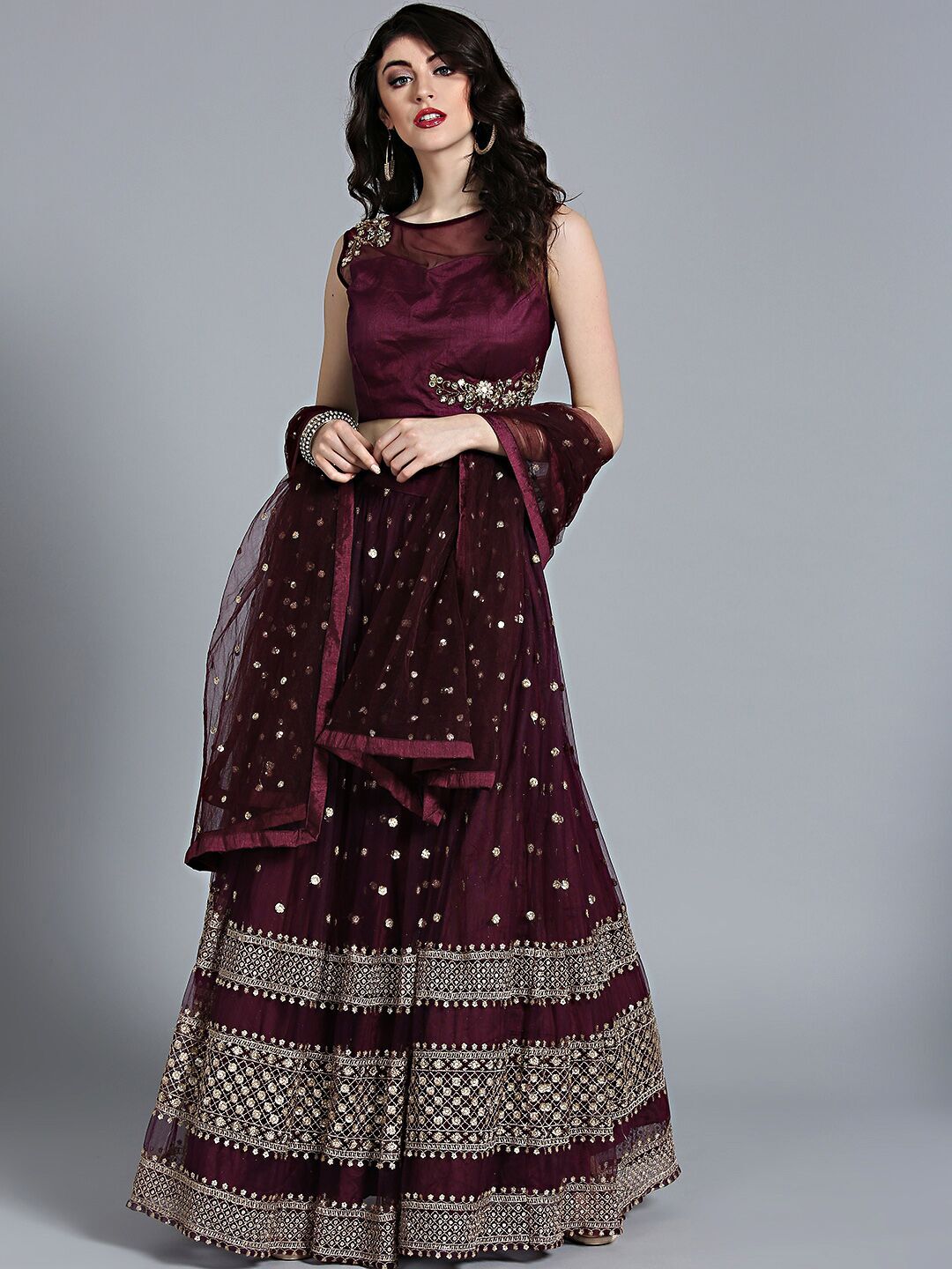 Resham Chikankari Lehenga with Kundan Embellished Crop Top