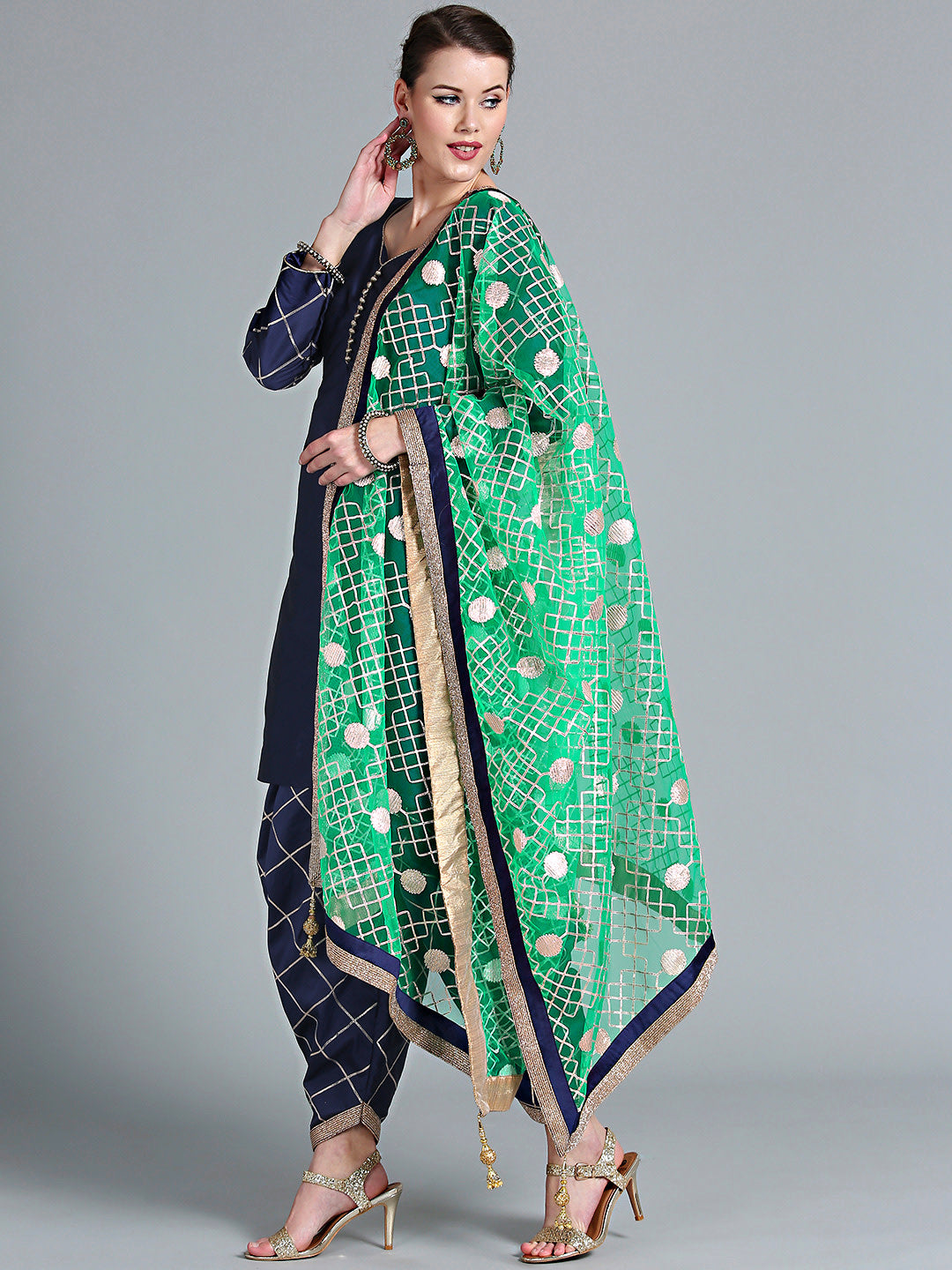 Chhabra 555 Made-to-Measure Blue Gota Patti Kurta Set with Embroidered Patiala Salwar & Teal Dupatta