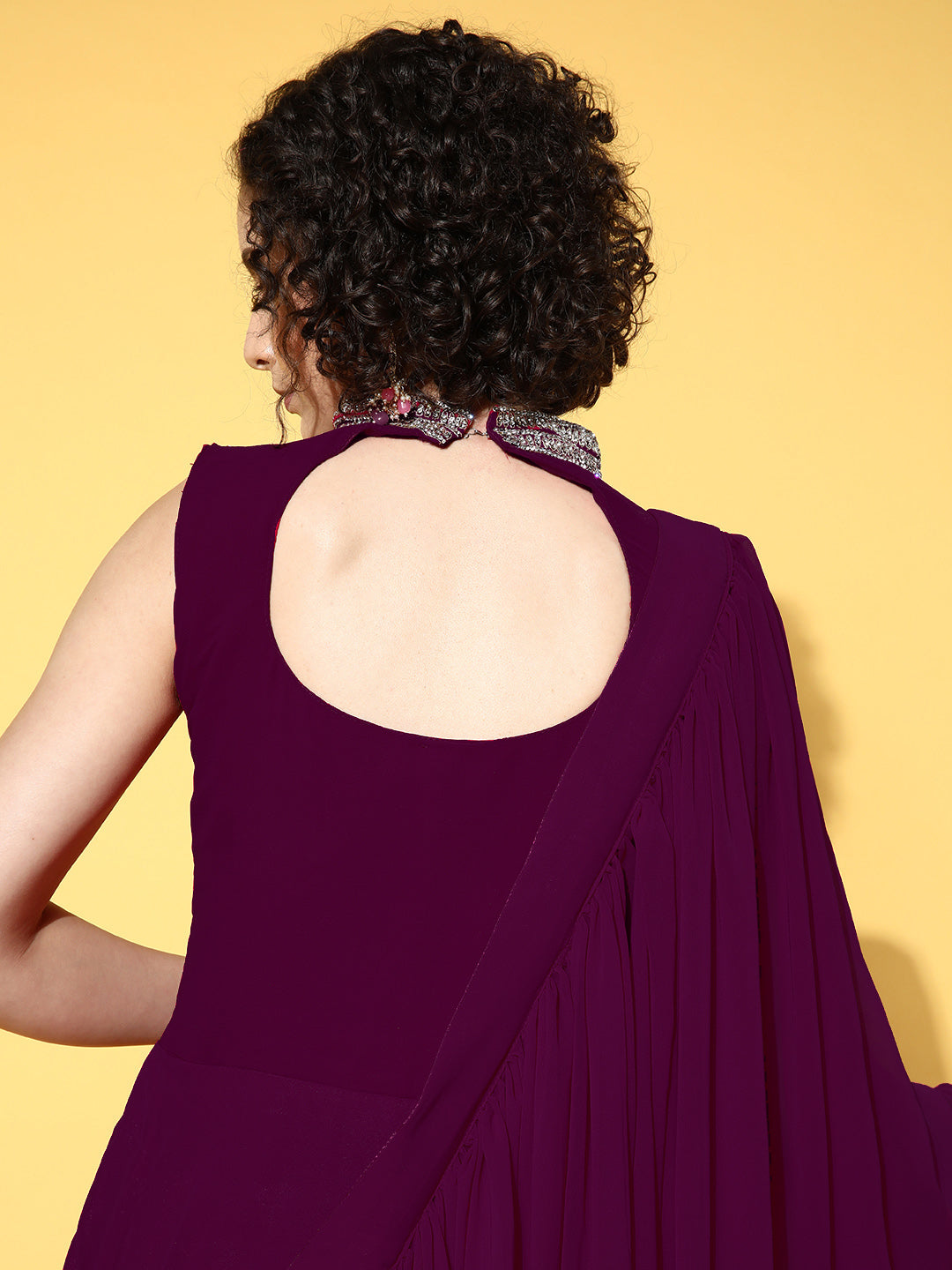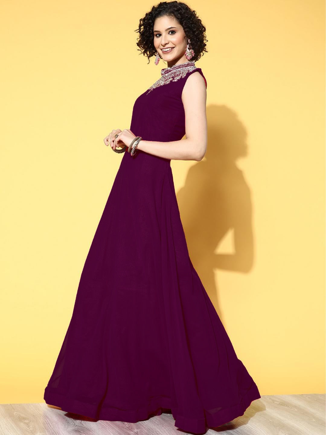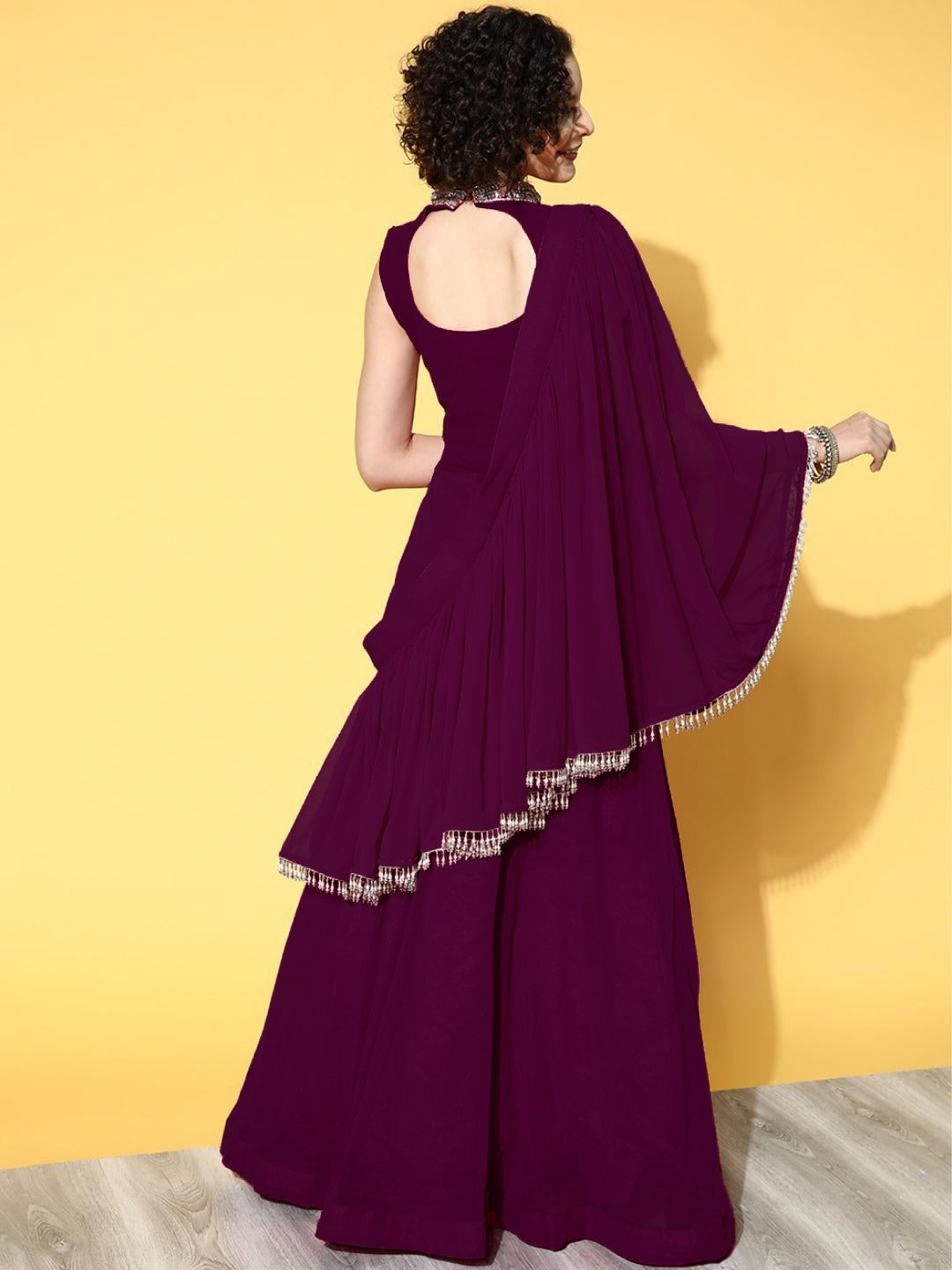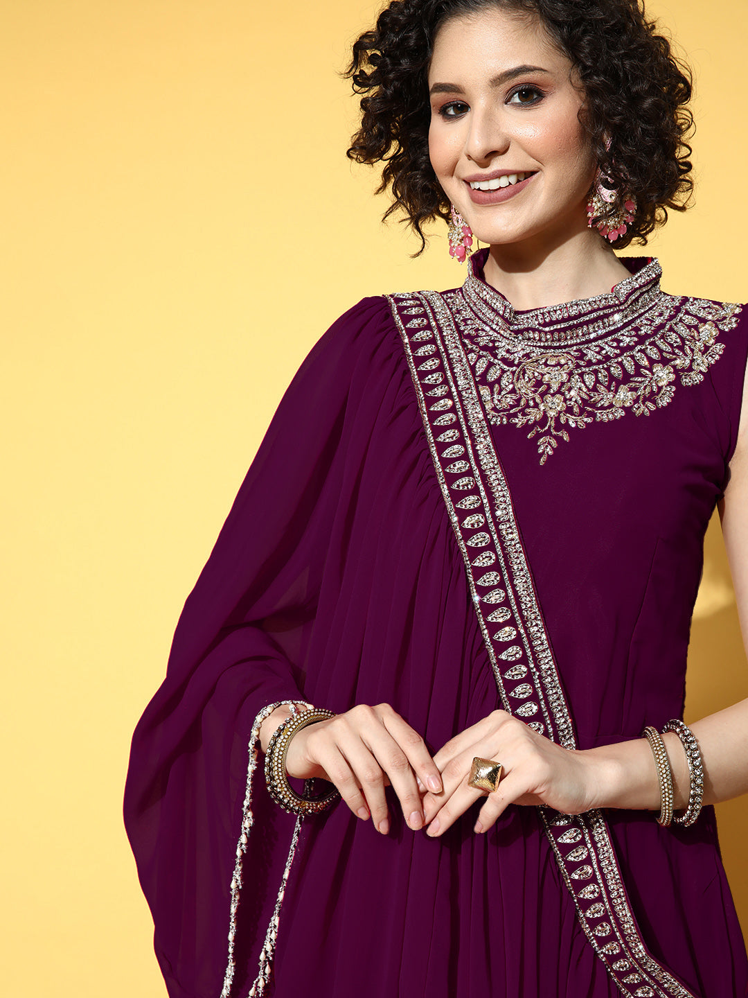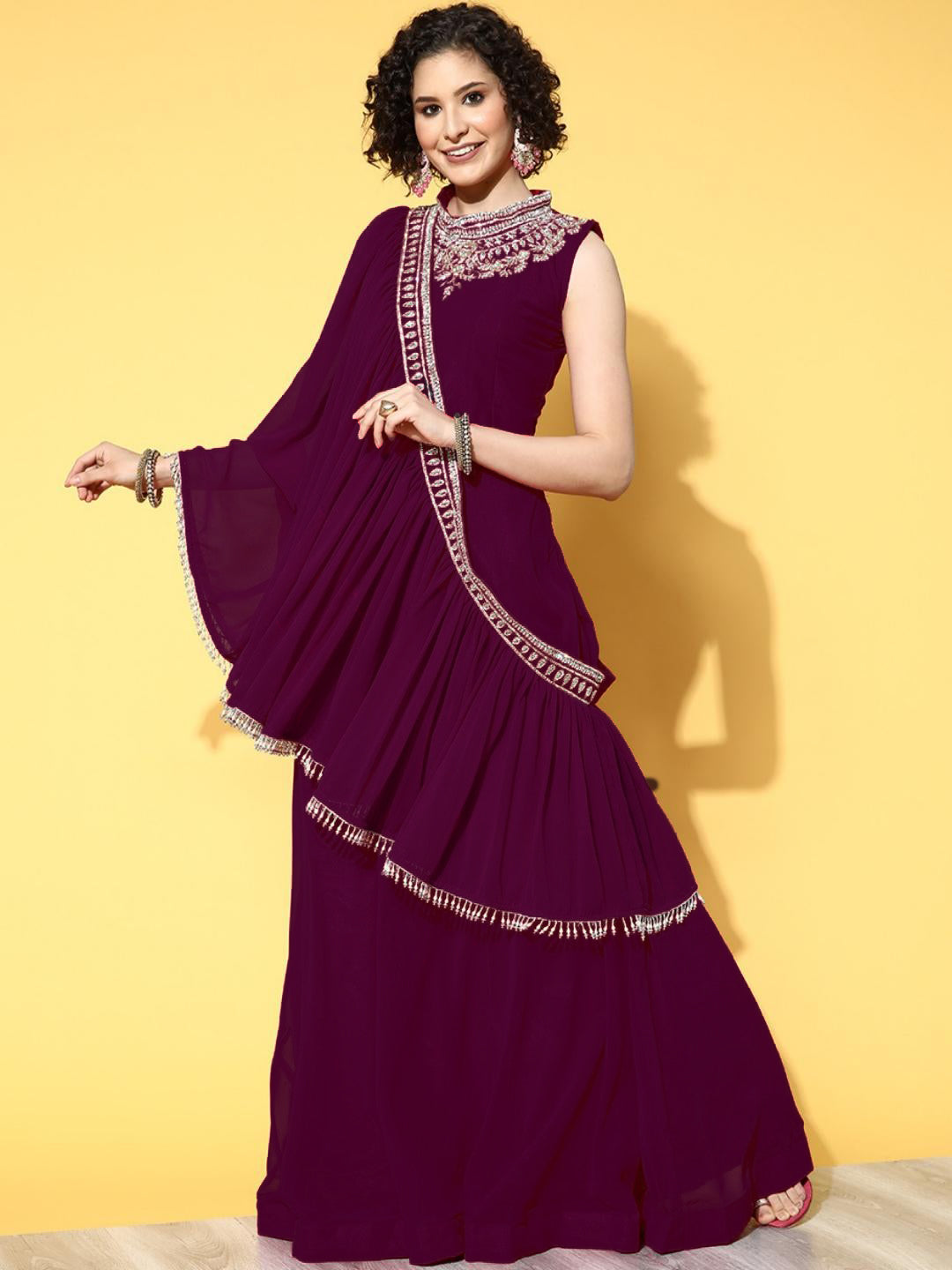 Zircon Embroidered Flared Cocktail Gown with Pre Draped Dupatta