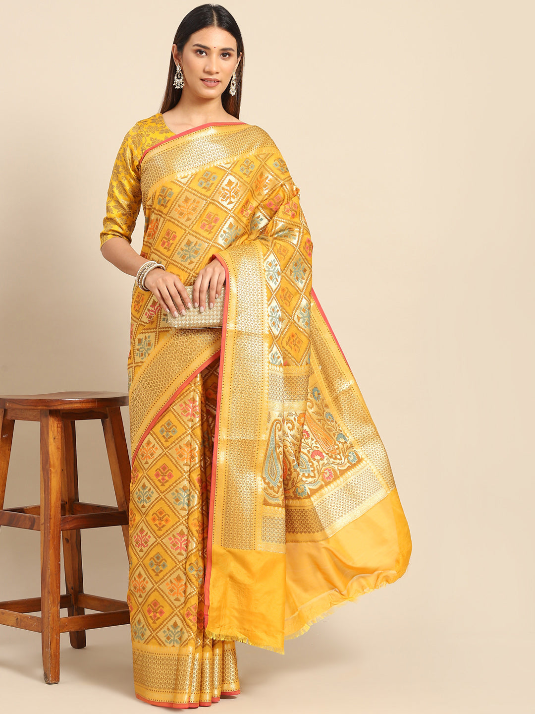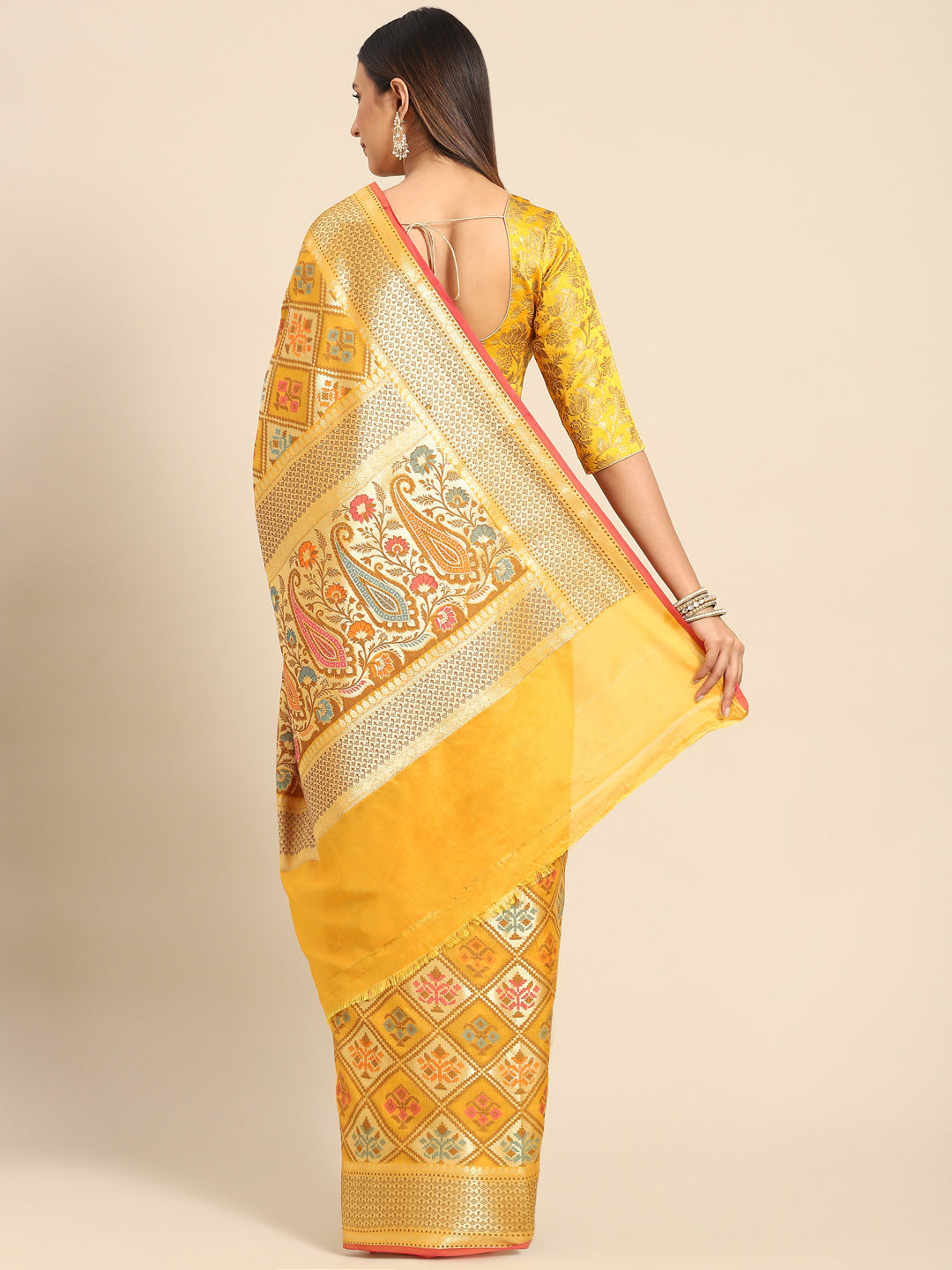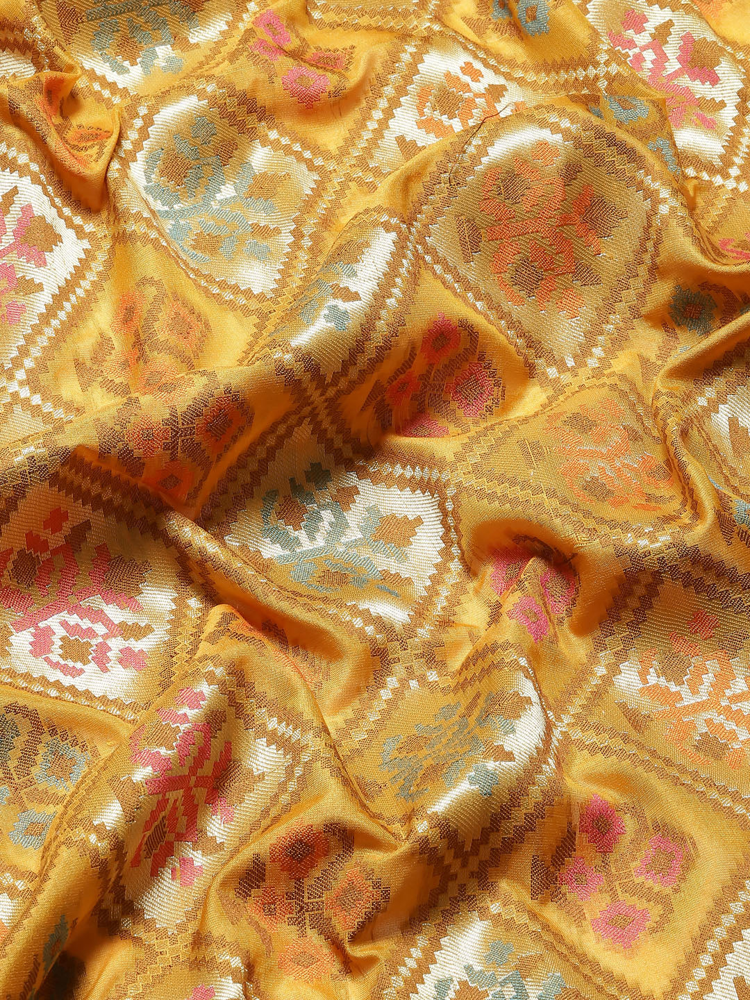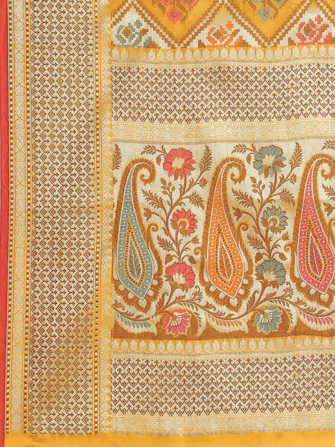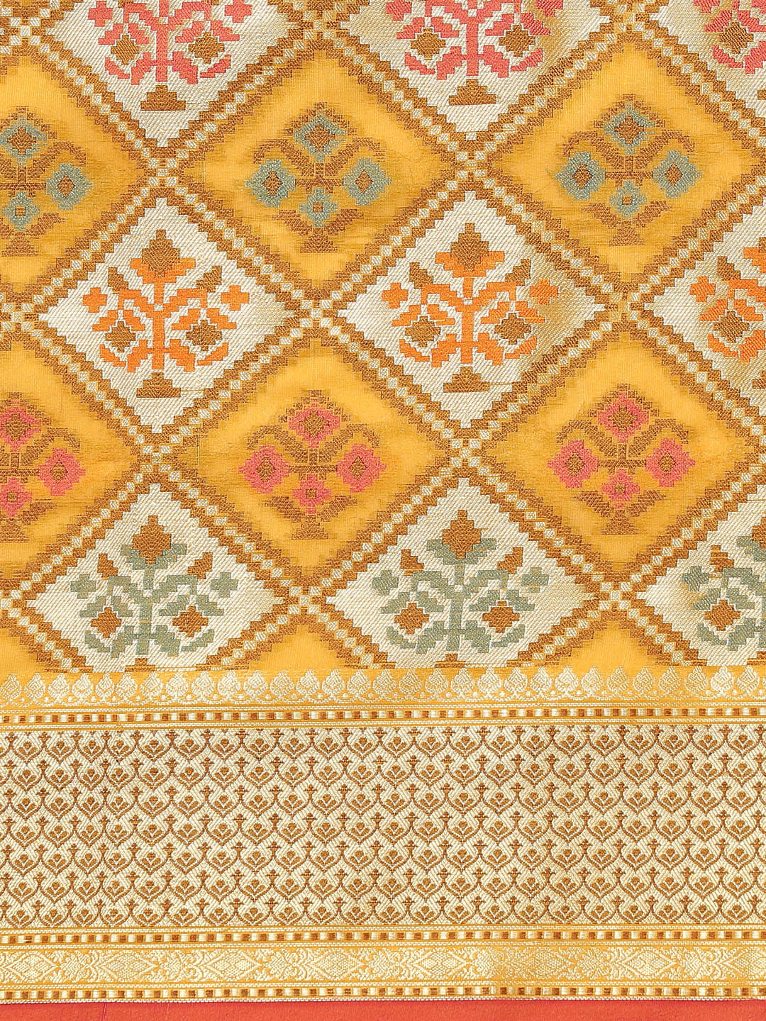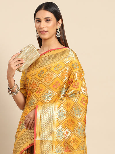 Yellow Banarasi Geometric Resham & Zari Woven Silk Saree