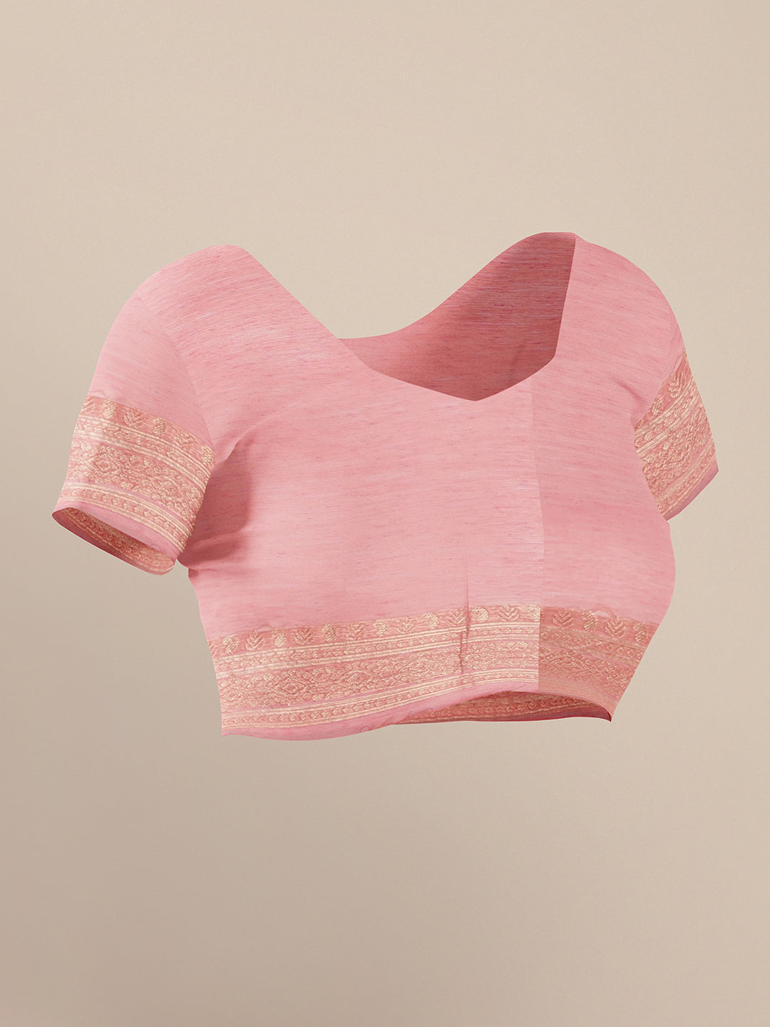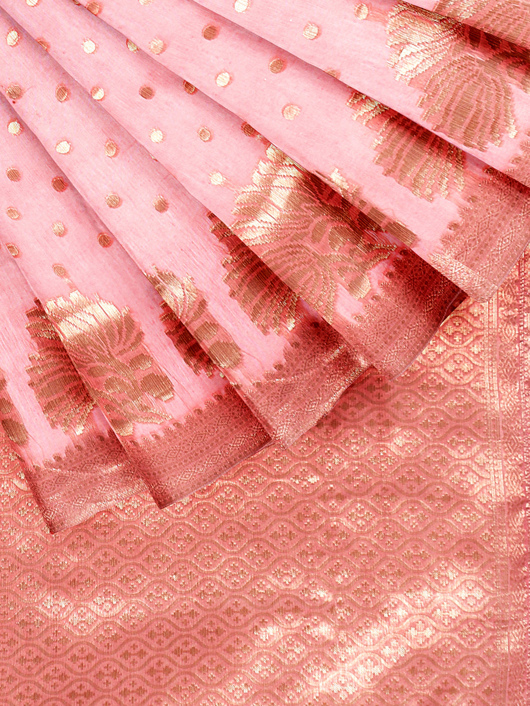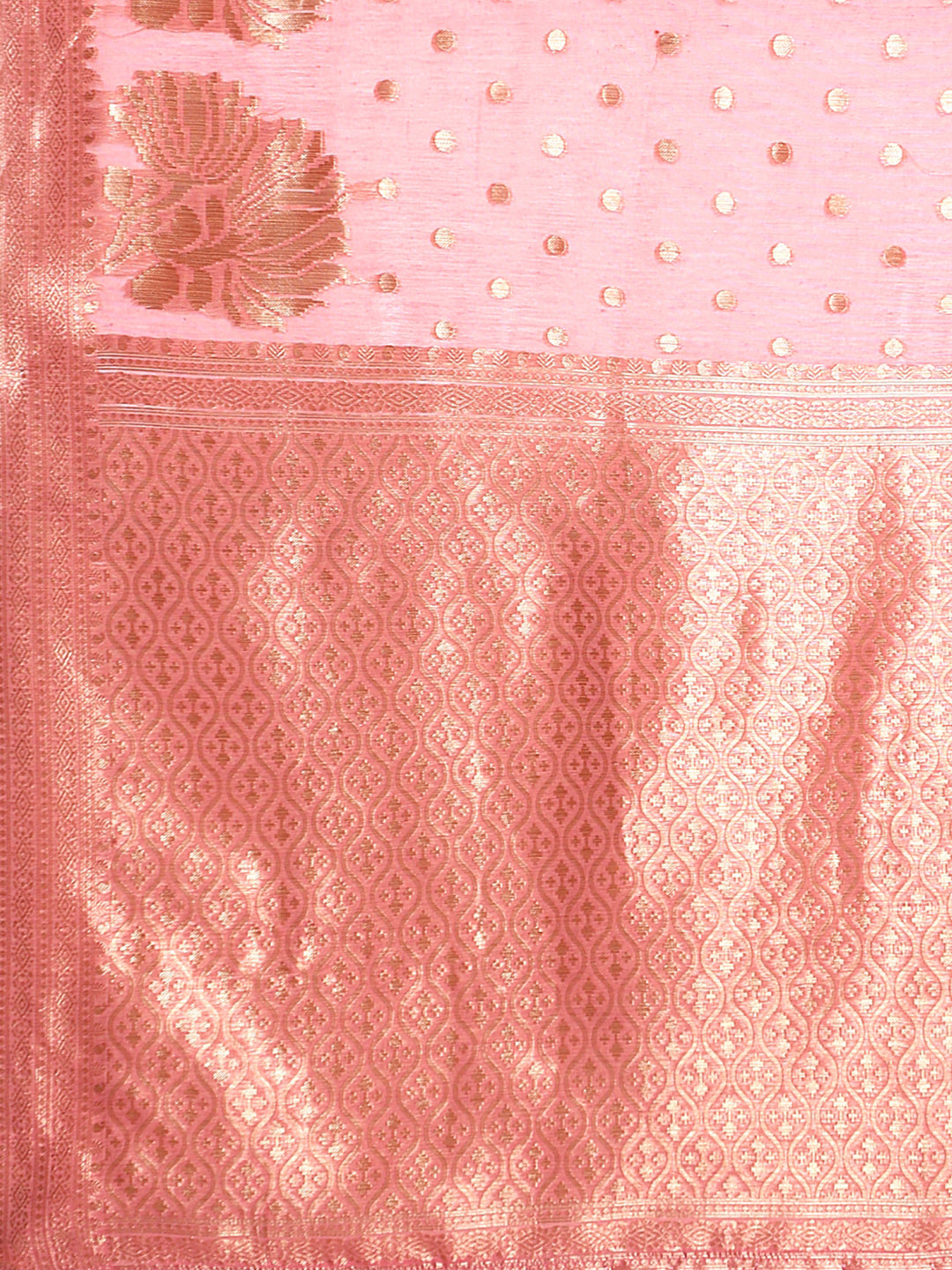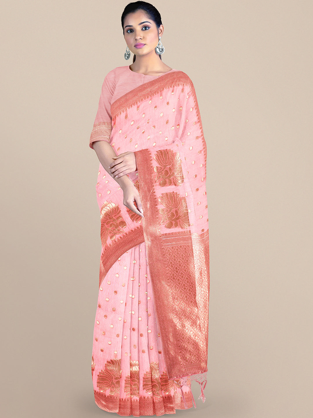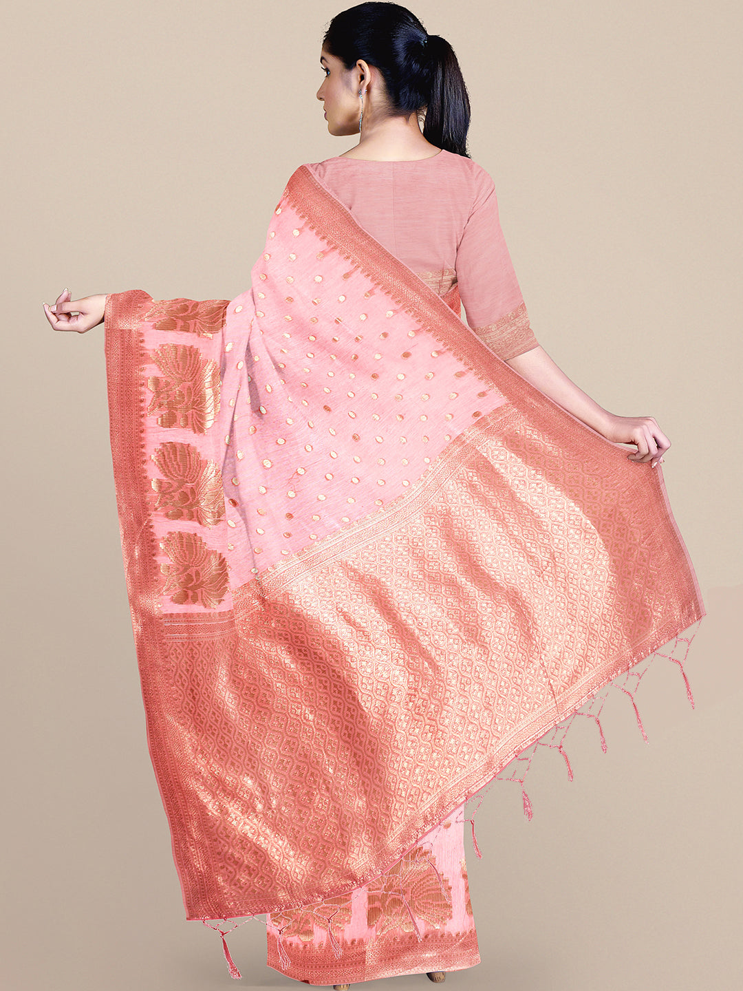 Pink Zari Woven Embroidered Silk Blend Banarasi Saree