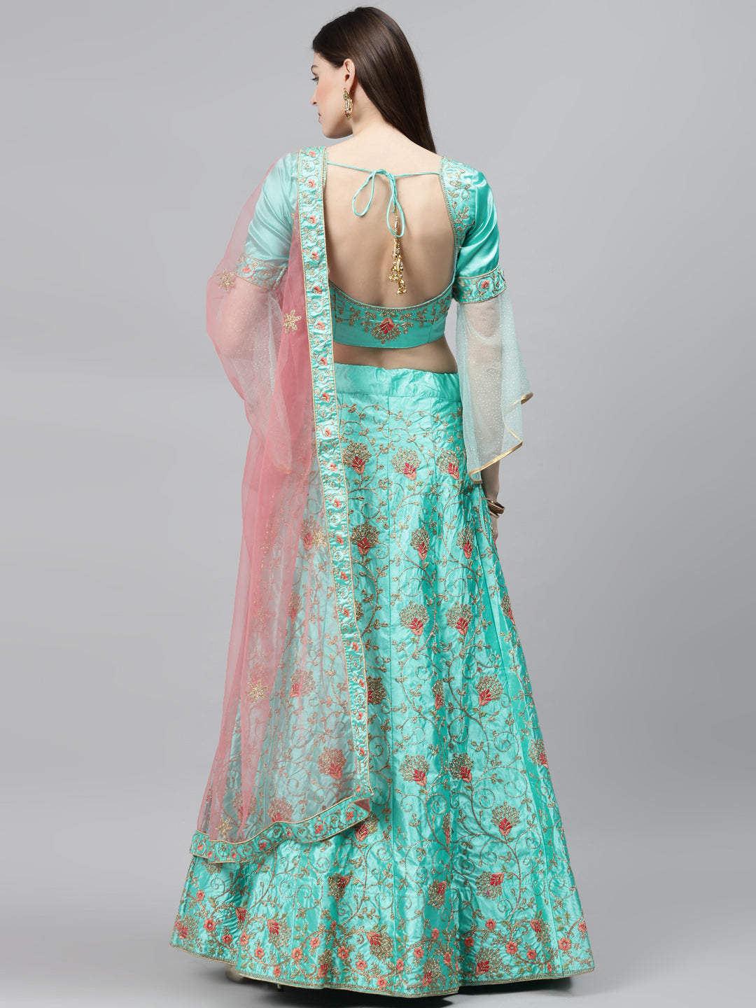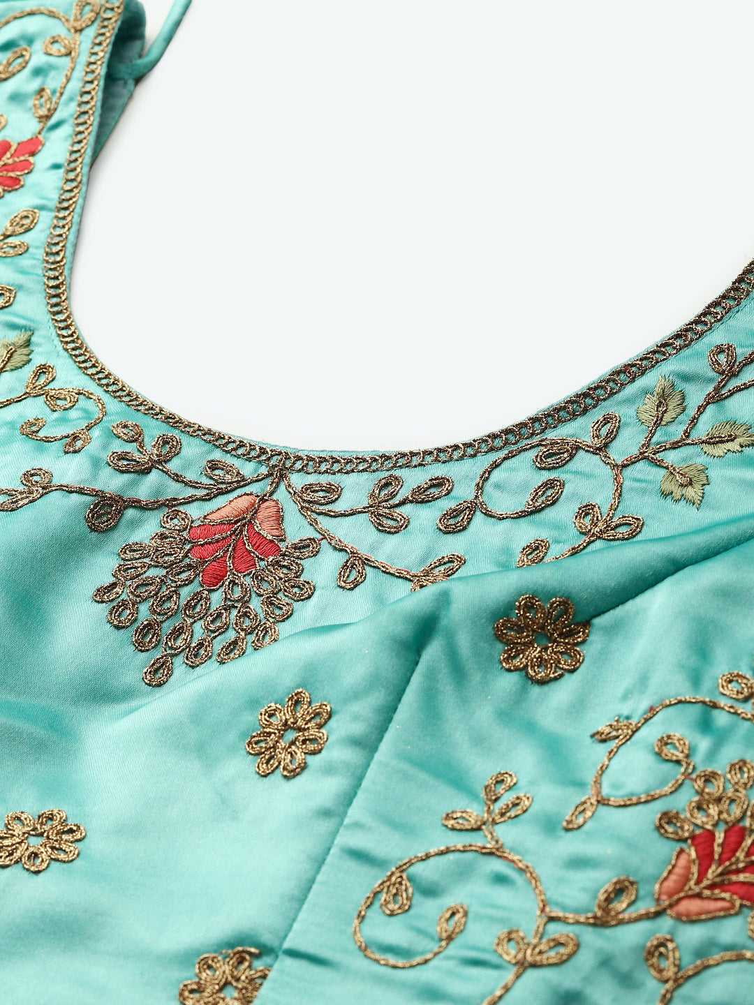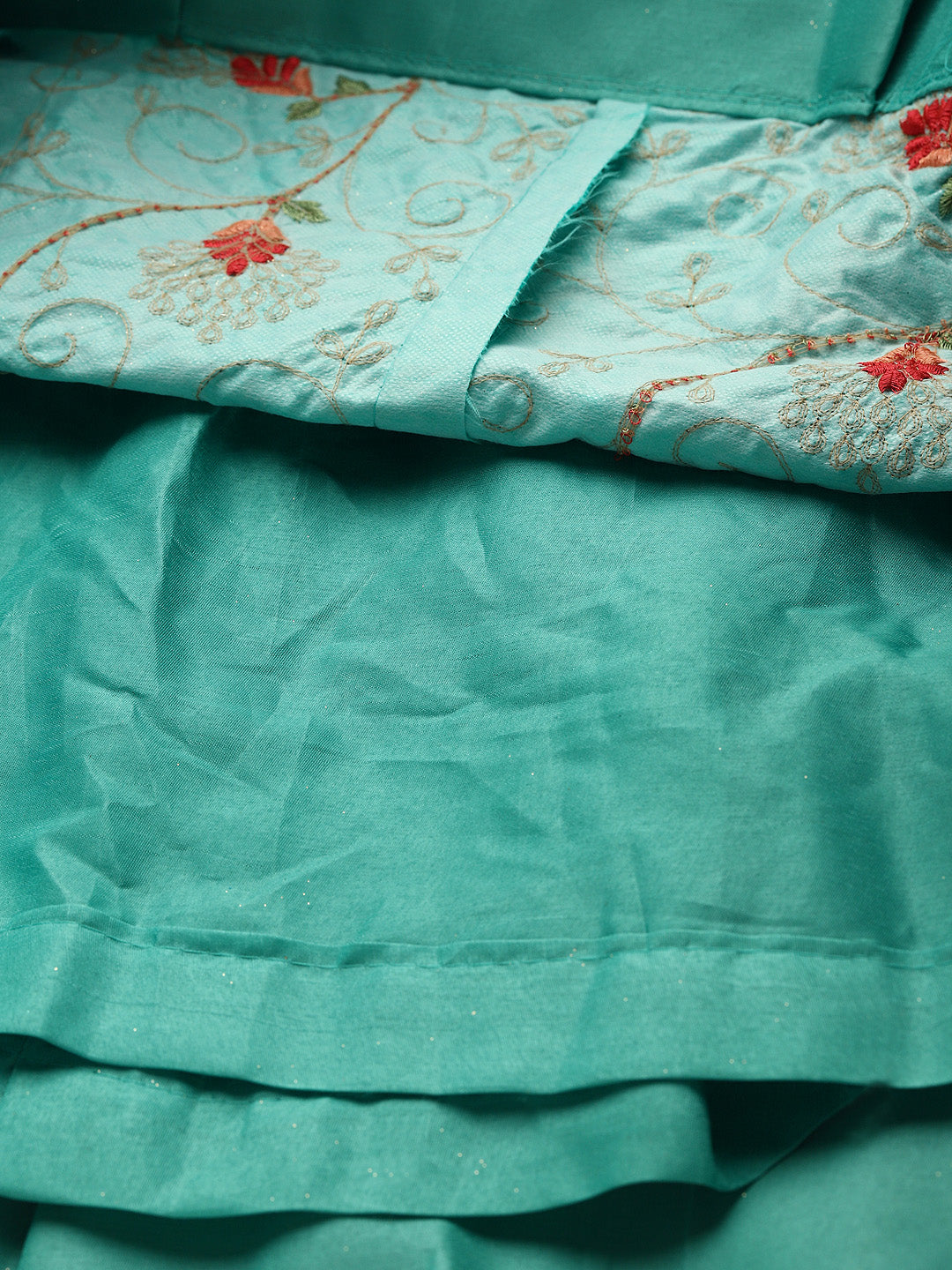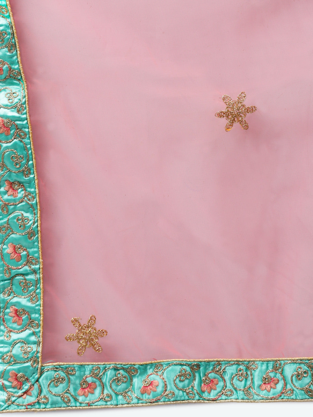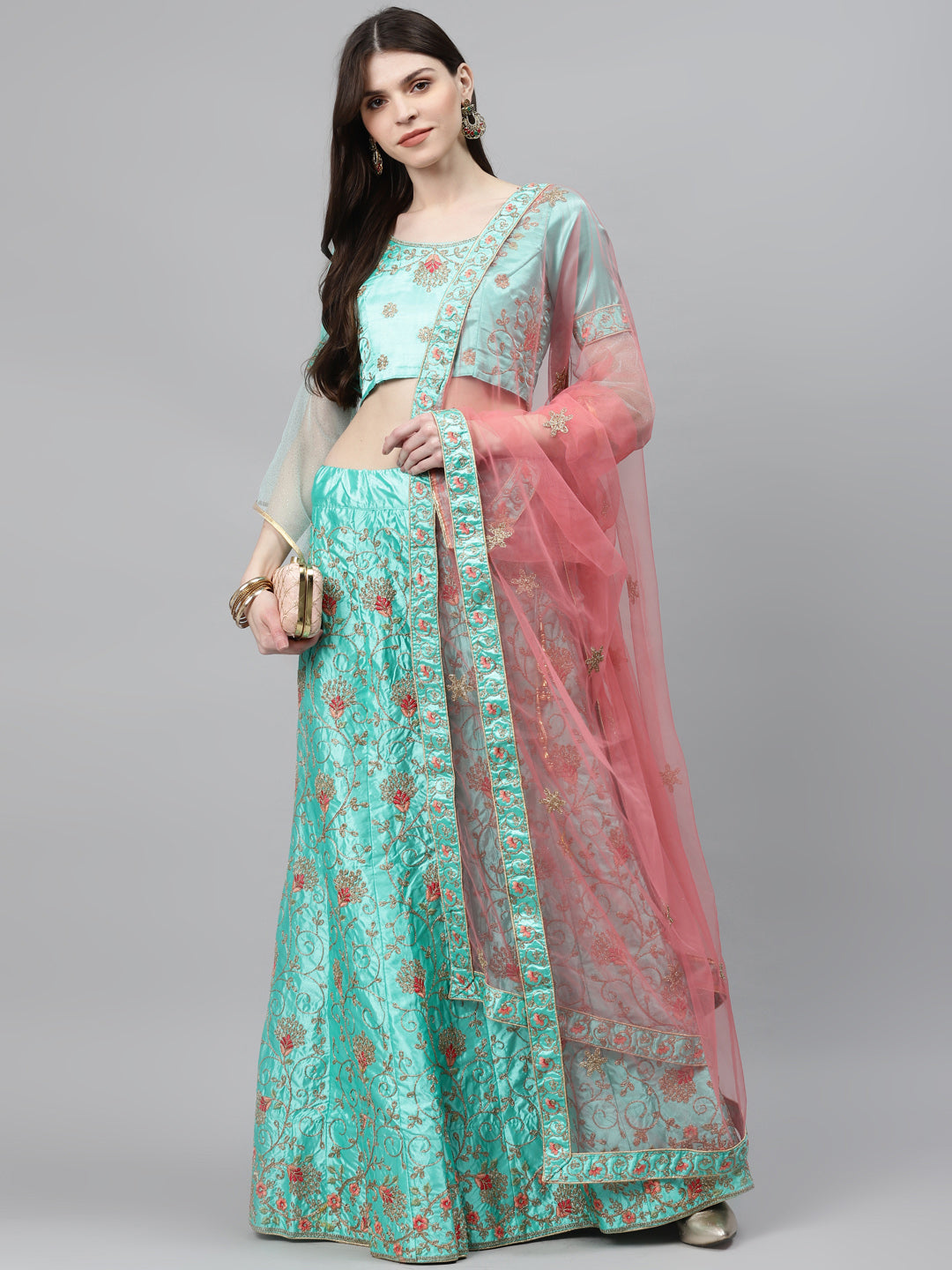 Pastel Semi-Stitched Lehenga Set with Zari & Resham Meenakari Floral Embroidery